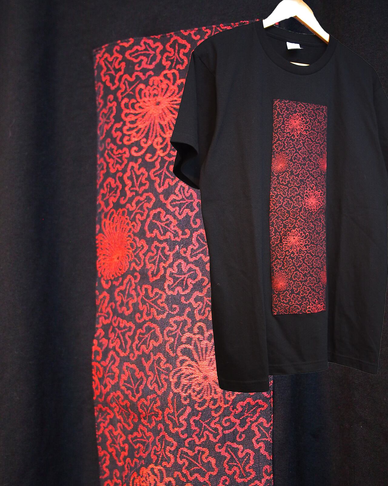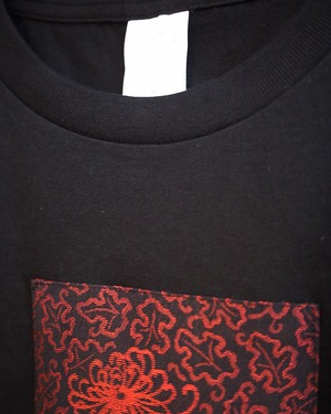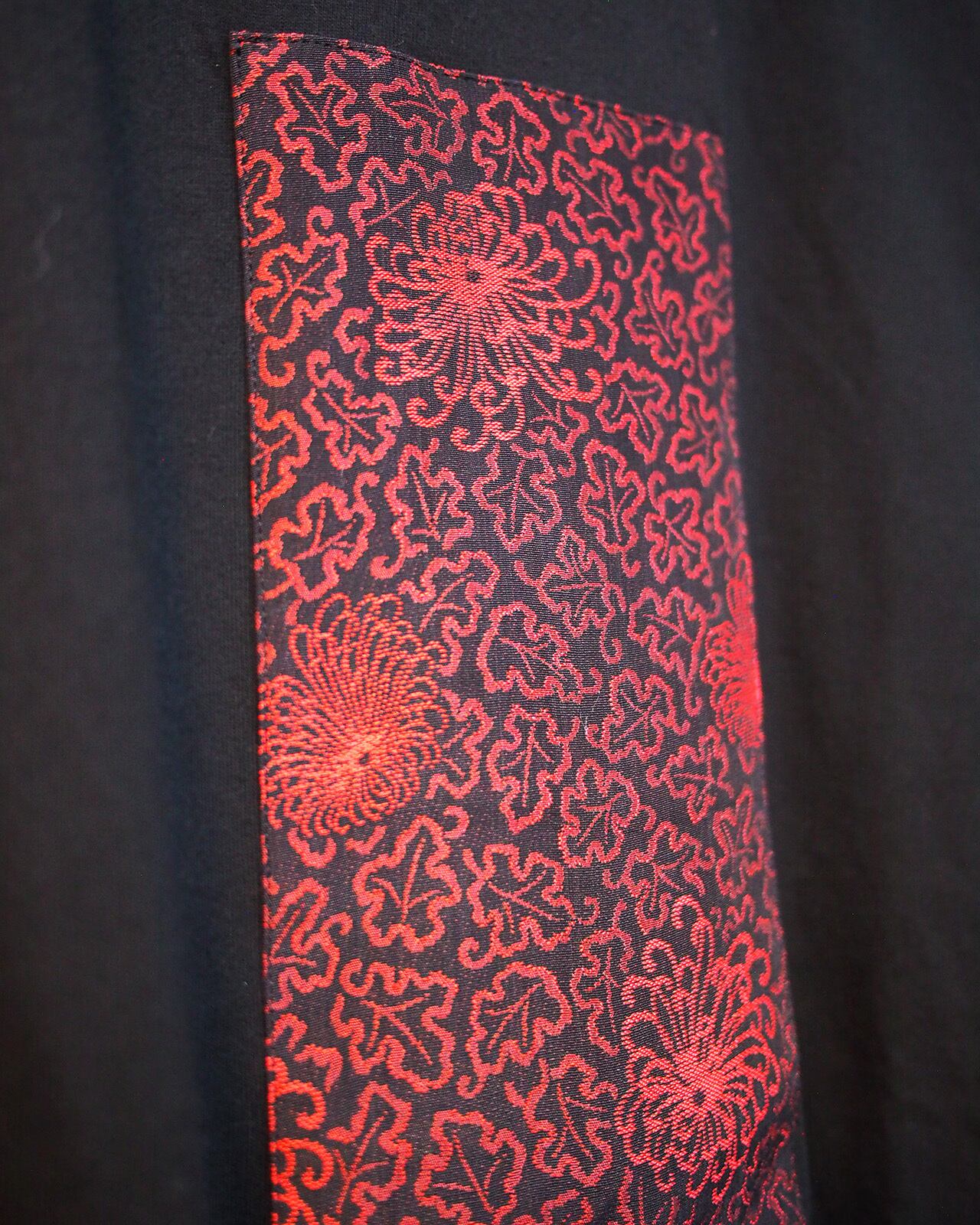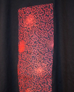 着物生地を贅沢に使用し構成した印象的な一点ものデザインTシャツです。