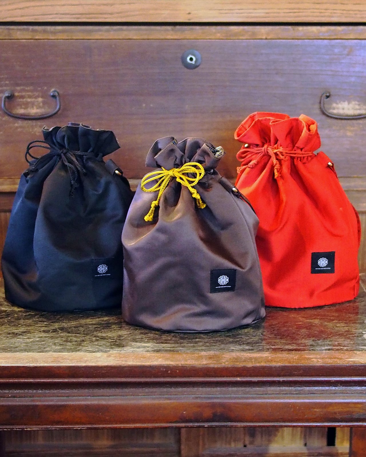 巾着式で荷物をしっかりと収納。必要なものを簡単に取り出せるデザインです。