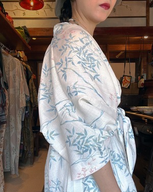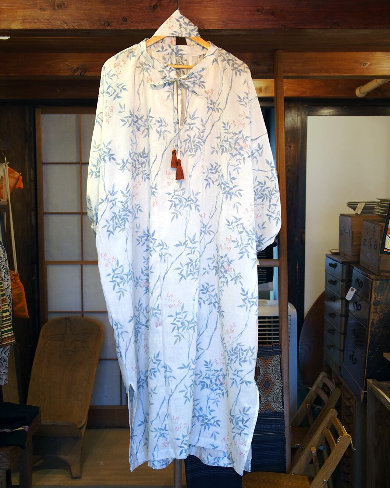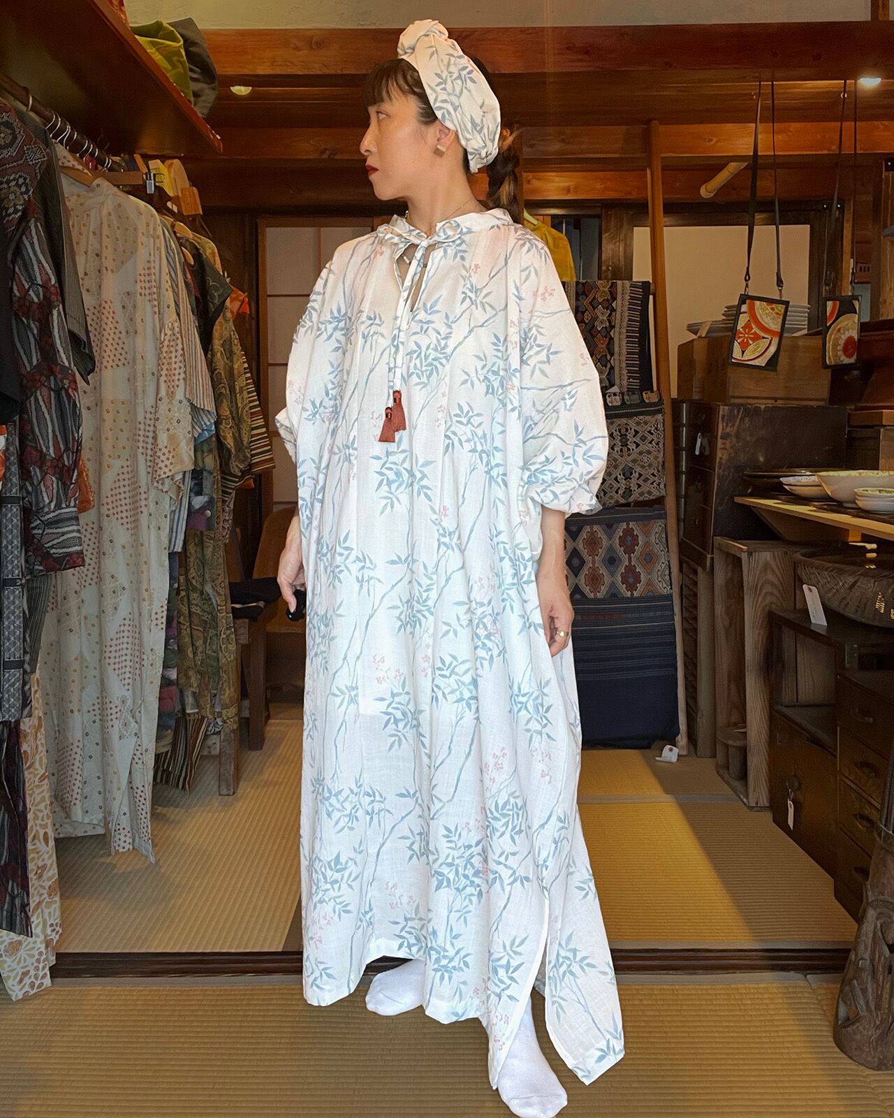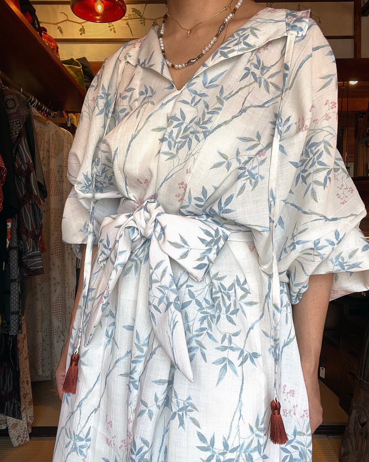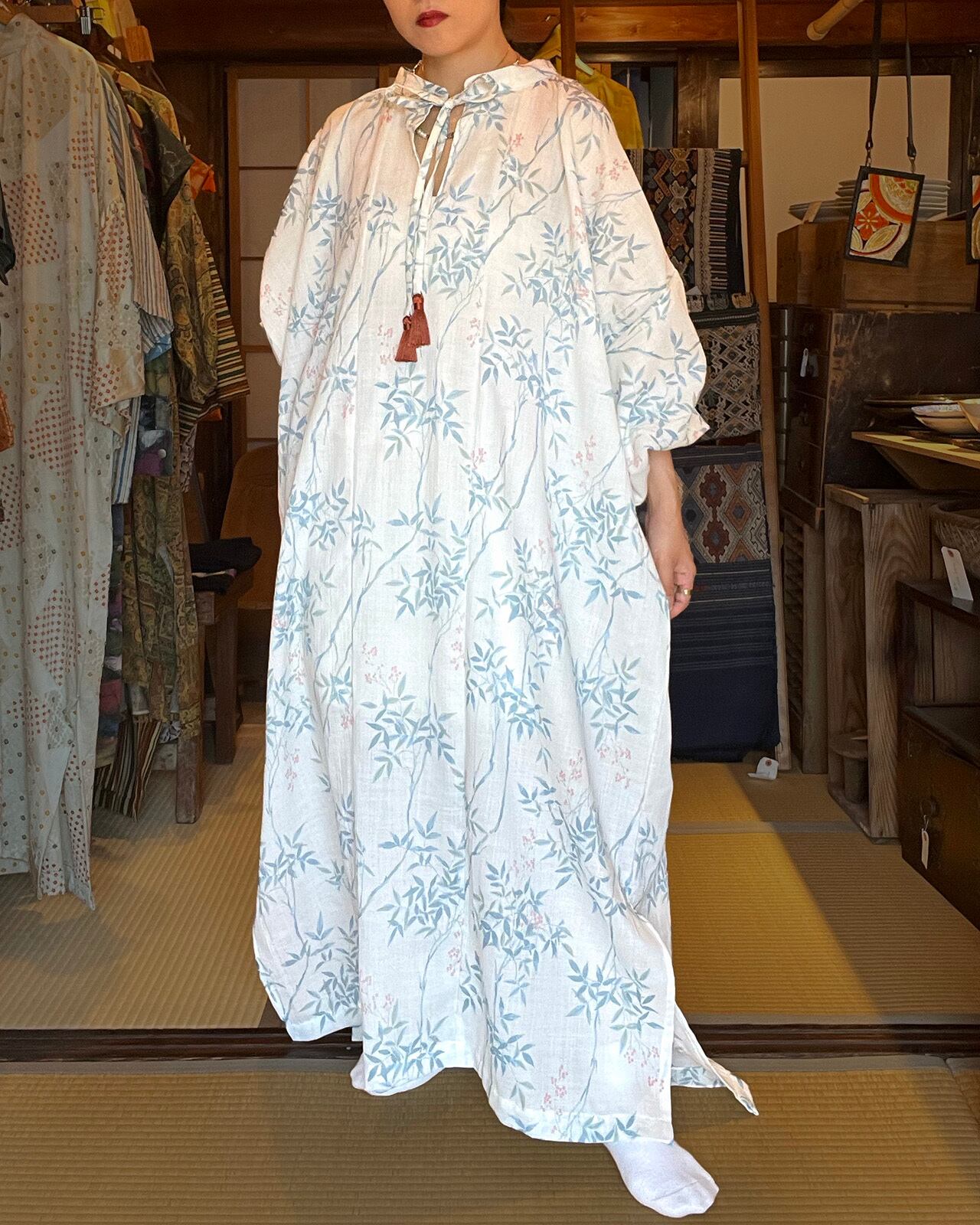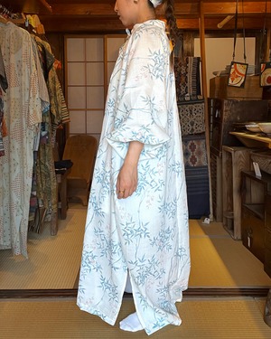 麻素材の夏着物を使用した一点ものシースルーロングドレス。