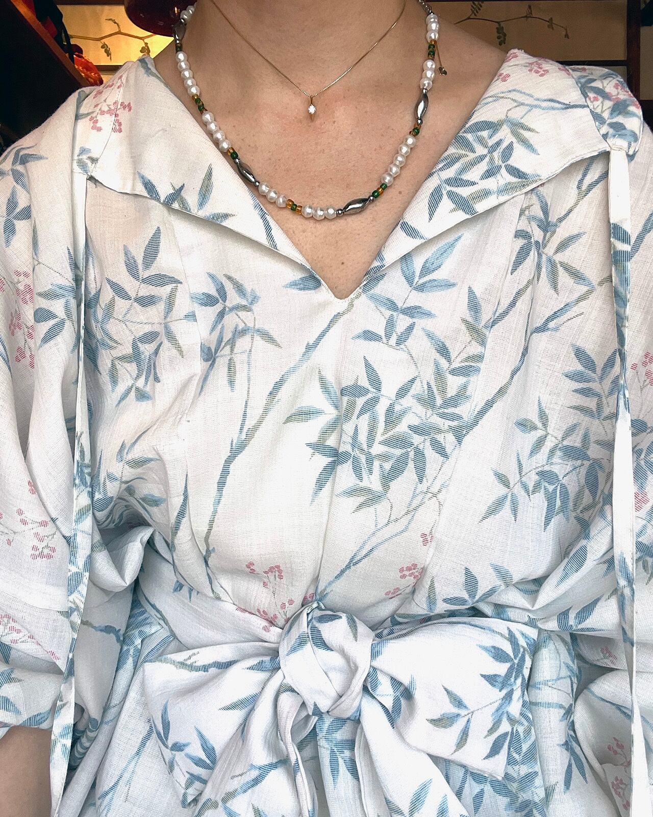 襟を開け閉め出来たり、ウエストリボンはターバンとして使用したり、