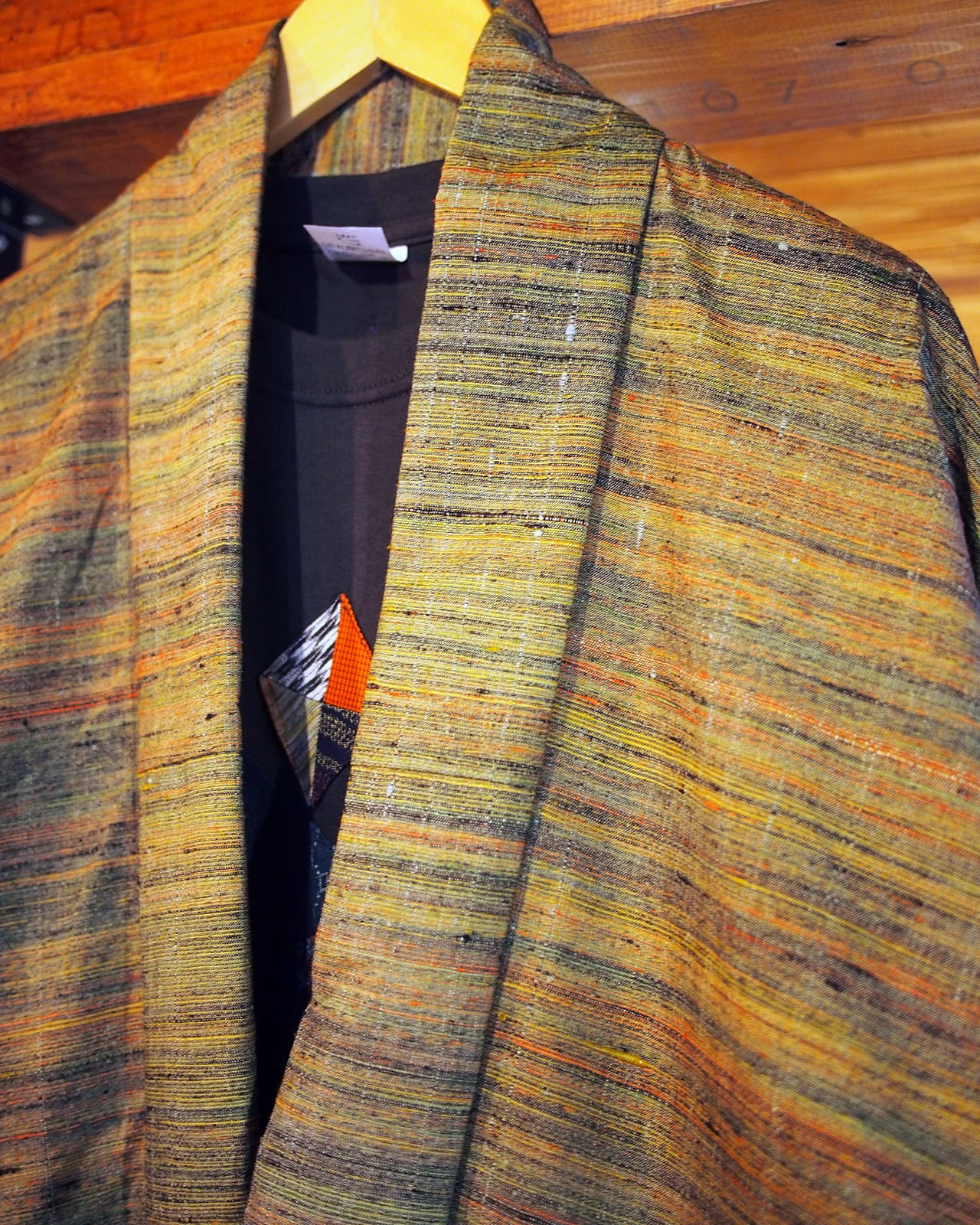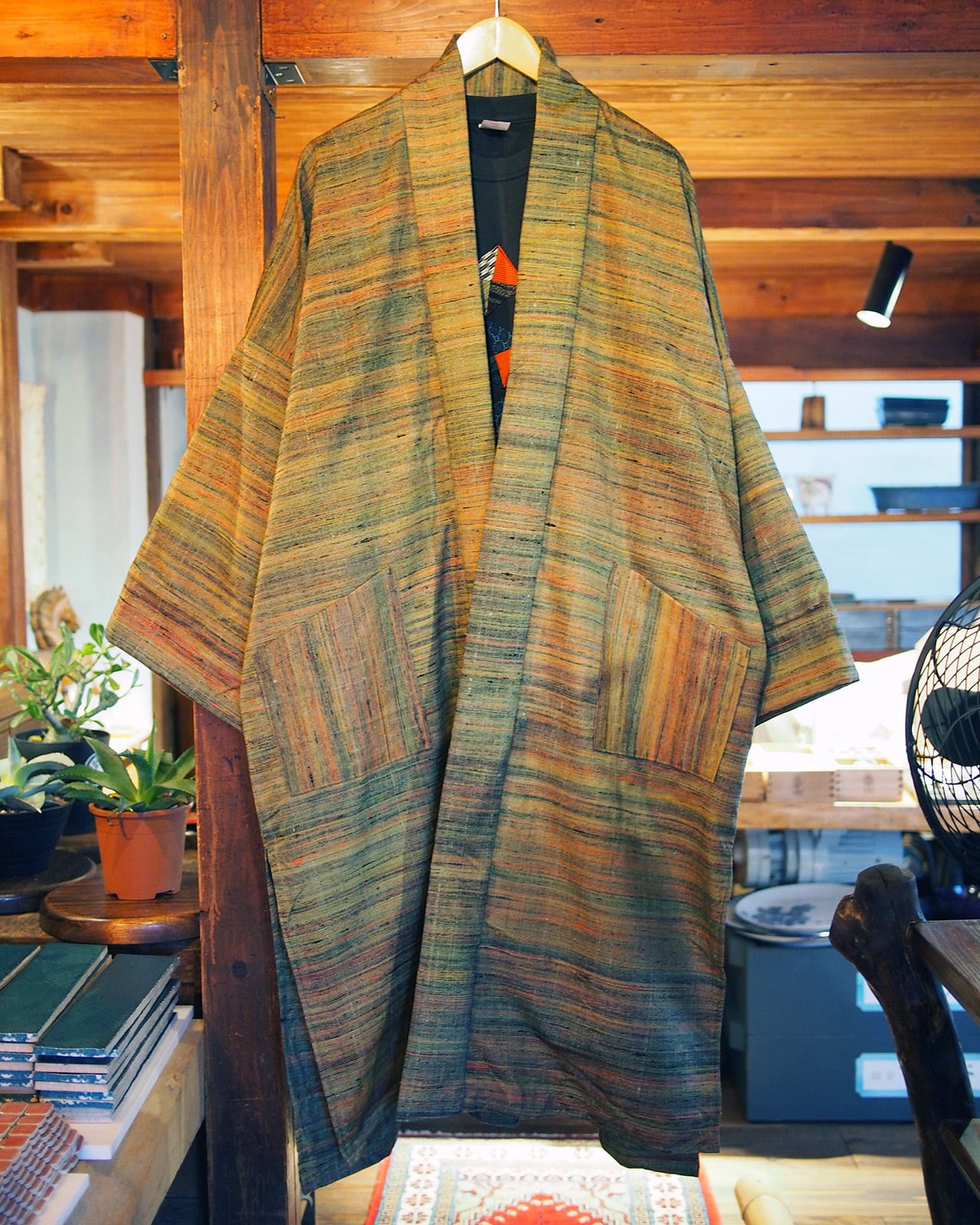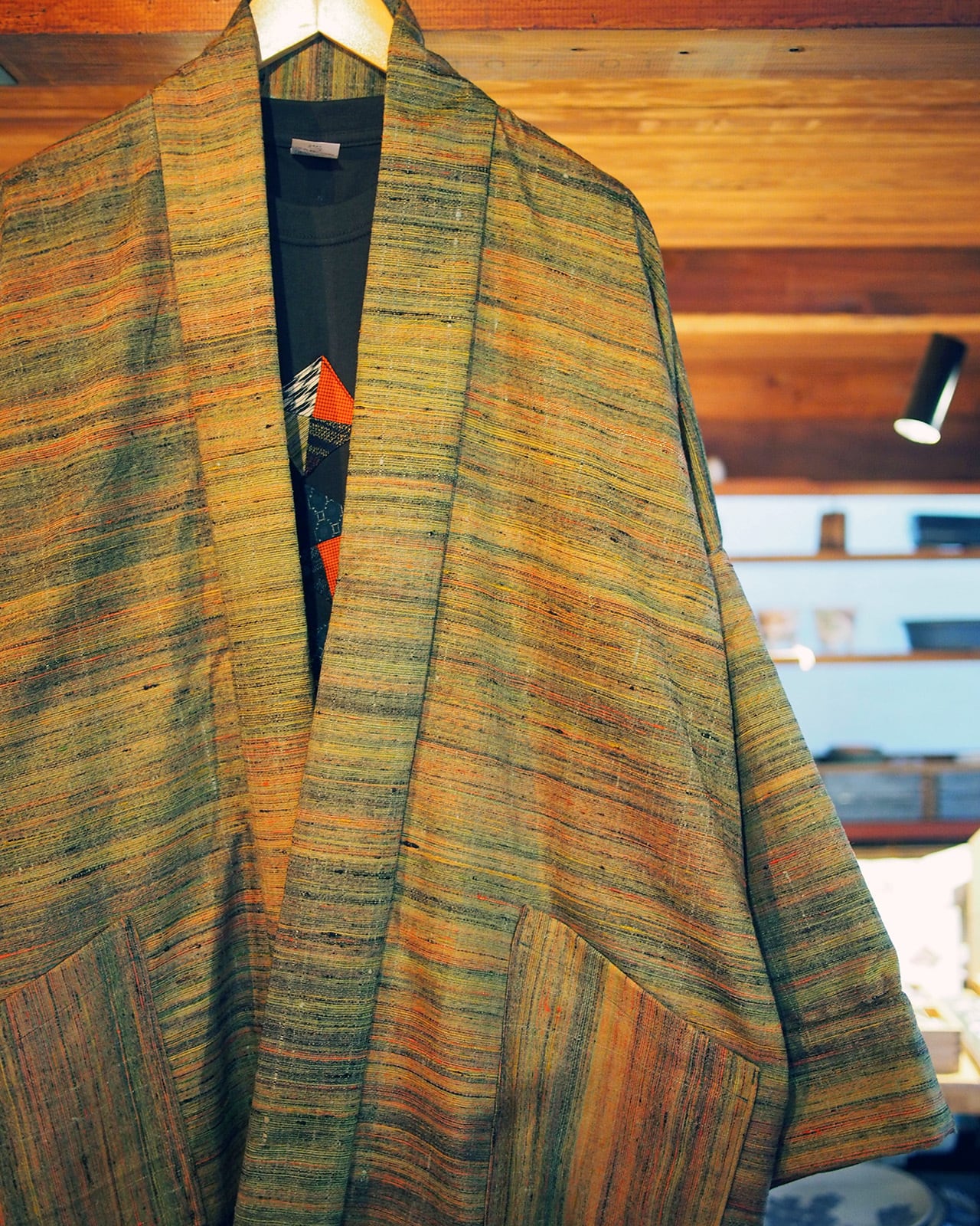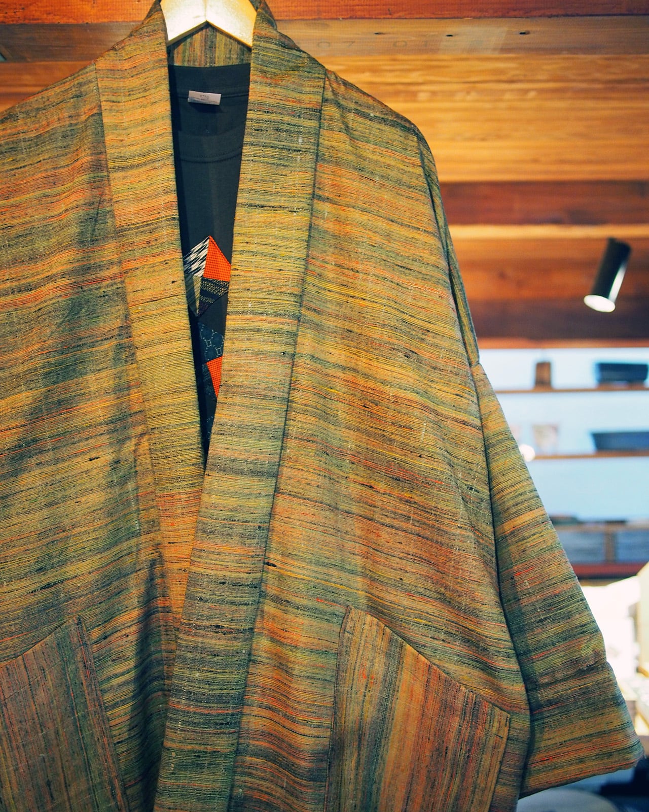 何色もの絹糸で織りなされた紬着物をサラッと羽織れるガウンコートへ。