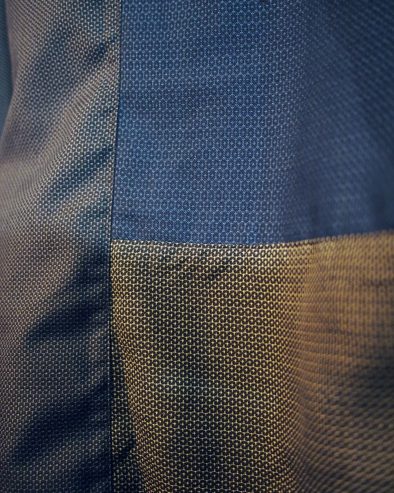 光と影が織りなす奥行き、重なり合う布の陰影、歩くたびに浮かび上がる幾何の表情をお楽しみいただけます。