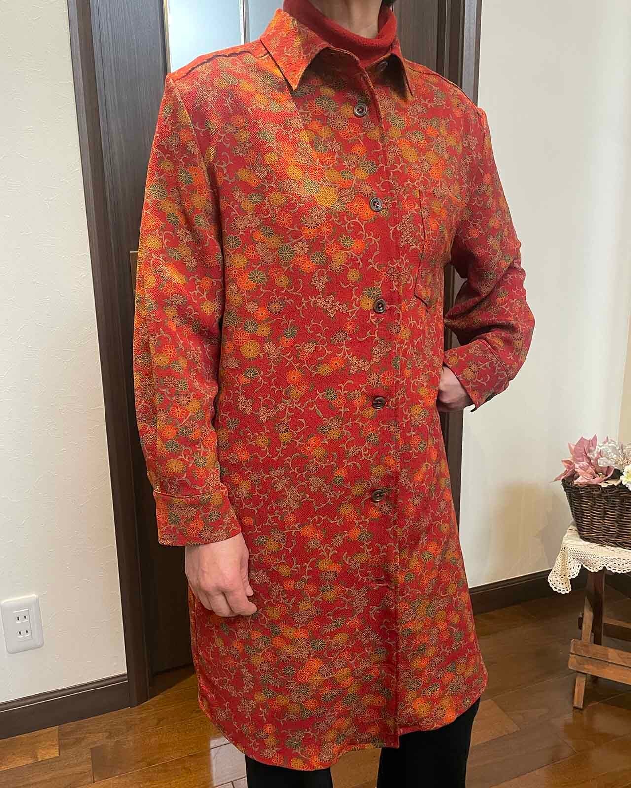 • Damage design harf coat 【Order made】和柄 二重 ハーフコート