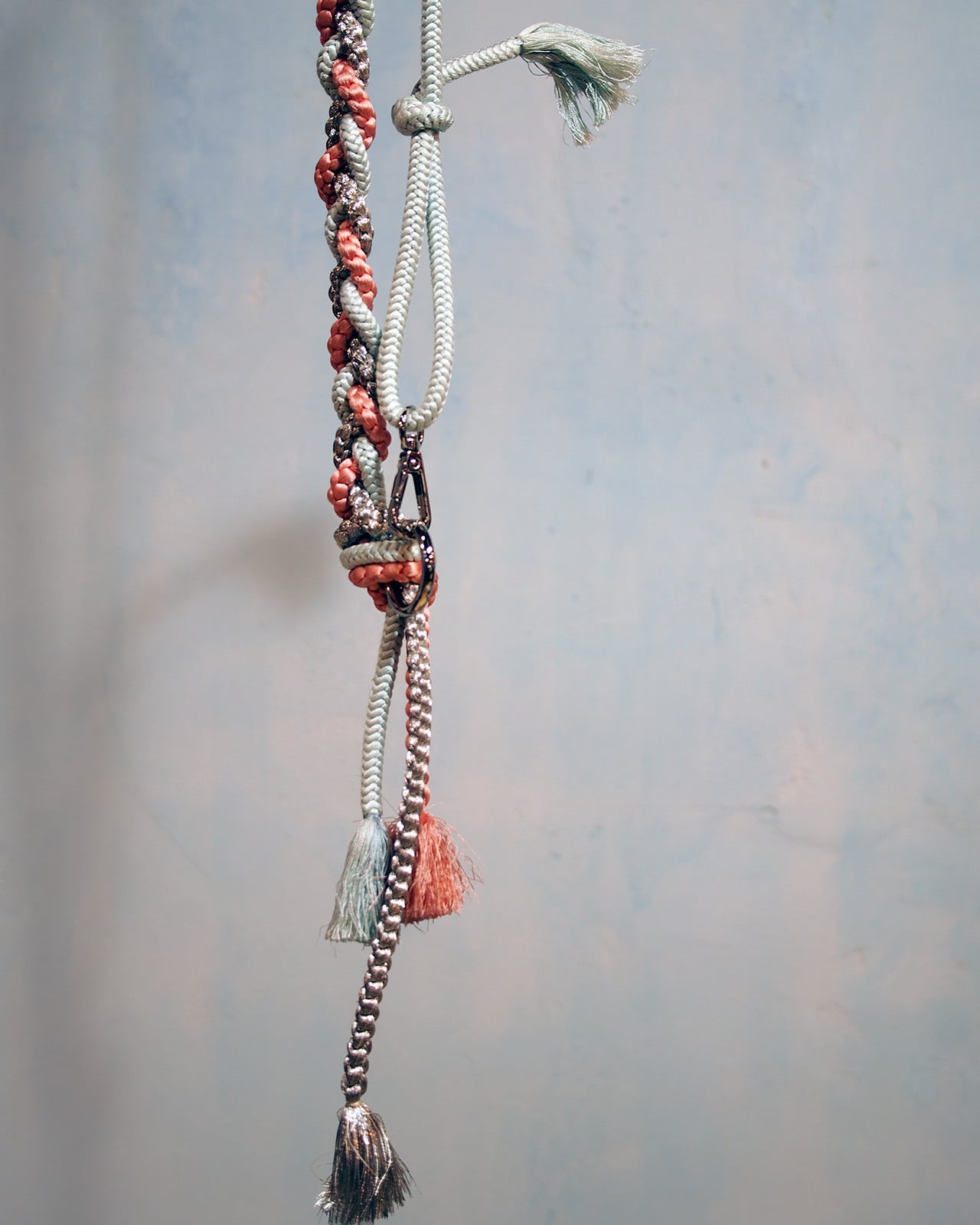 A multi-purpose strap created from traditional Japanese obi-jime cords. Wear it as a belt, phone strap, necklace, waist cord, or bag shoulder strap — a versatile accent for modern styling.