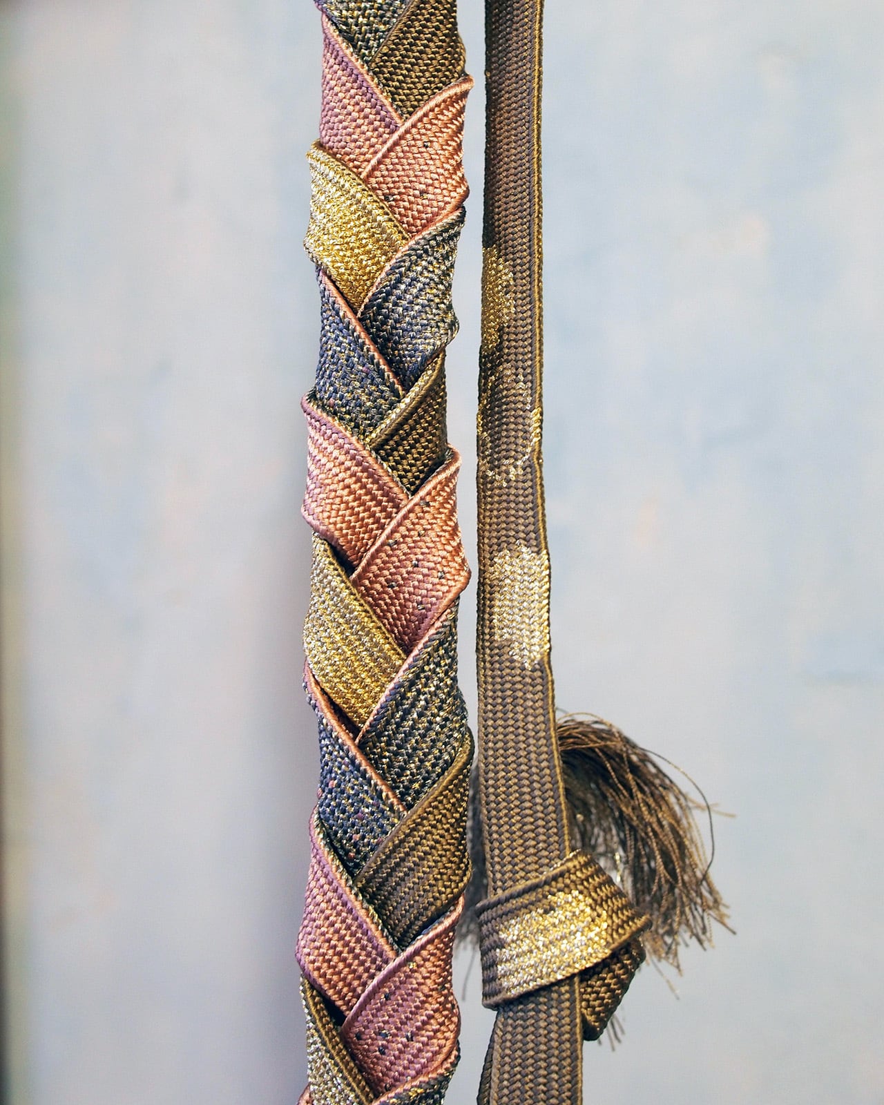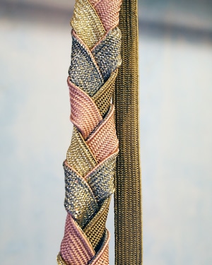 A multi-purpose strap created from traditional Japanese obi-jime cords. Wear it as a belt, phone strap, necklace, waist cord, or bag shoulder strap — a versatile accent for modern styling.