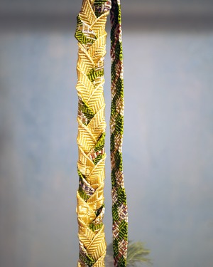 A multi-purpose strap created from traditional Japanese obi-jime cords. Wear it as a belt, phone strap, necklace, waist cord, or bag shoulder strap — a versatile accent for modern styling.