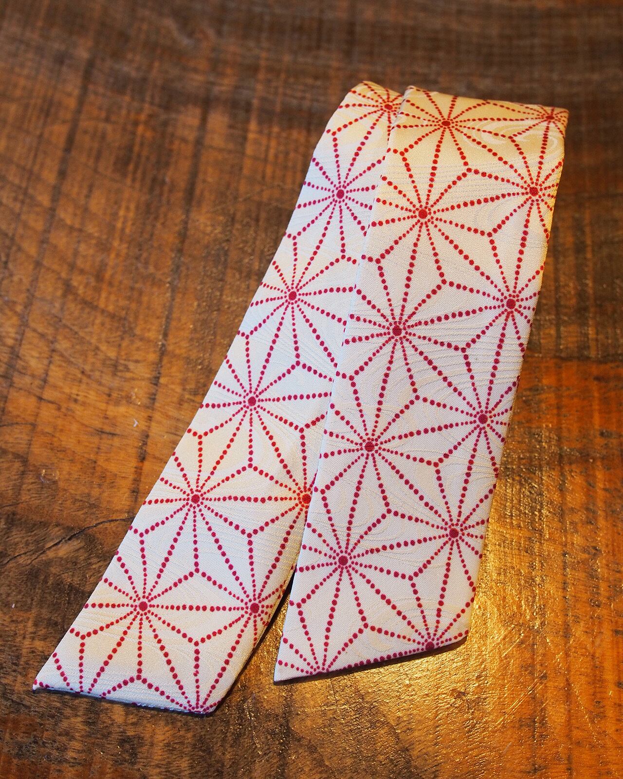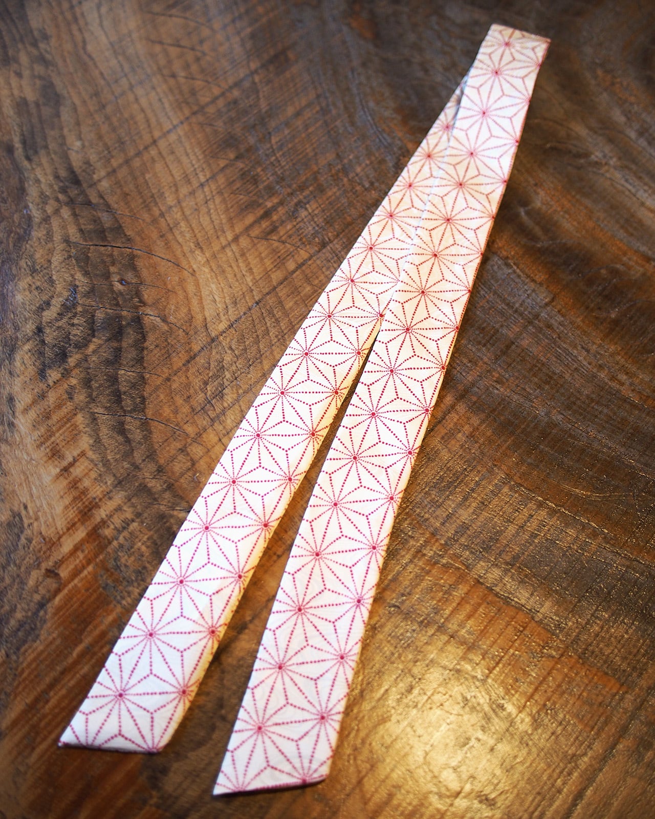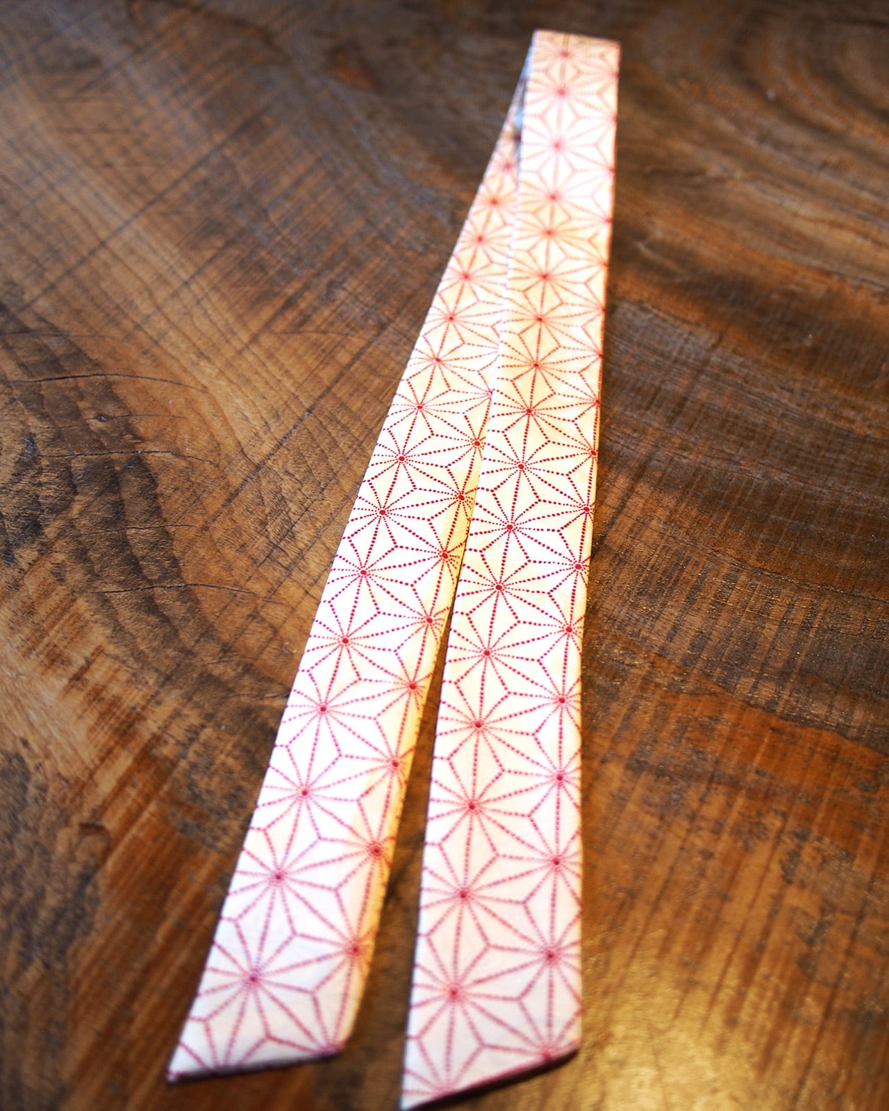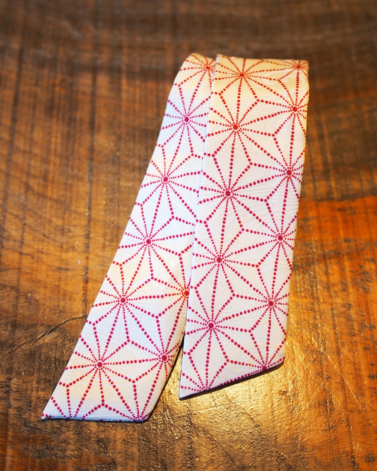 A genderless accessory created from WAFU, traditional Japanese kimono textiles. Wear it as a scarf, necktie, hair accessory, or bag accent. A wearable object that exists beyond trends.