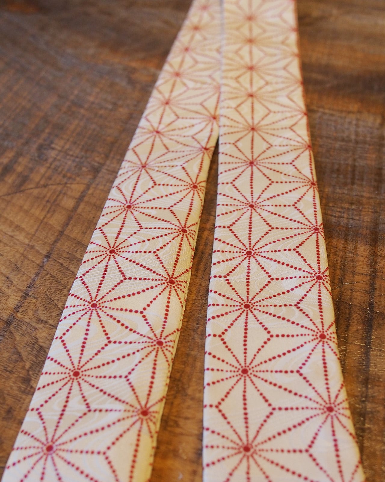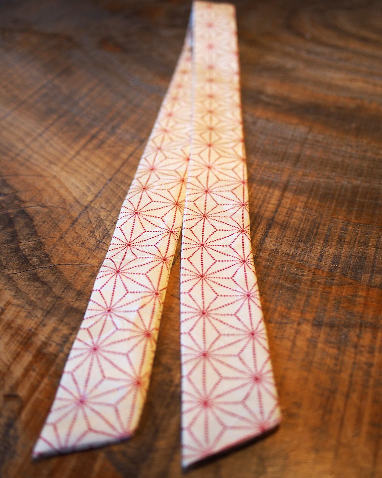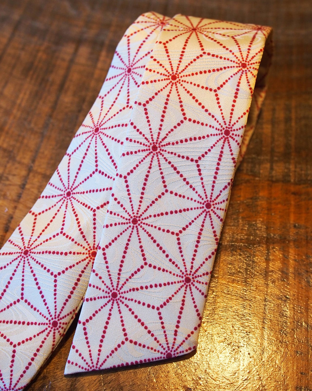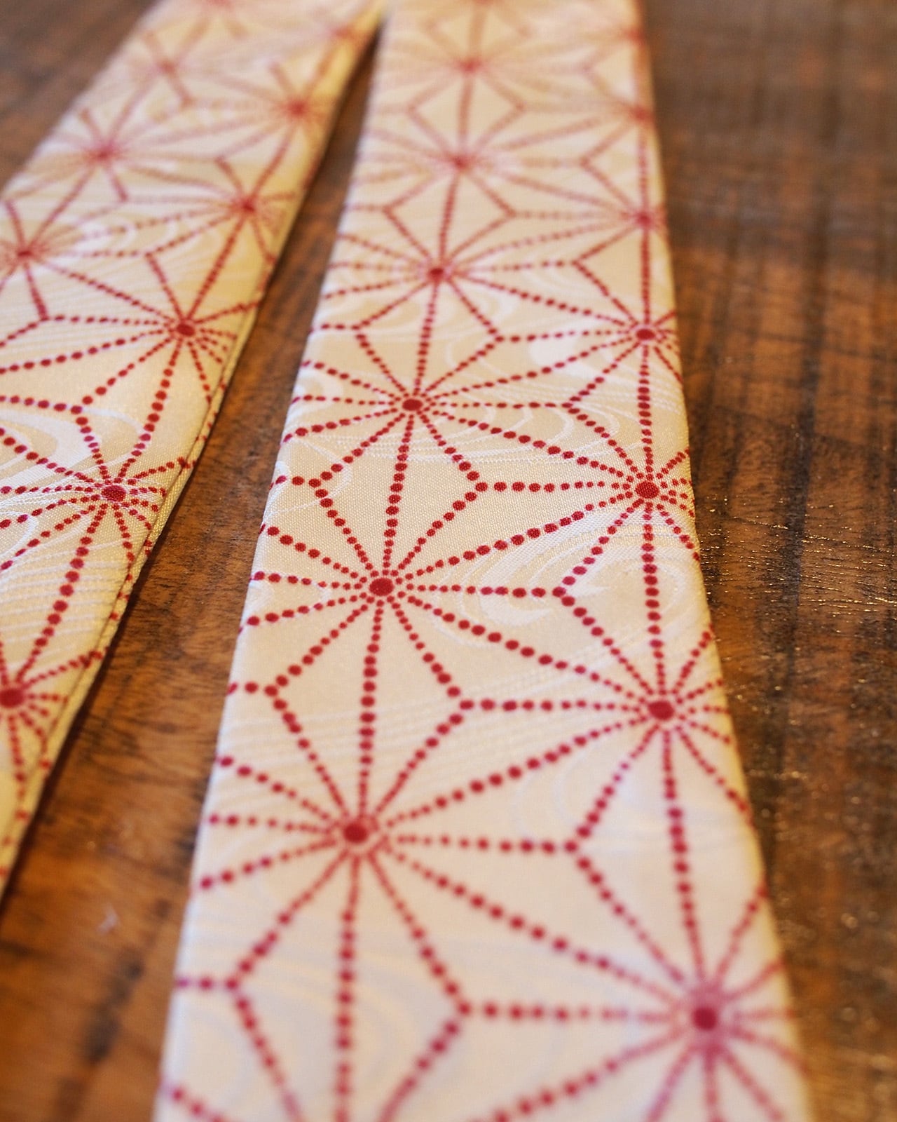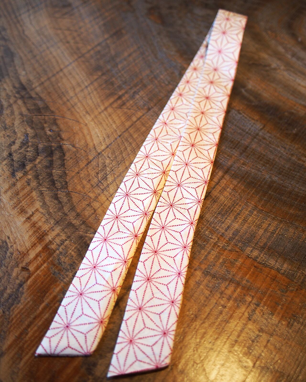 A genderless accessory created from WAFU, traditional Japanese kimono textiles. Wear it as a scarf, necktie, hair accessory, or bag accent. A wearable object that exists beyond trends.