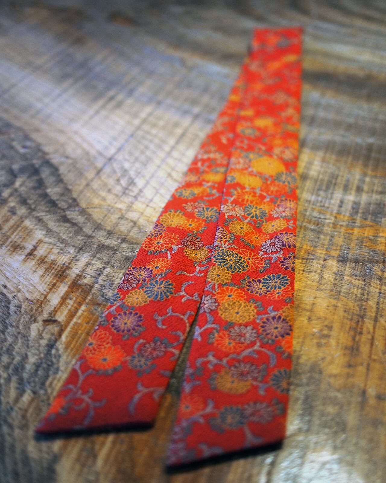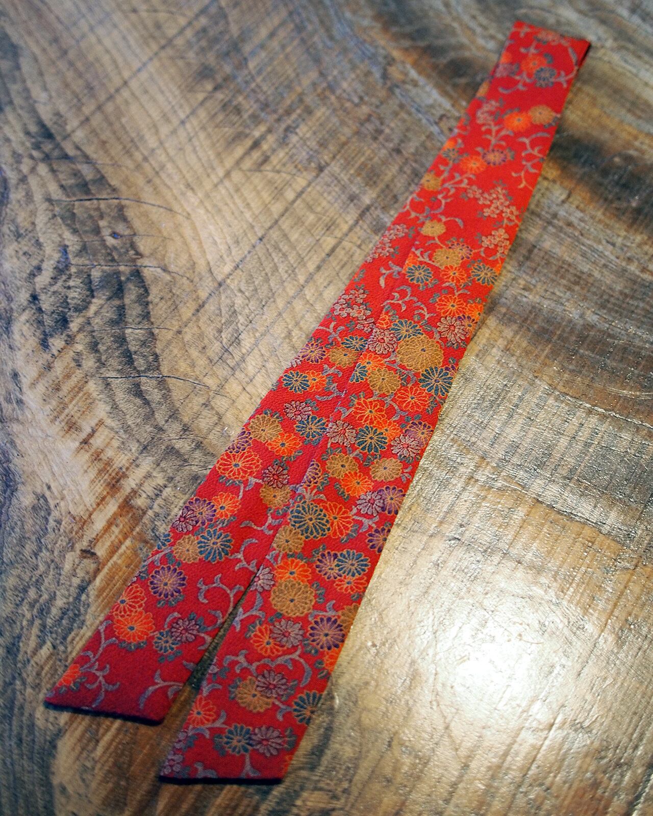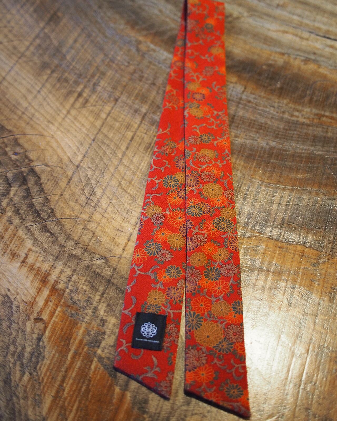 A genderless accessory created from WAFU, traditional Japanese kimono textiles. Wear it as a scarf, necktie, hair accessory, or bag accent. A wearable object that exists beyond trends.