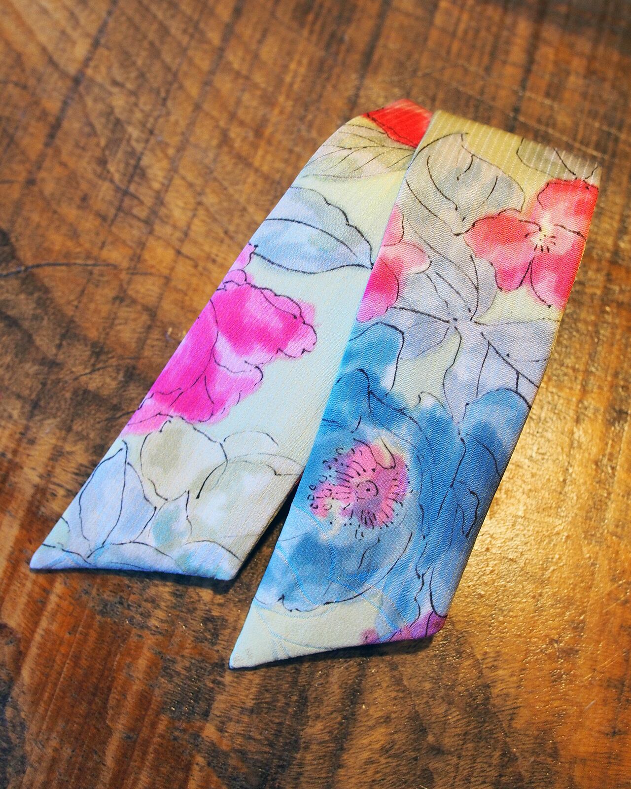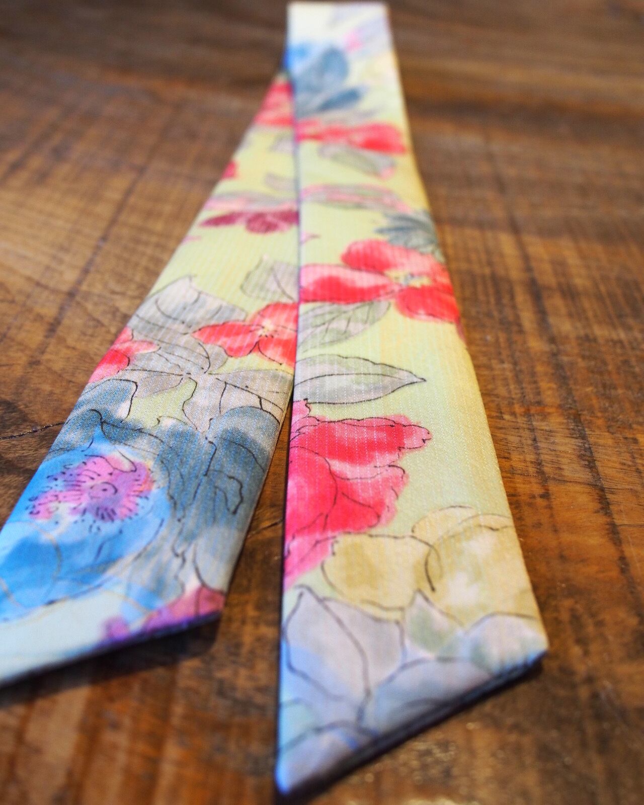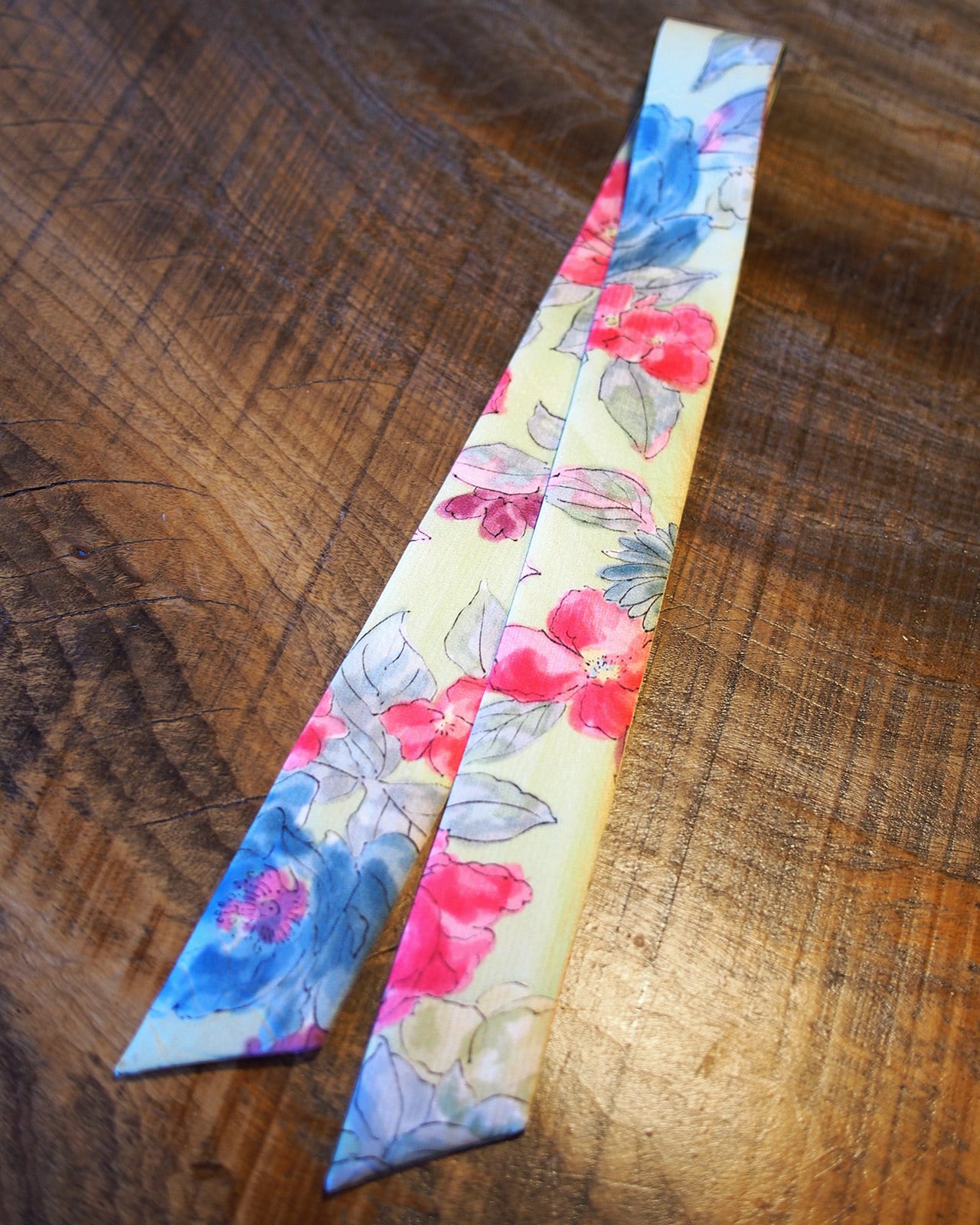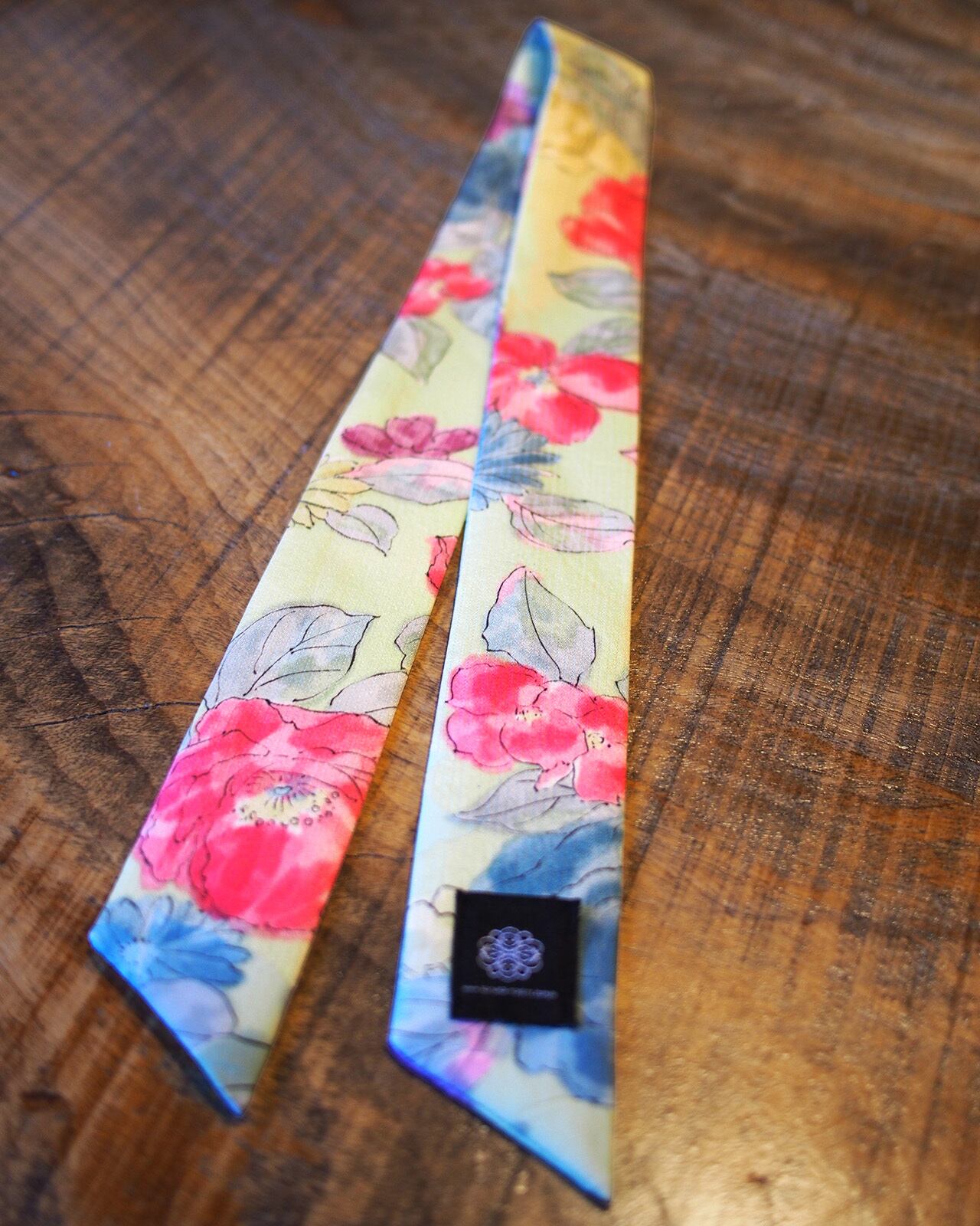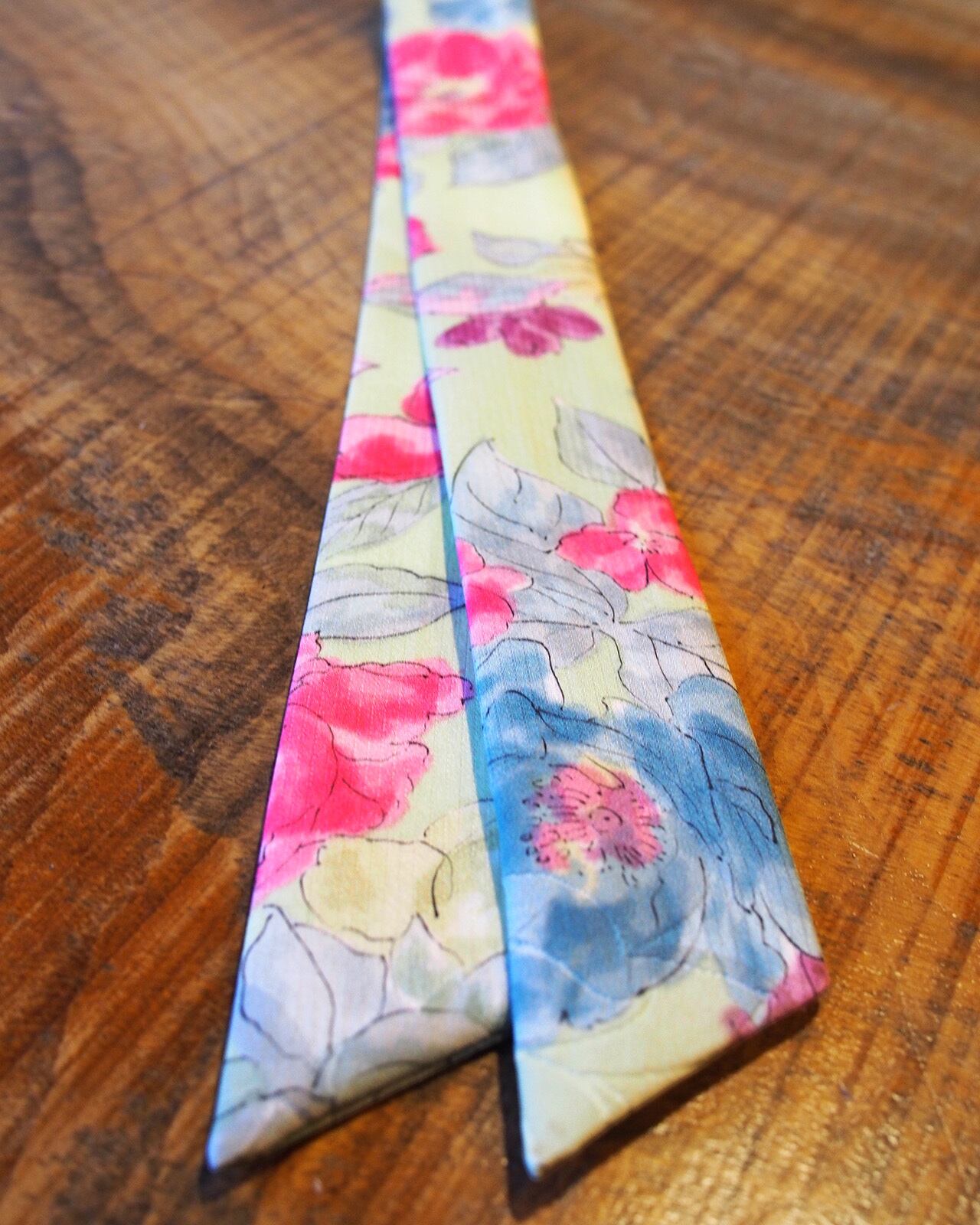 A genderless accessory created from WAFU, traditional Japanese kimono textiles. Wear it as a scarf, necktie, hair accessory, or bag accent. A wearable object that exists beyond trends.