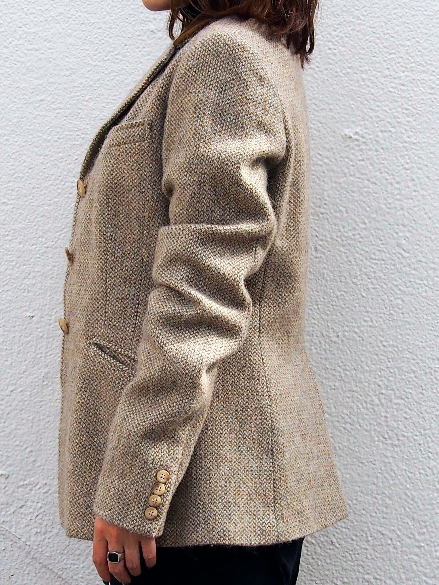 襟元のデザインは乗馬ジャケットを思わせる形です。