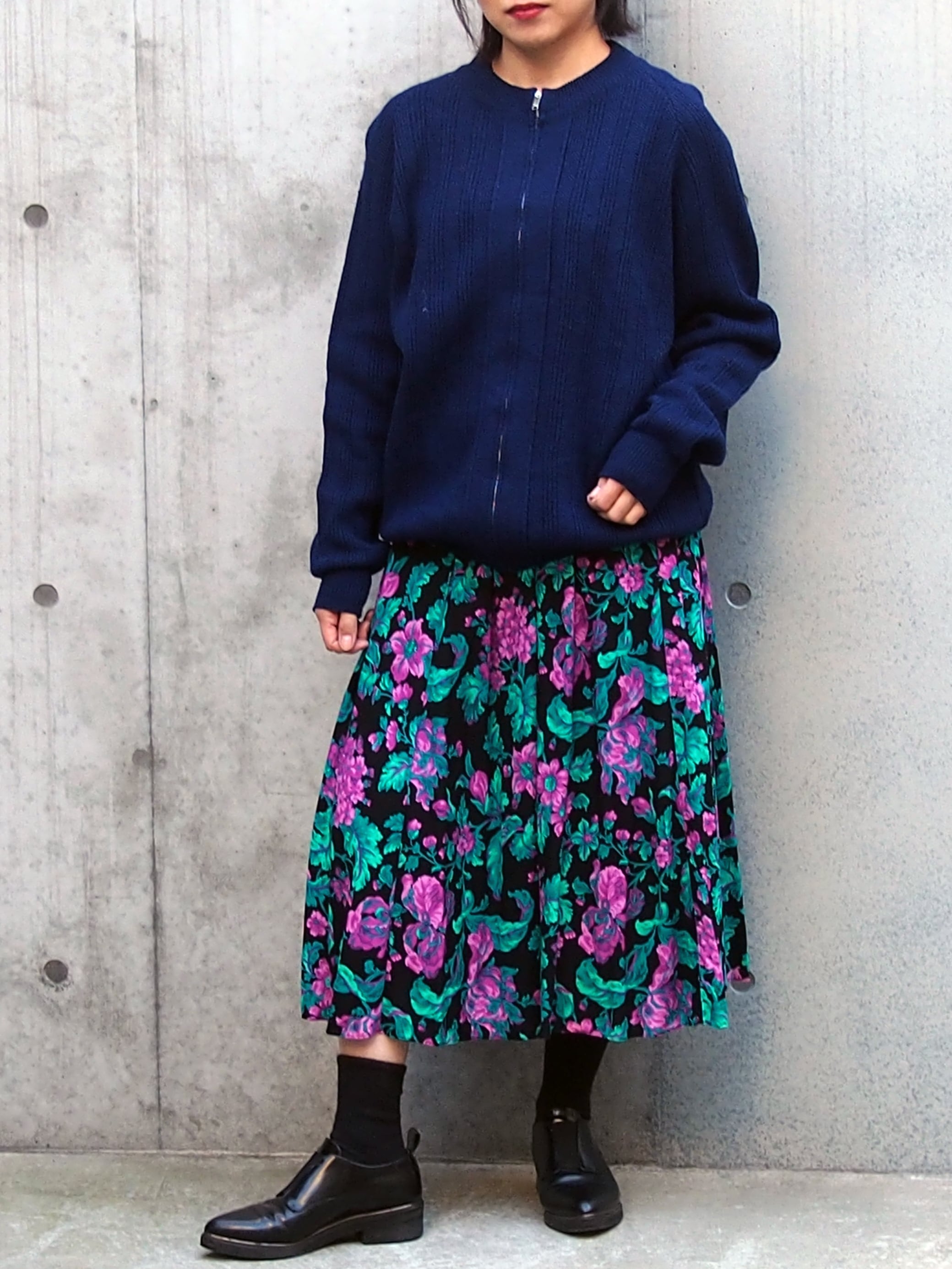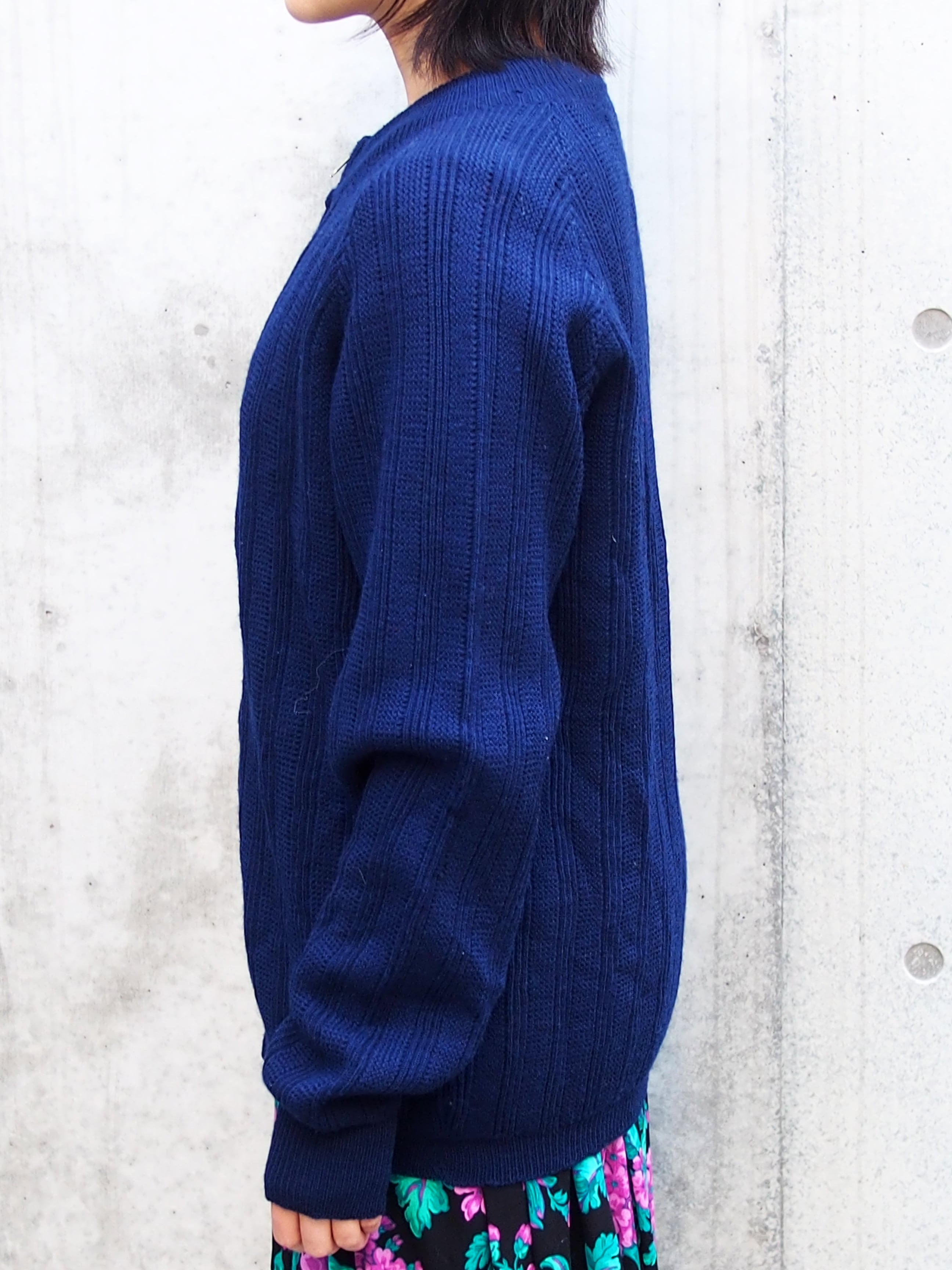 濃厚なネイビーが大人な雰囲気をだすリブカーディガン。