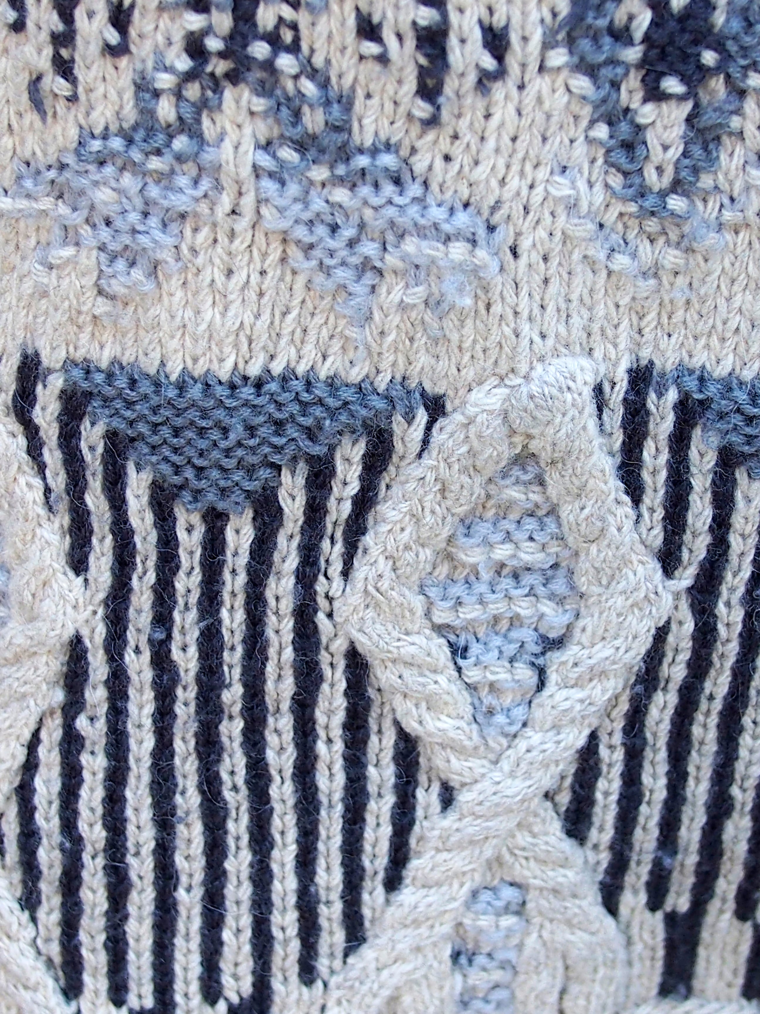 おうとつのある幾何学の刺繍がとても目を引きます。