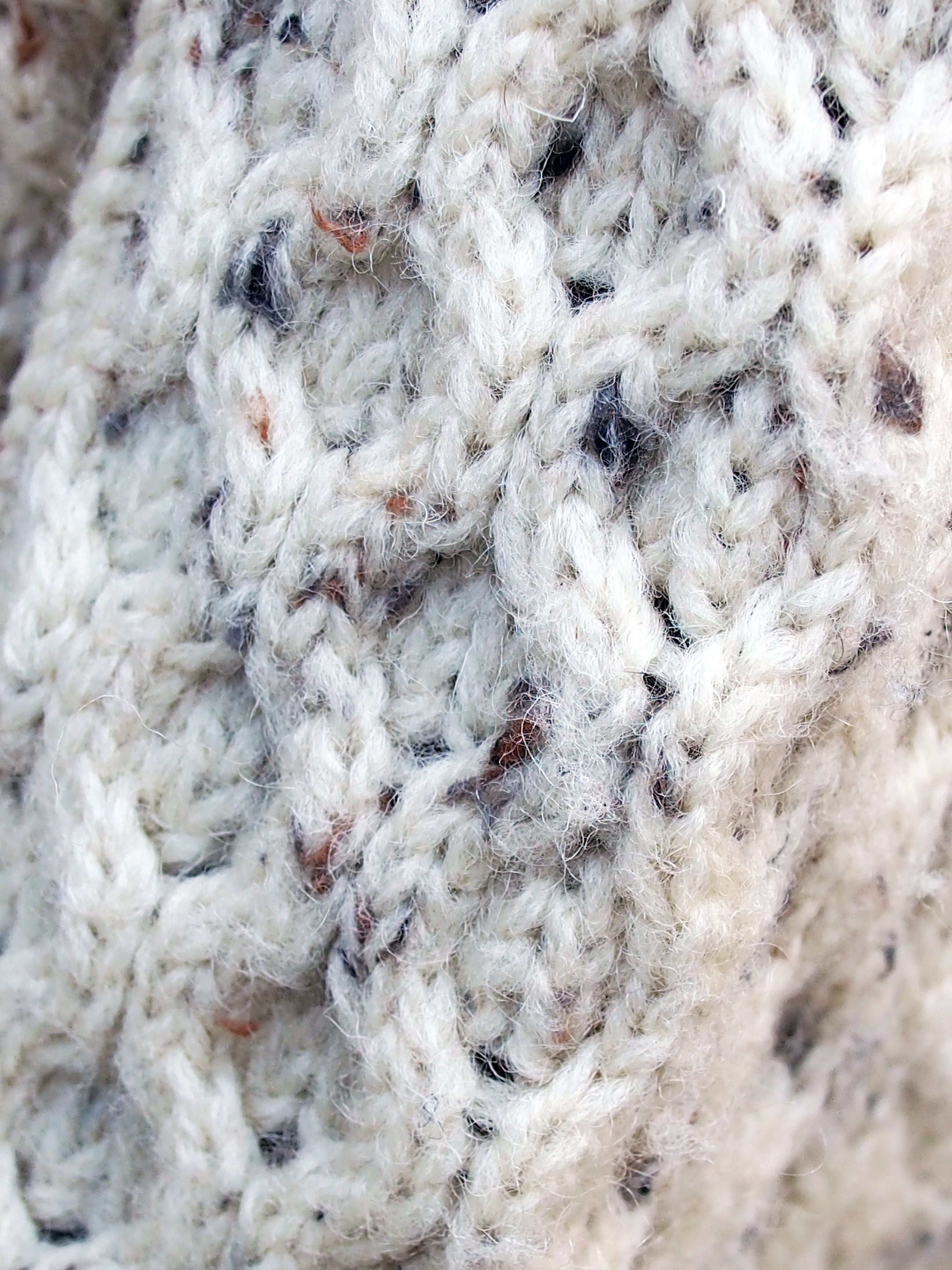 編み方が何種類も入れてあり、全ての角度から違って見えるお洒落なニットです。