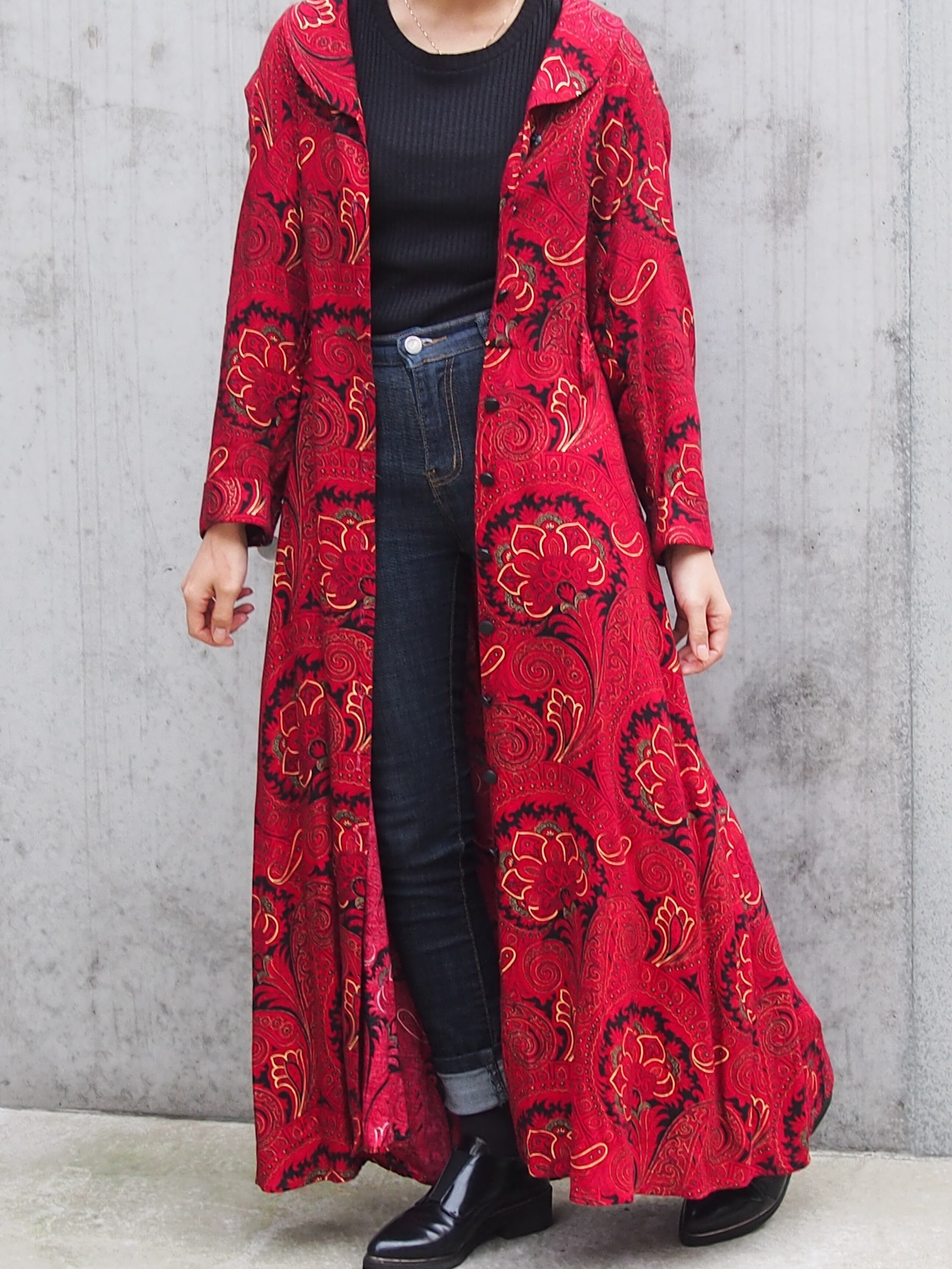 前はボタンが付いており、ワンピースとしてもロングガウンとして着用しても素敵なワンピースです。