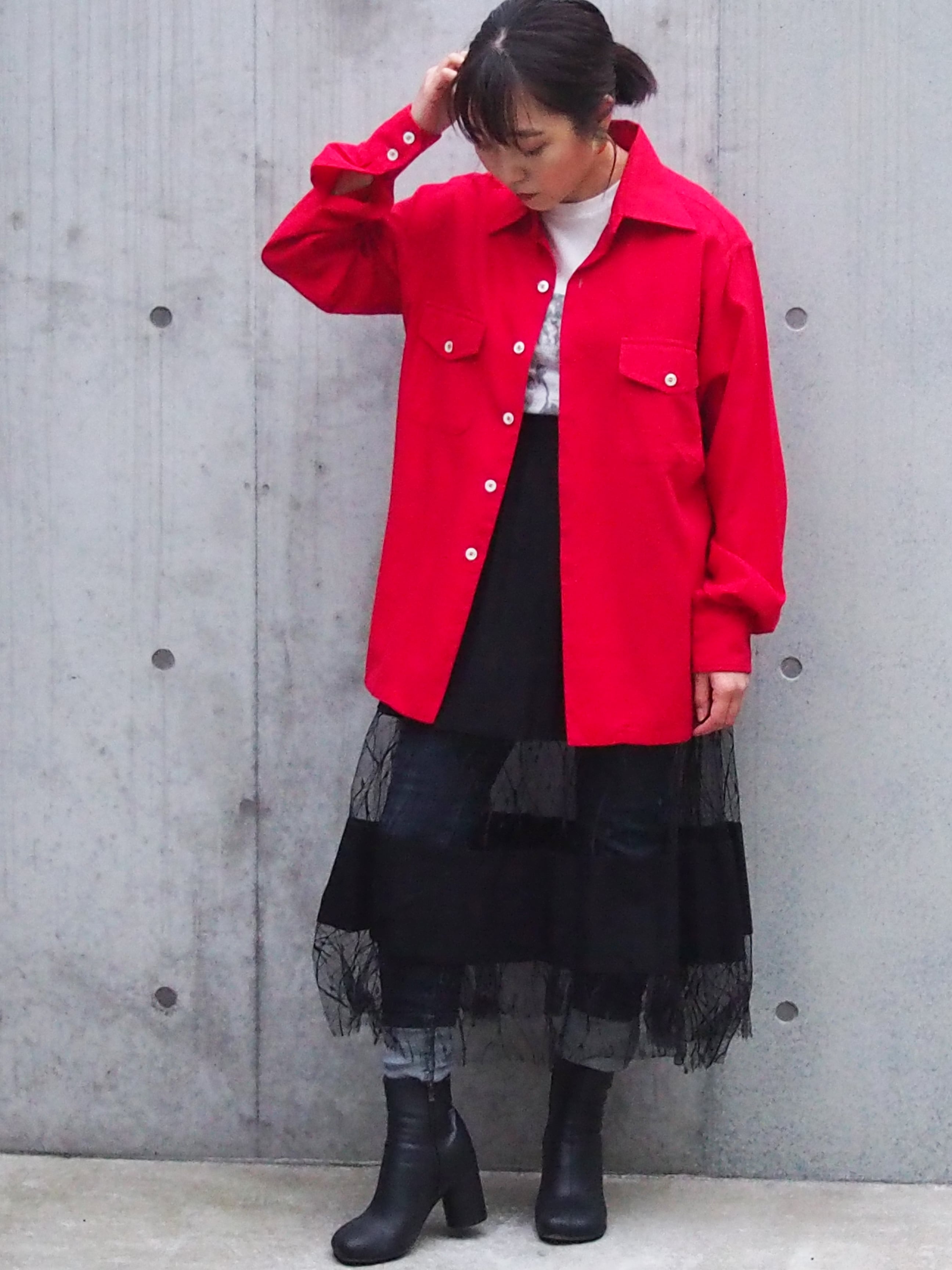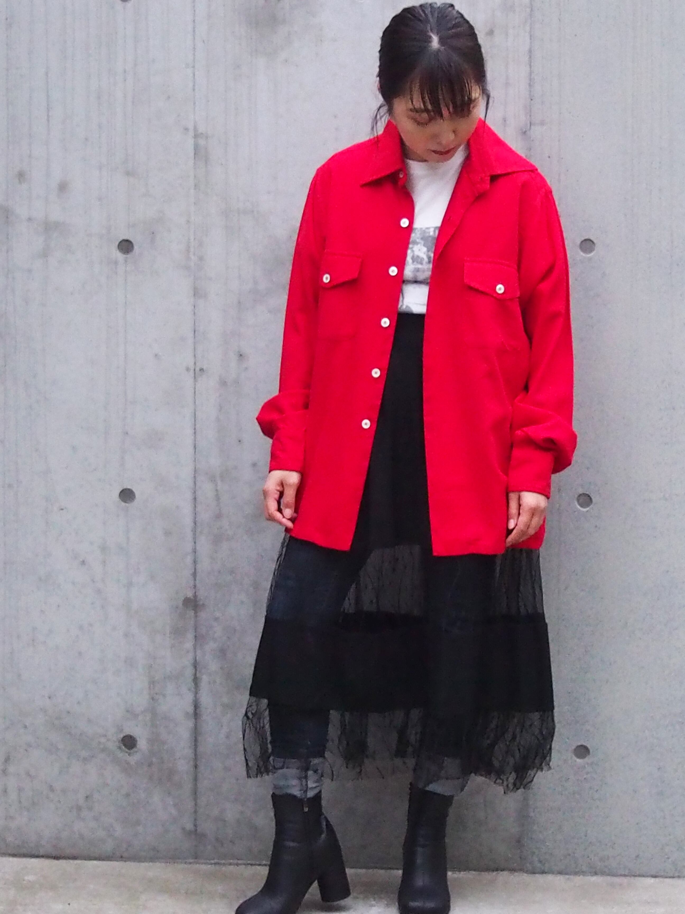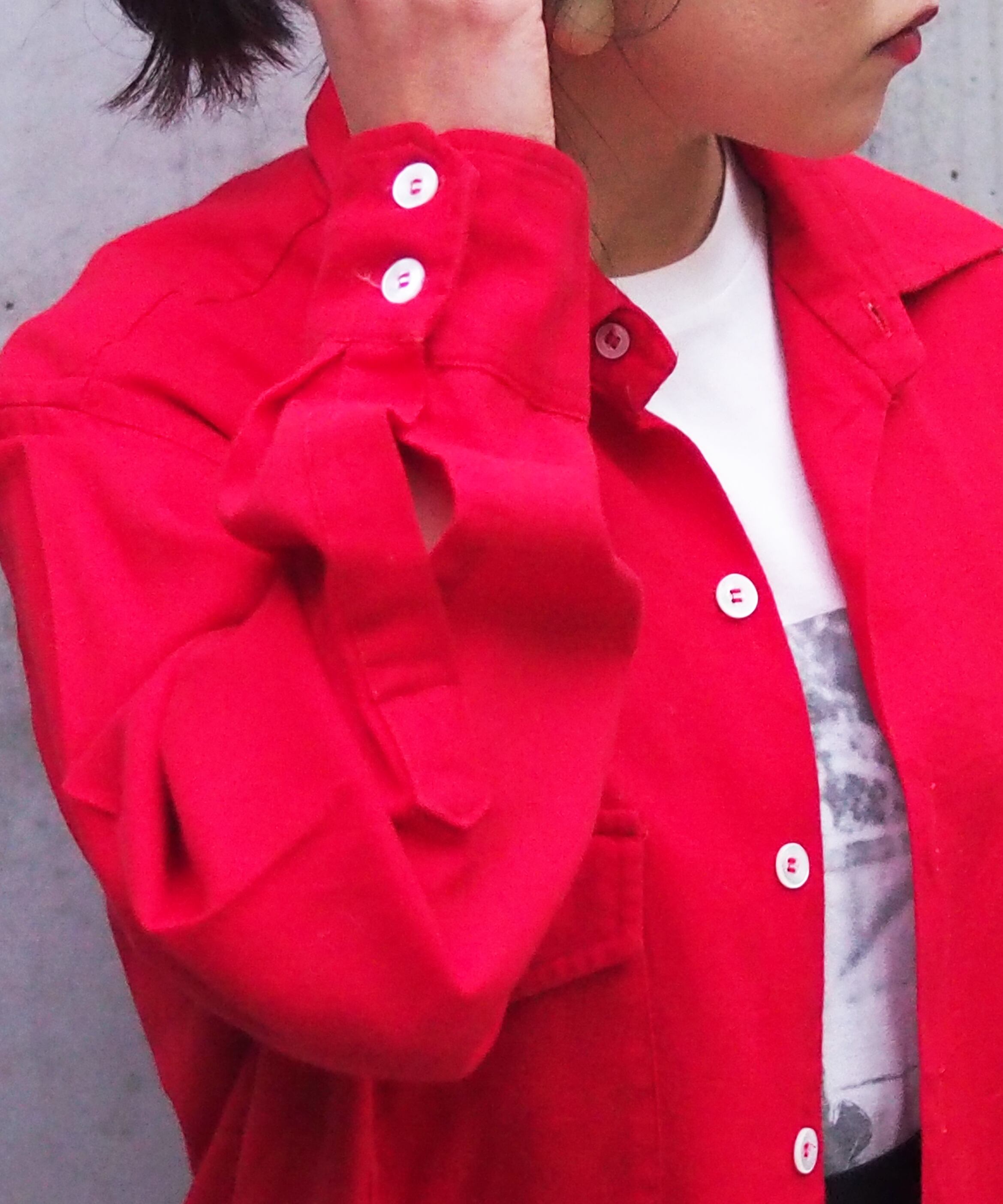 カジュアルにもモードにも着られるレッドカラーが何よりもポイントです。