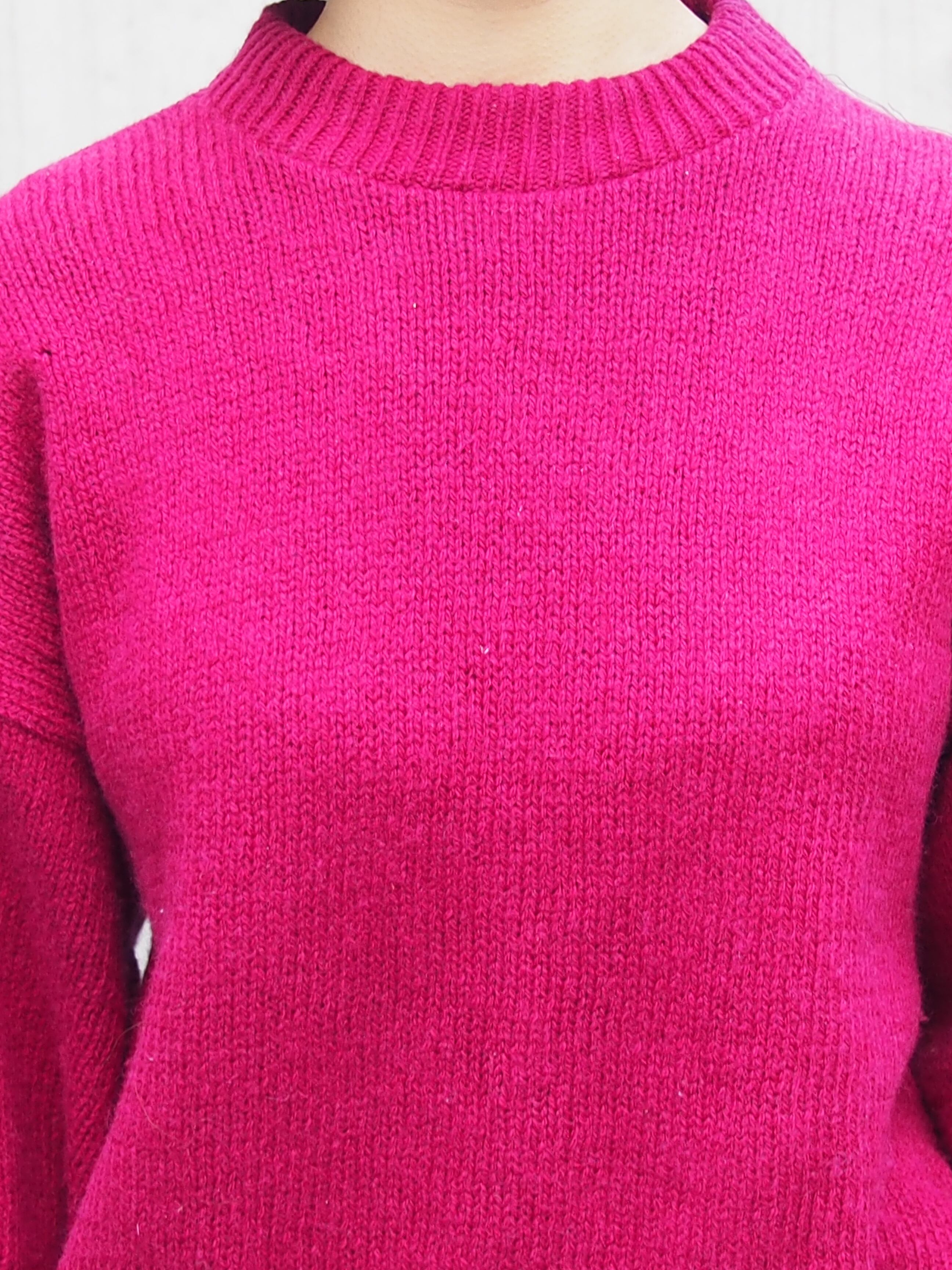 ドロップショルダーでシンプルなデザインの為、ビビットカラーですが着回しのきく万能ニットになります。