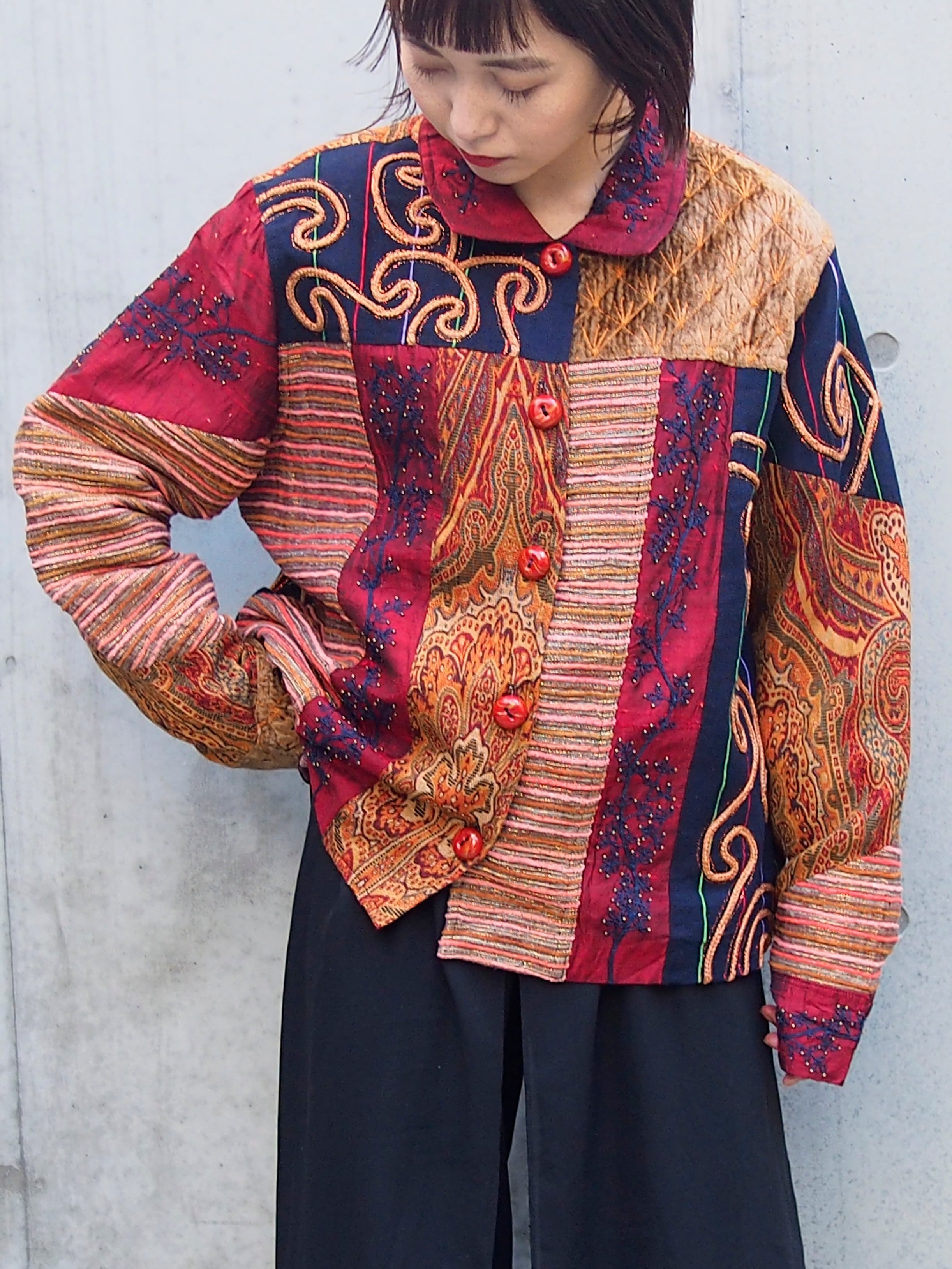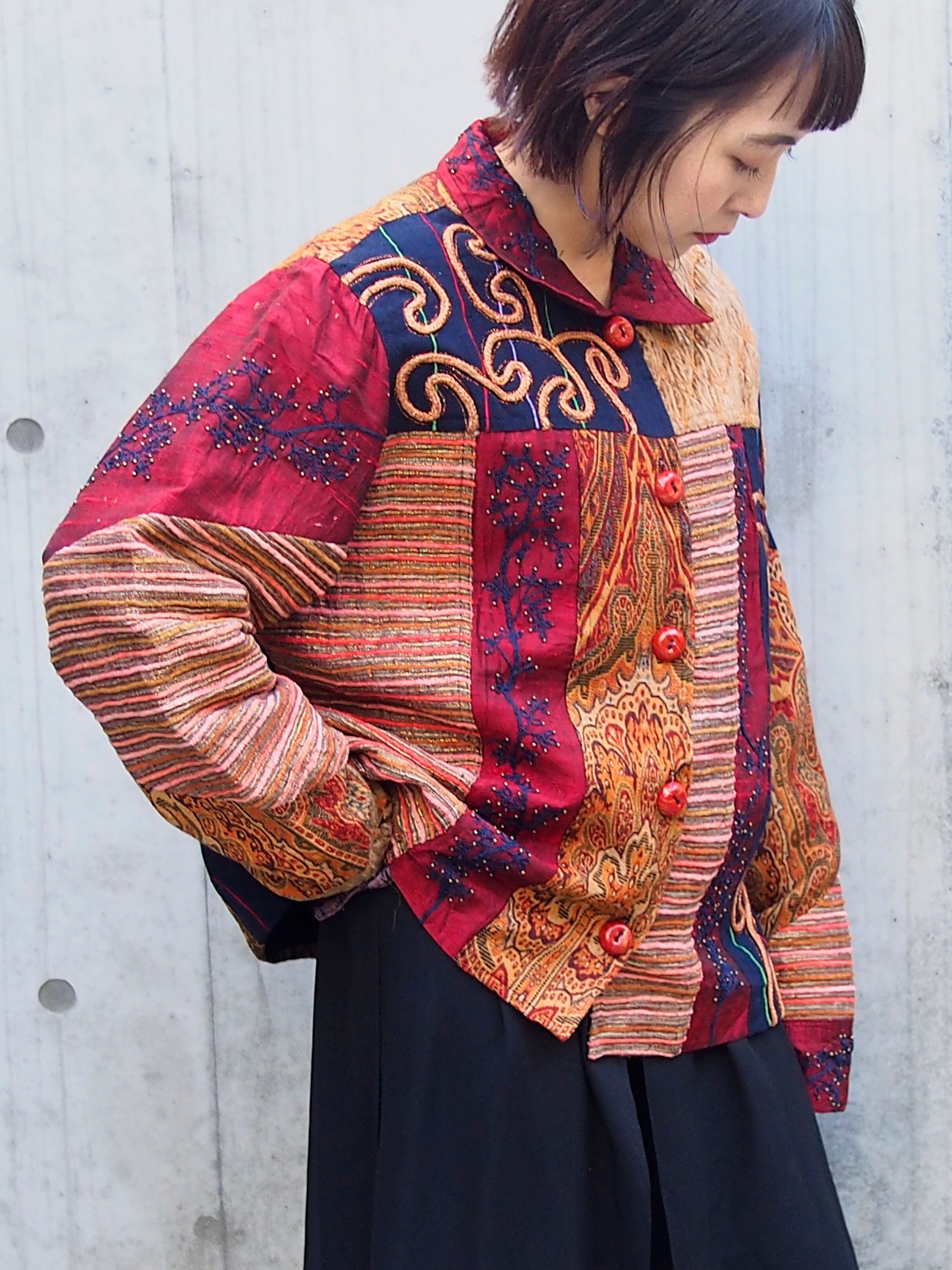 異素材のパッしワークデザインのヴィンテージジャケットの入荷です。