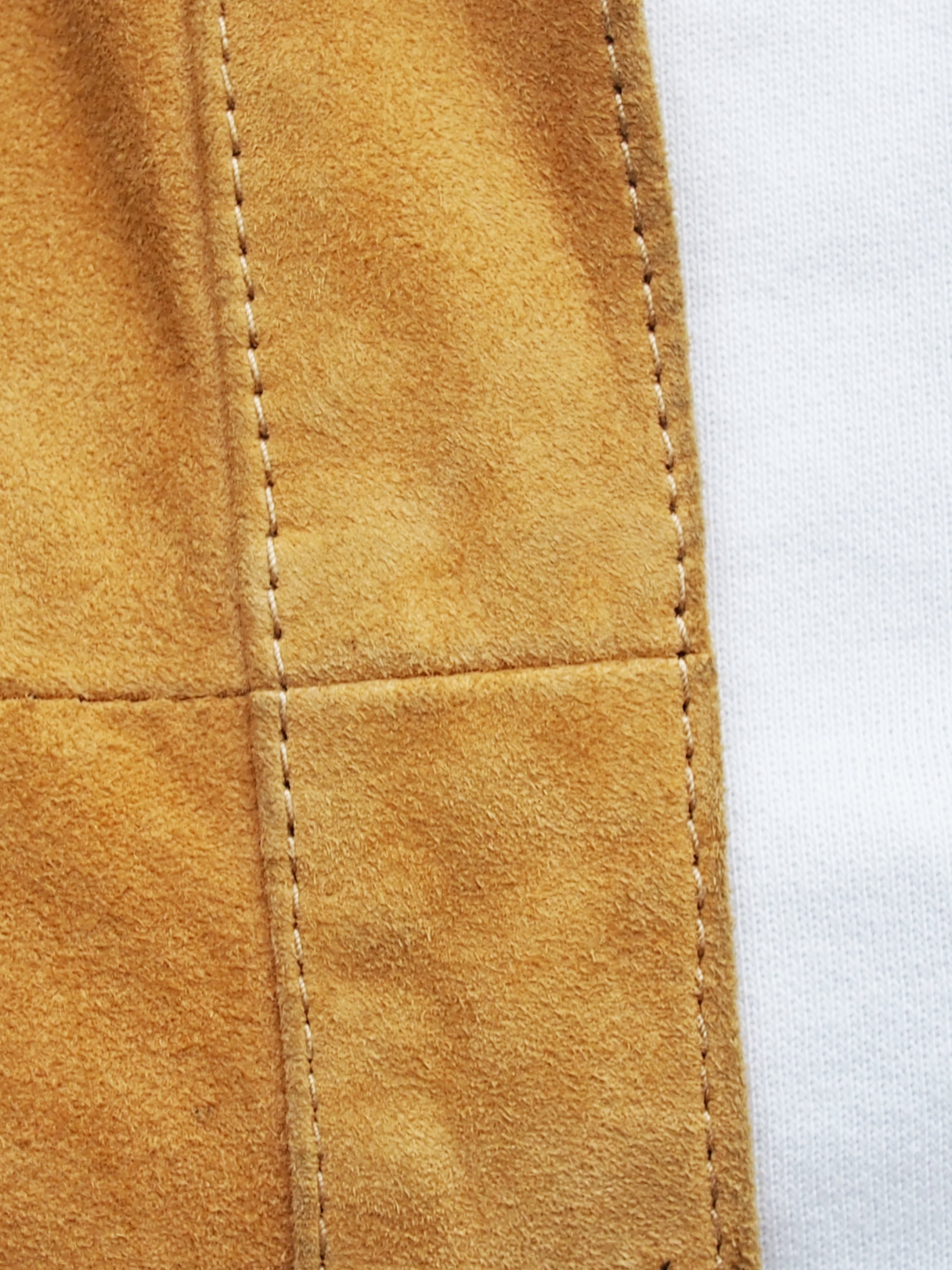 スエード素材から感じる、柔らかなマスタードの色味がとても魅力的な一枚です。