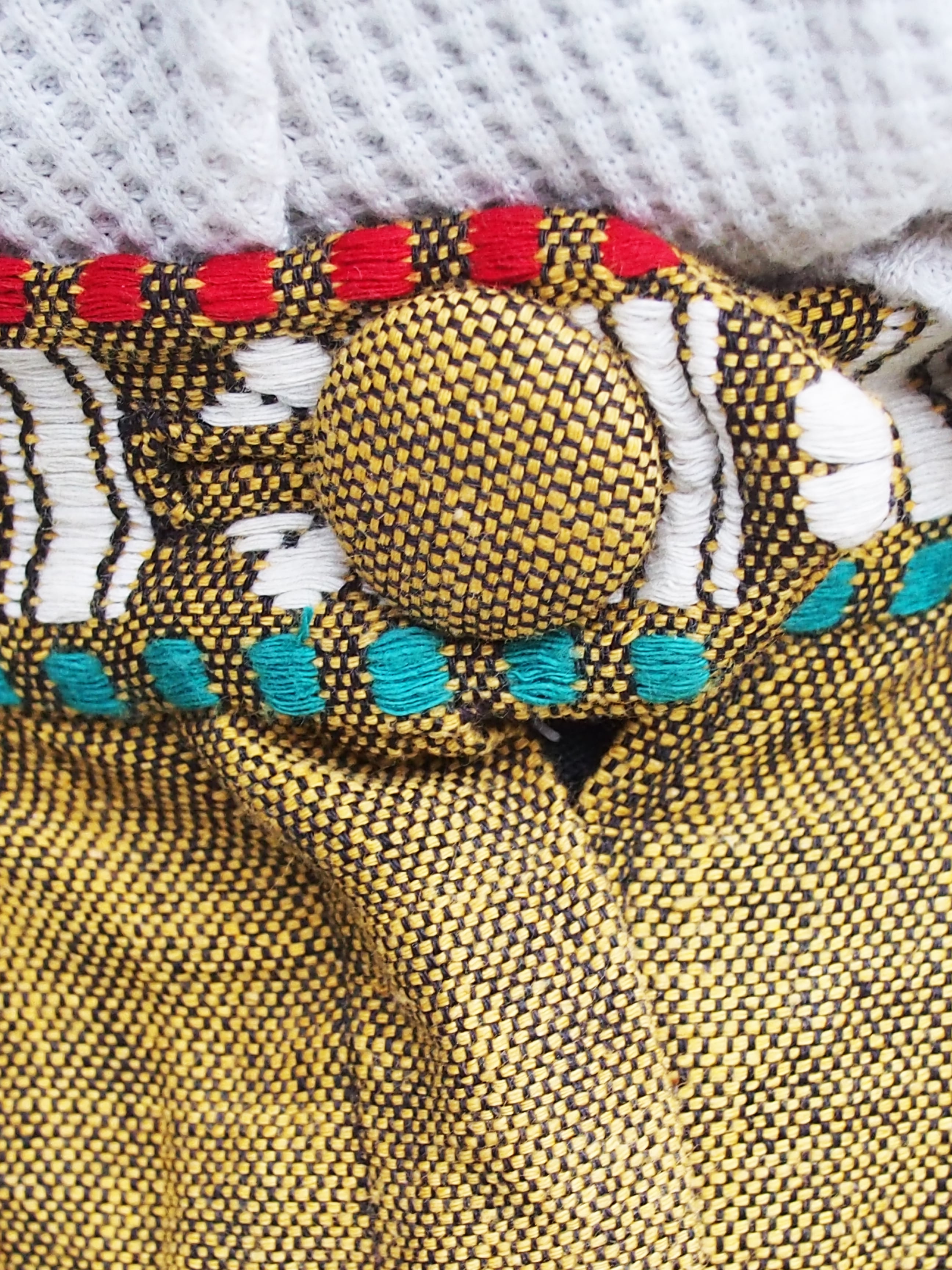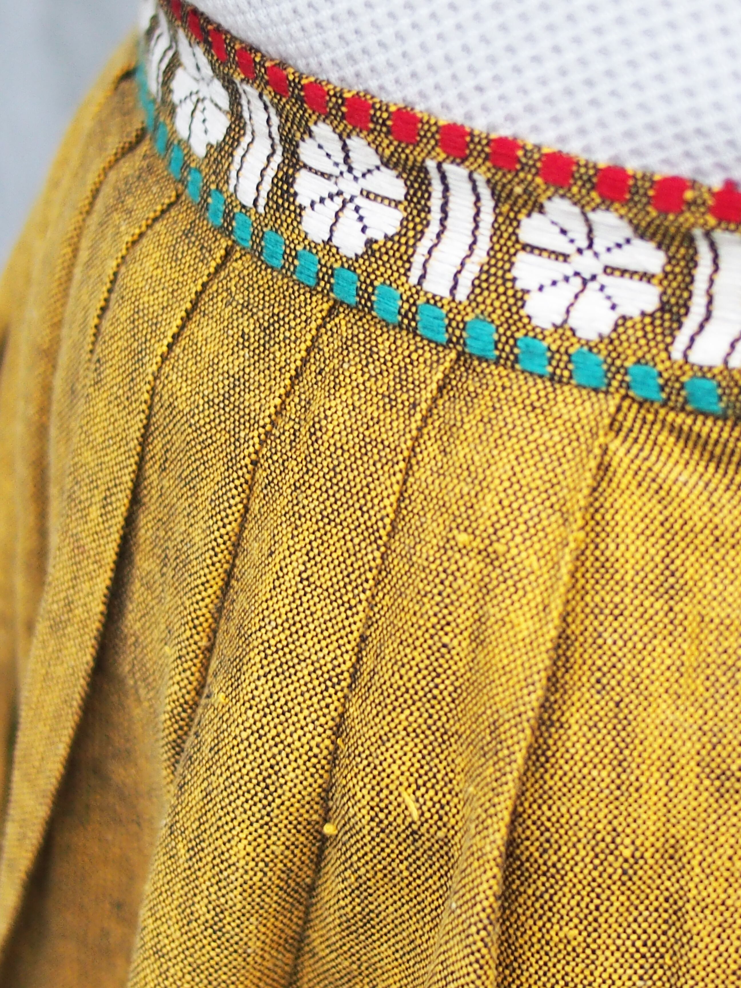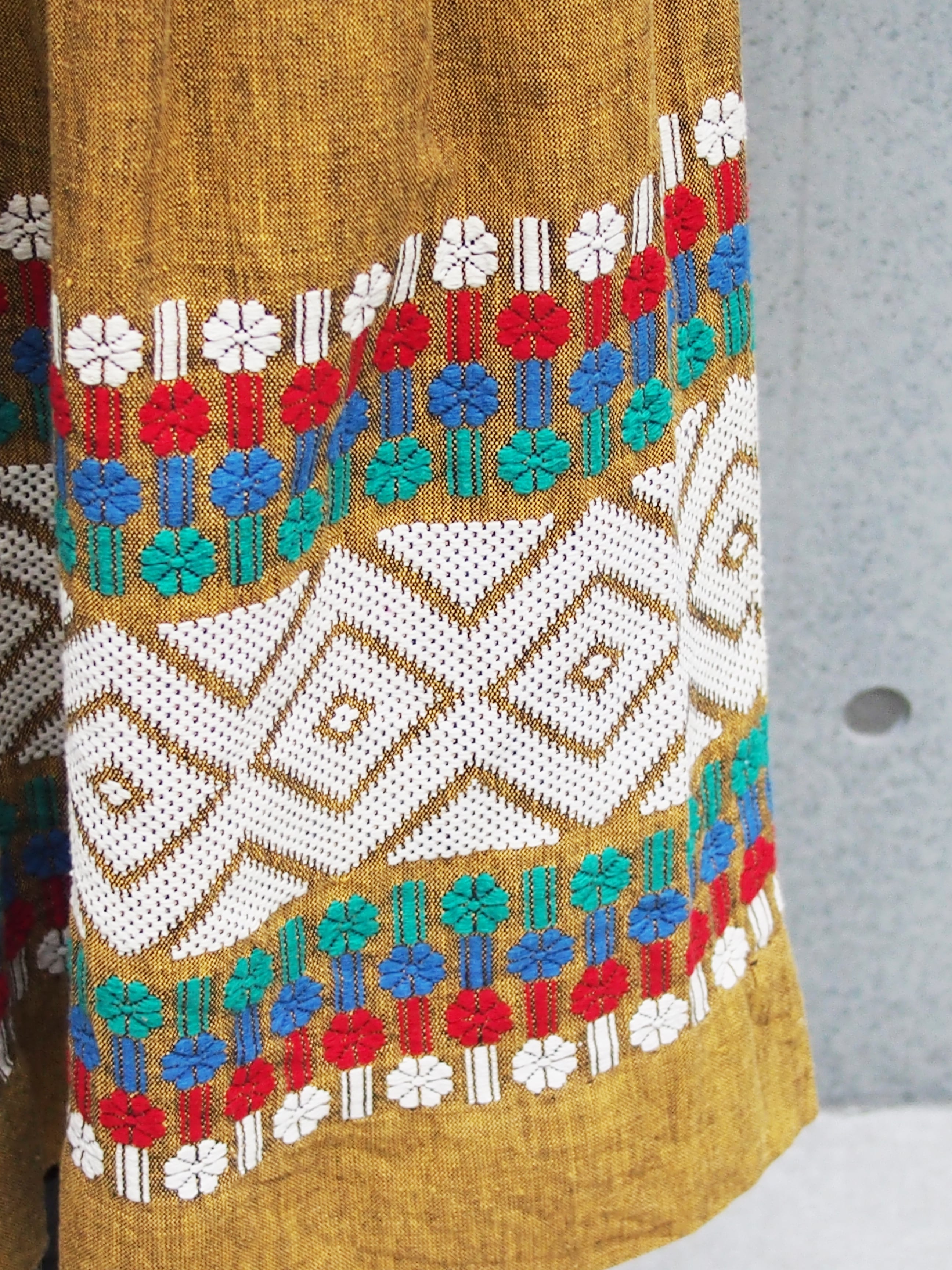 手織りのコットン生地とギッシリと入った刺繍模様が、重みと価値を感じさせます。