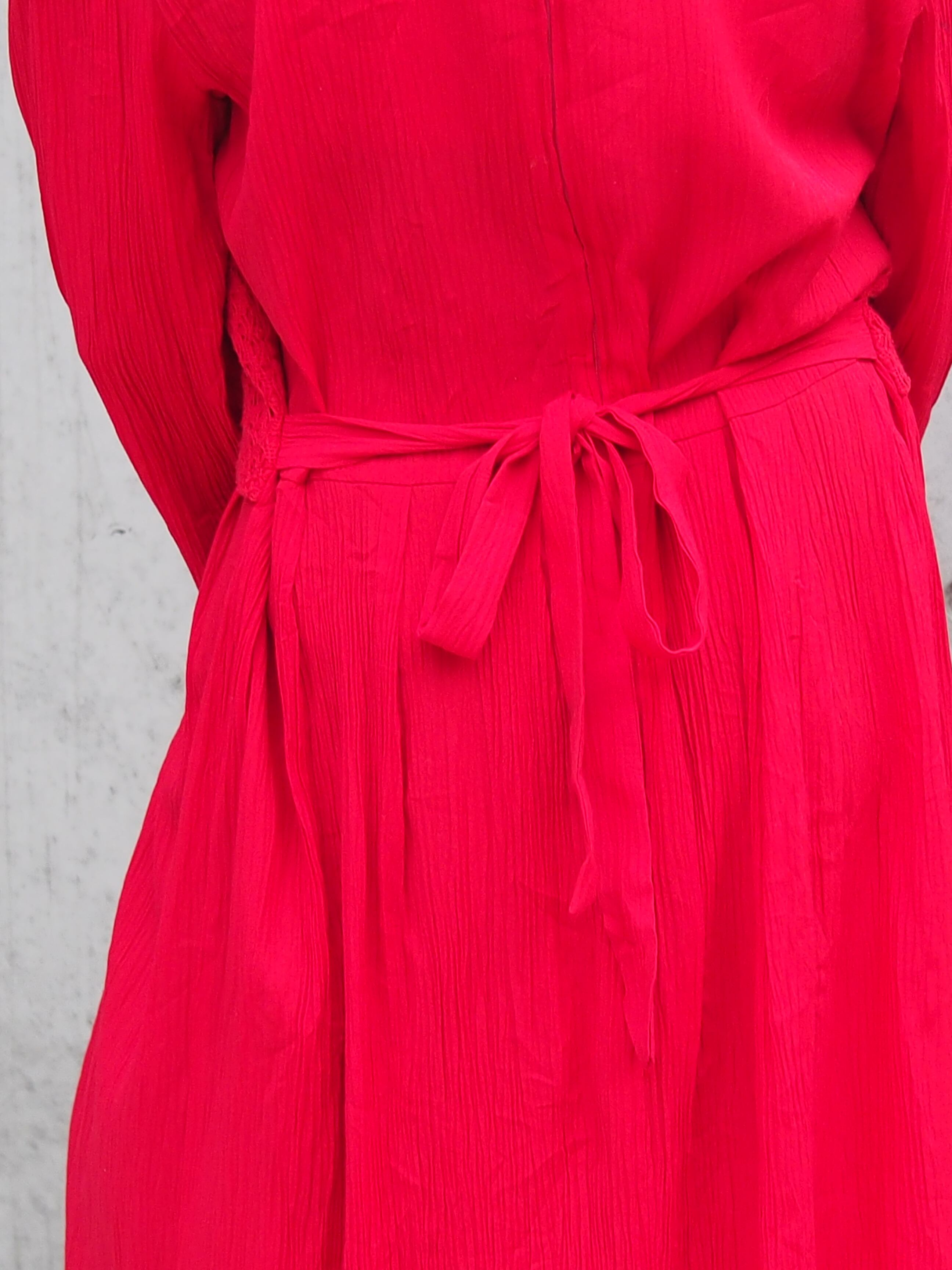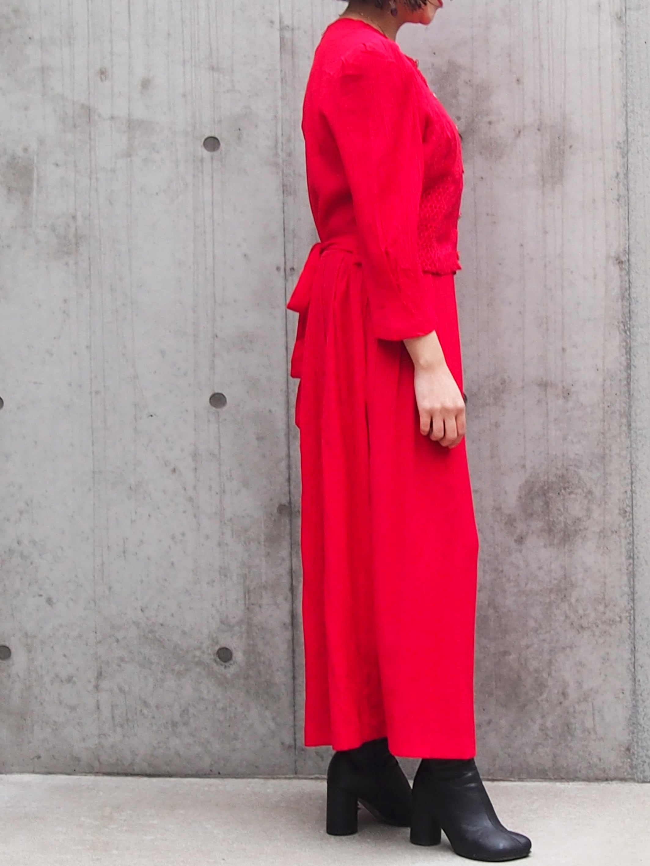 コットン生地のためレッドの中でもオレンジに近い色味が柔らかなフェミニンな雰囲気を漂わせます。