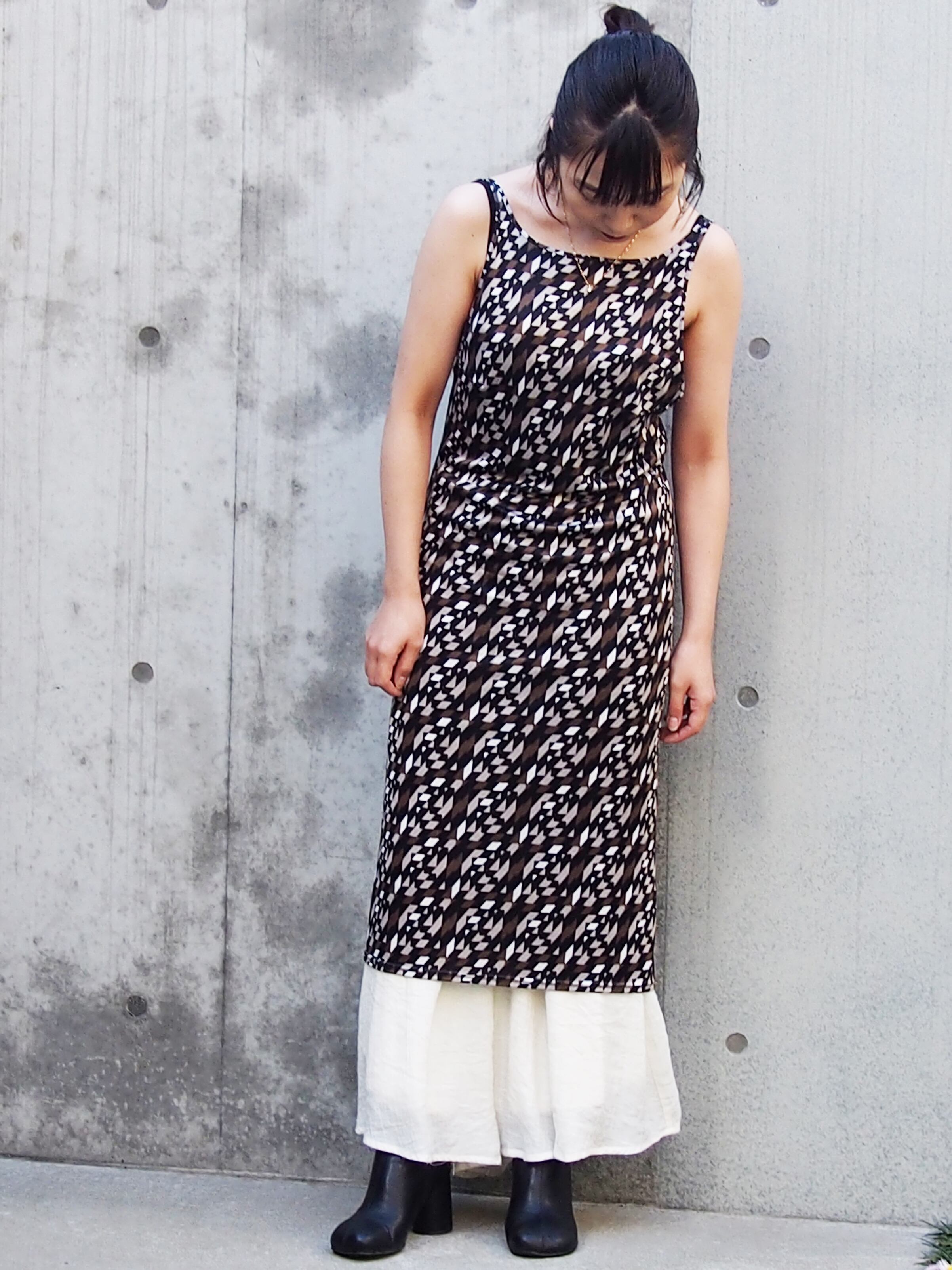 緩すぎず、タイトすぎないアイラインのシルエット、着心地の良いさらっとした素材感は長い時期着られる万能ワンピースです。