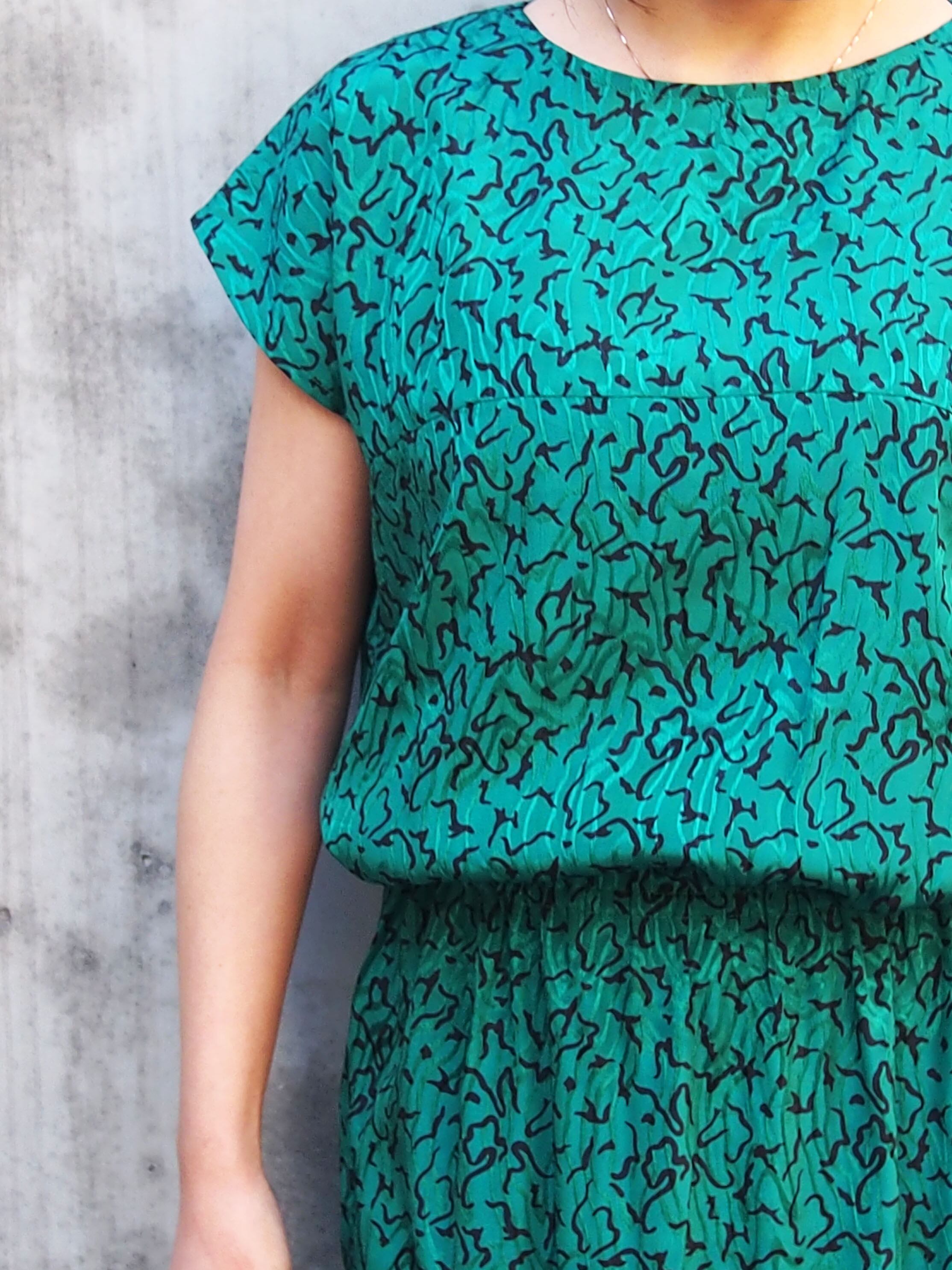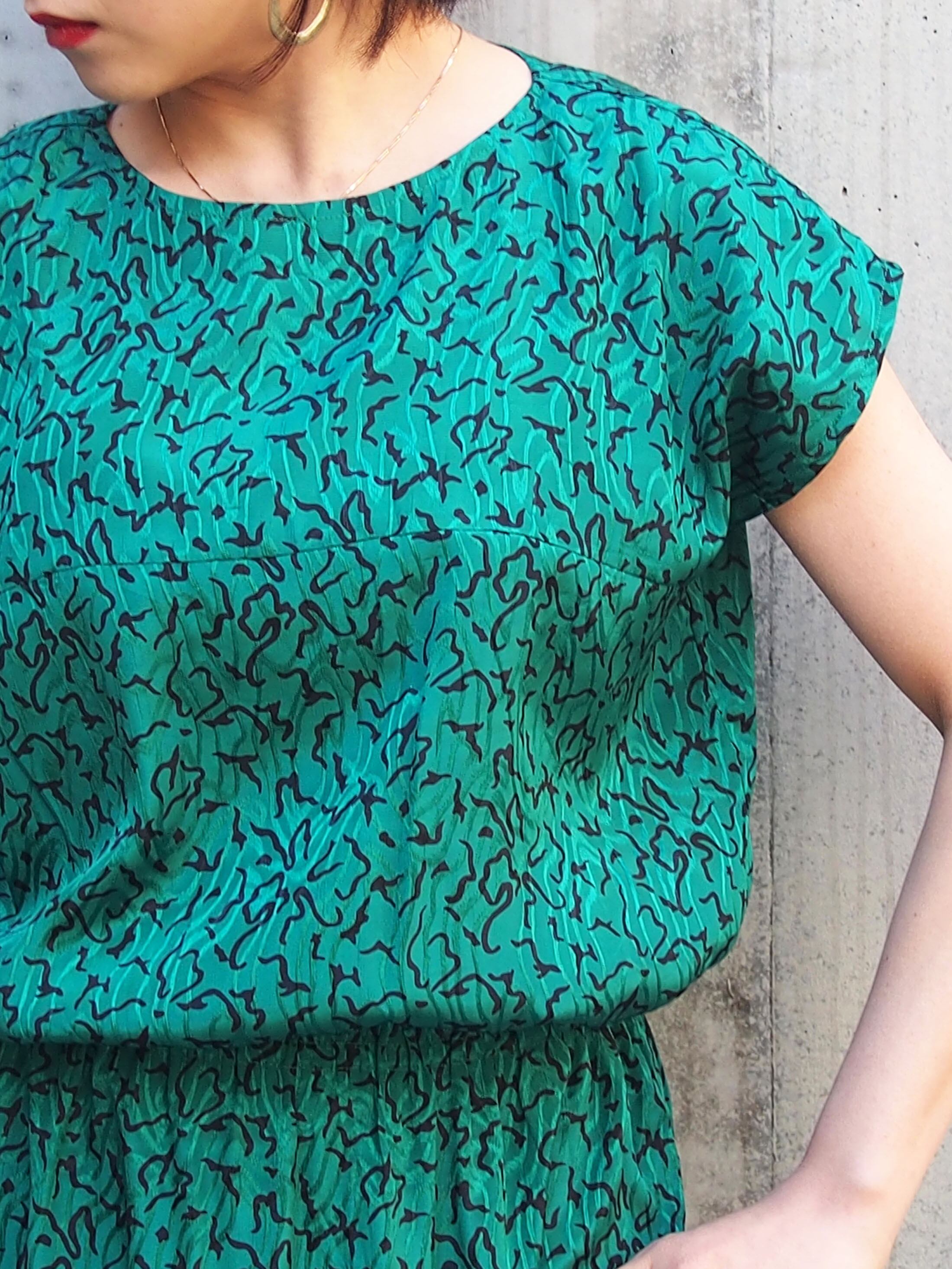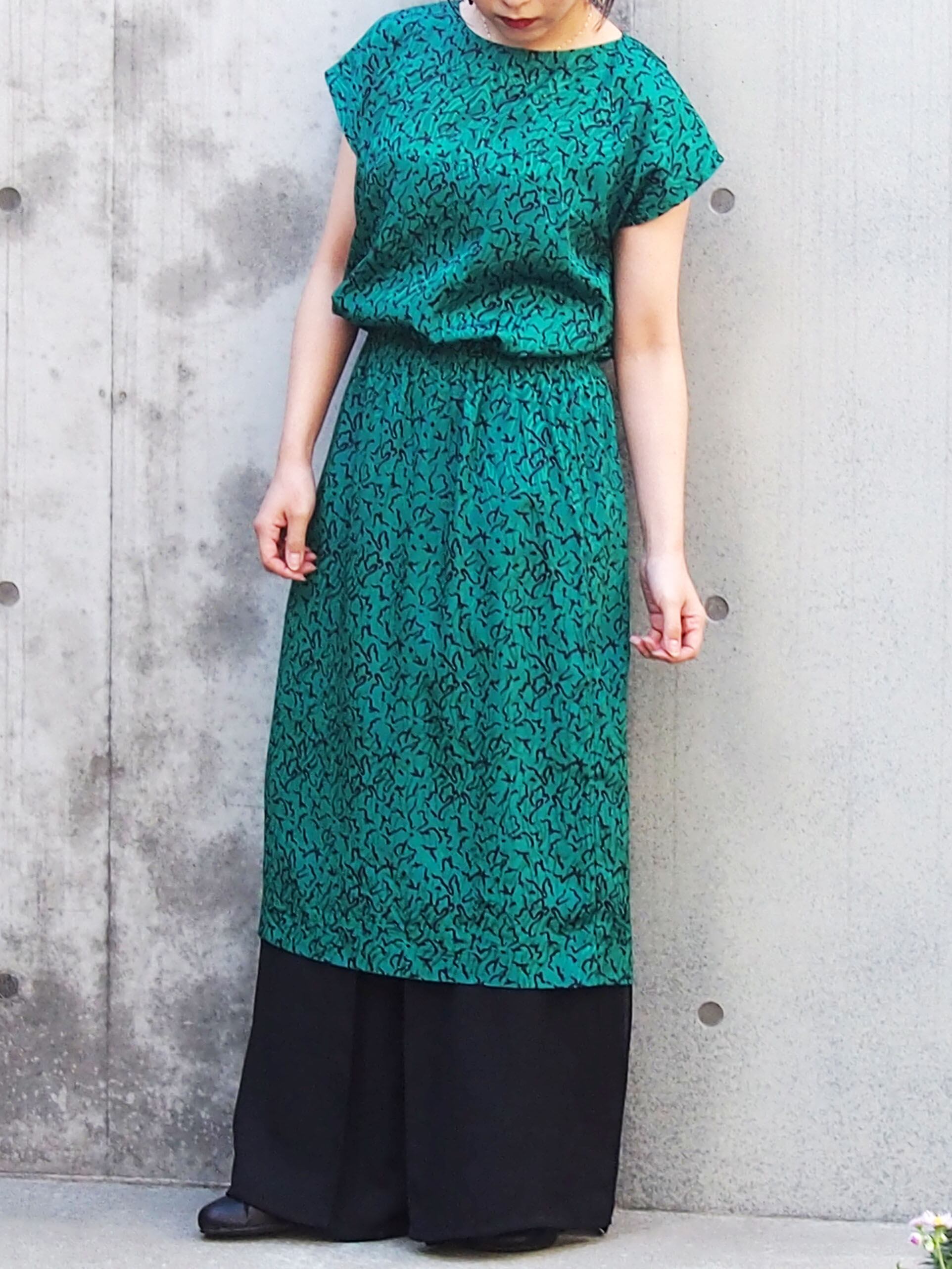 ウエストがゴム製ですのでブラウジングしても着崩しても素敵に着ていただけます。
