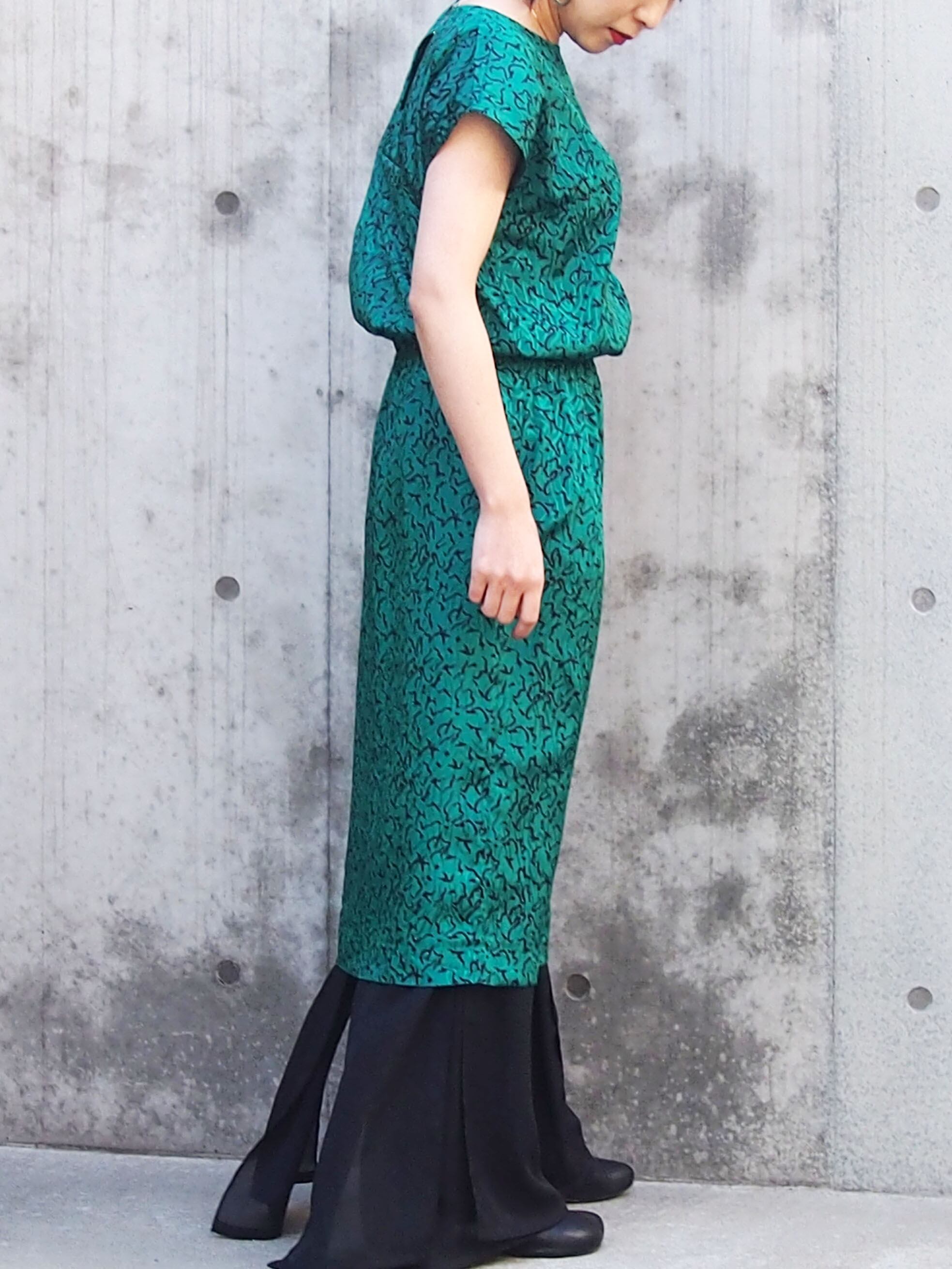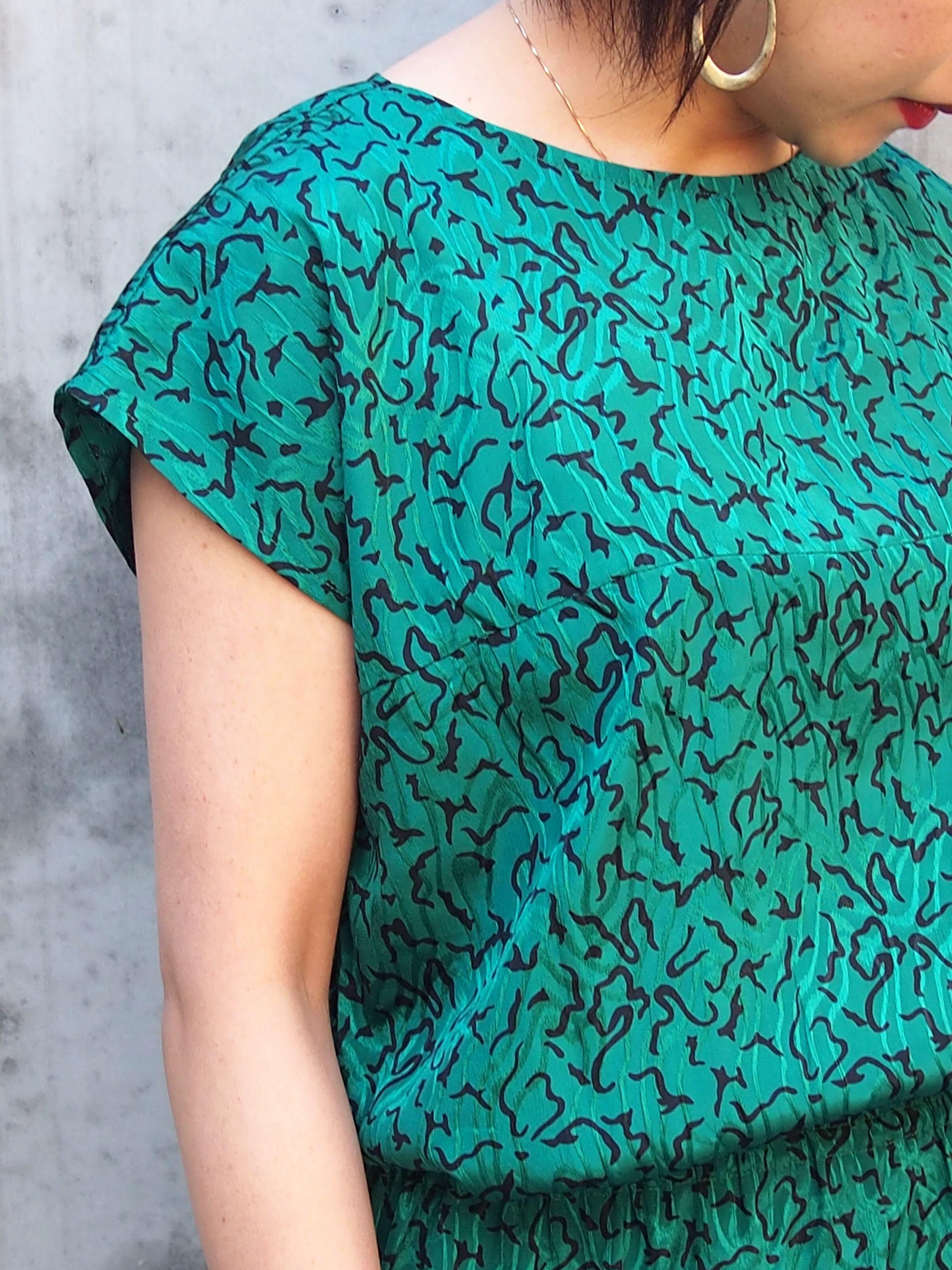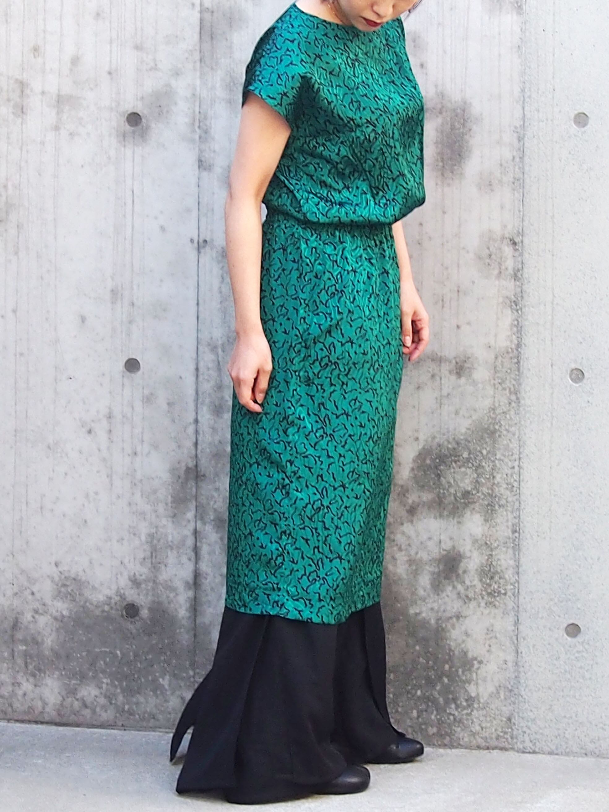 デザイン柄と隠し柄が施された生地がなんとも素敵なドレスです。