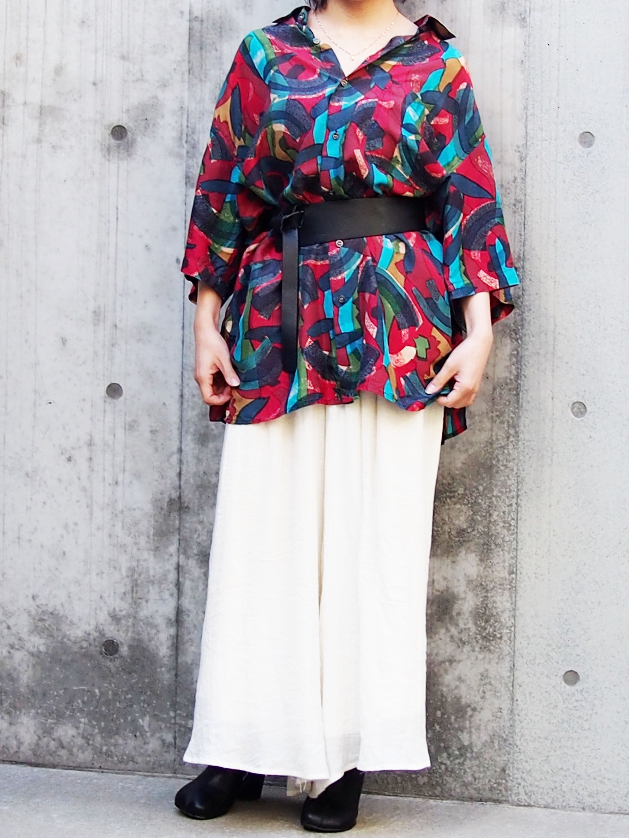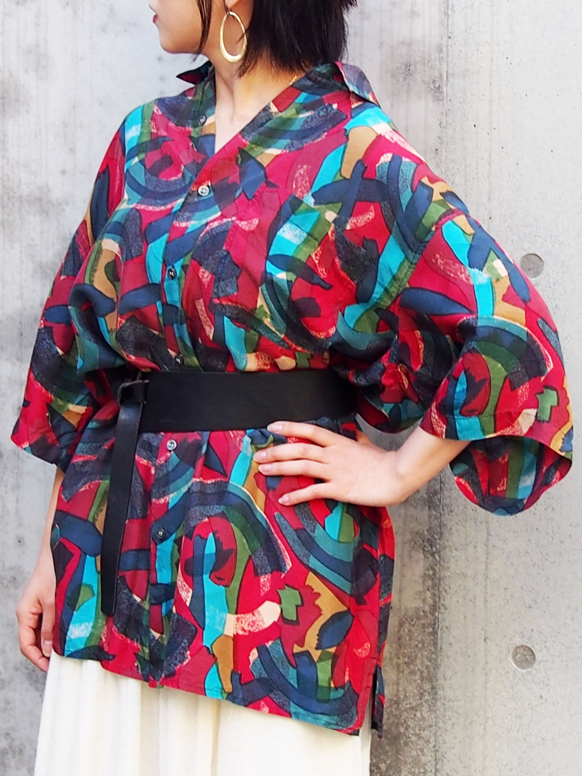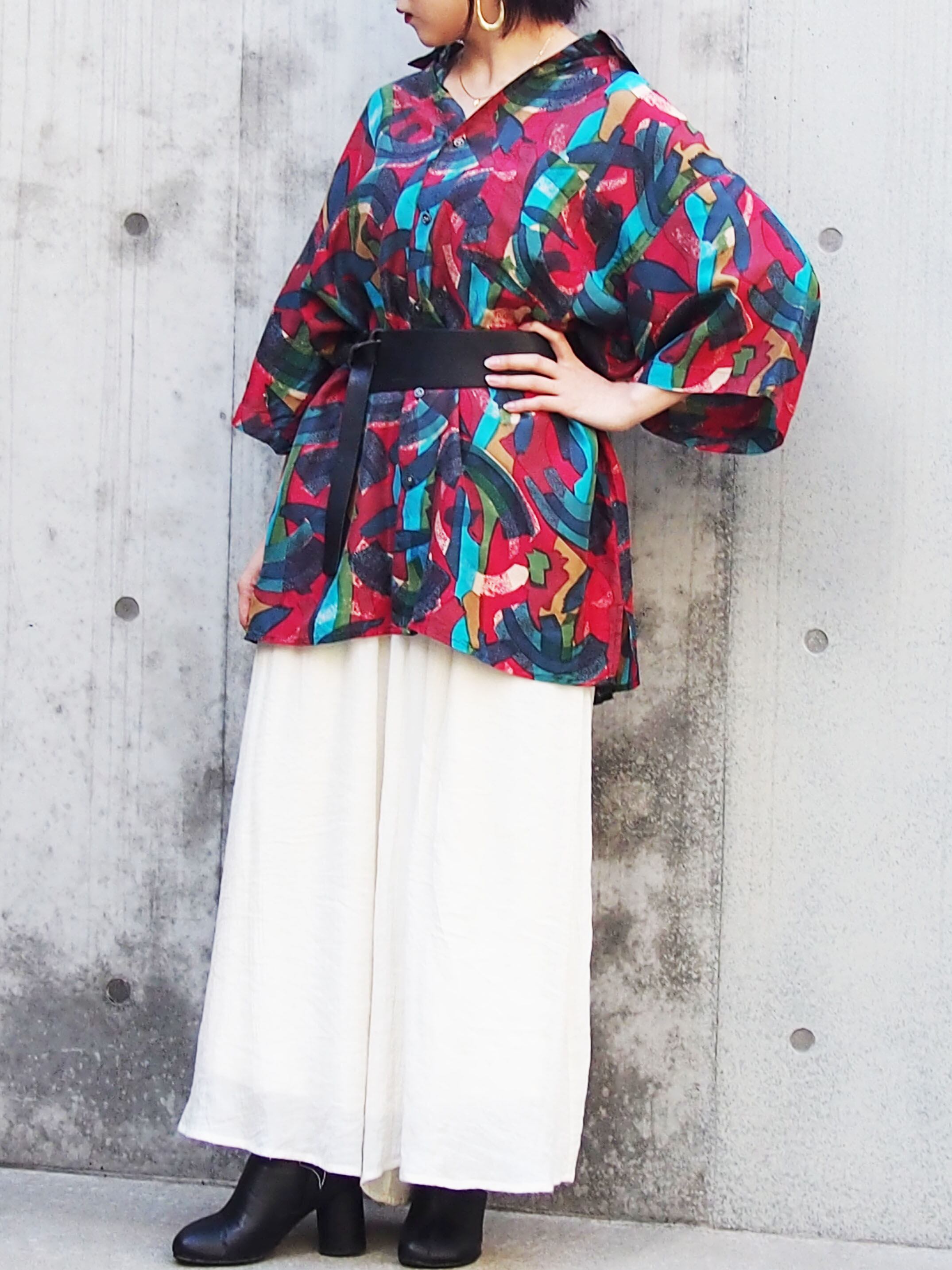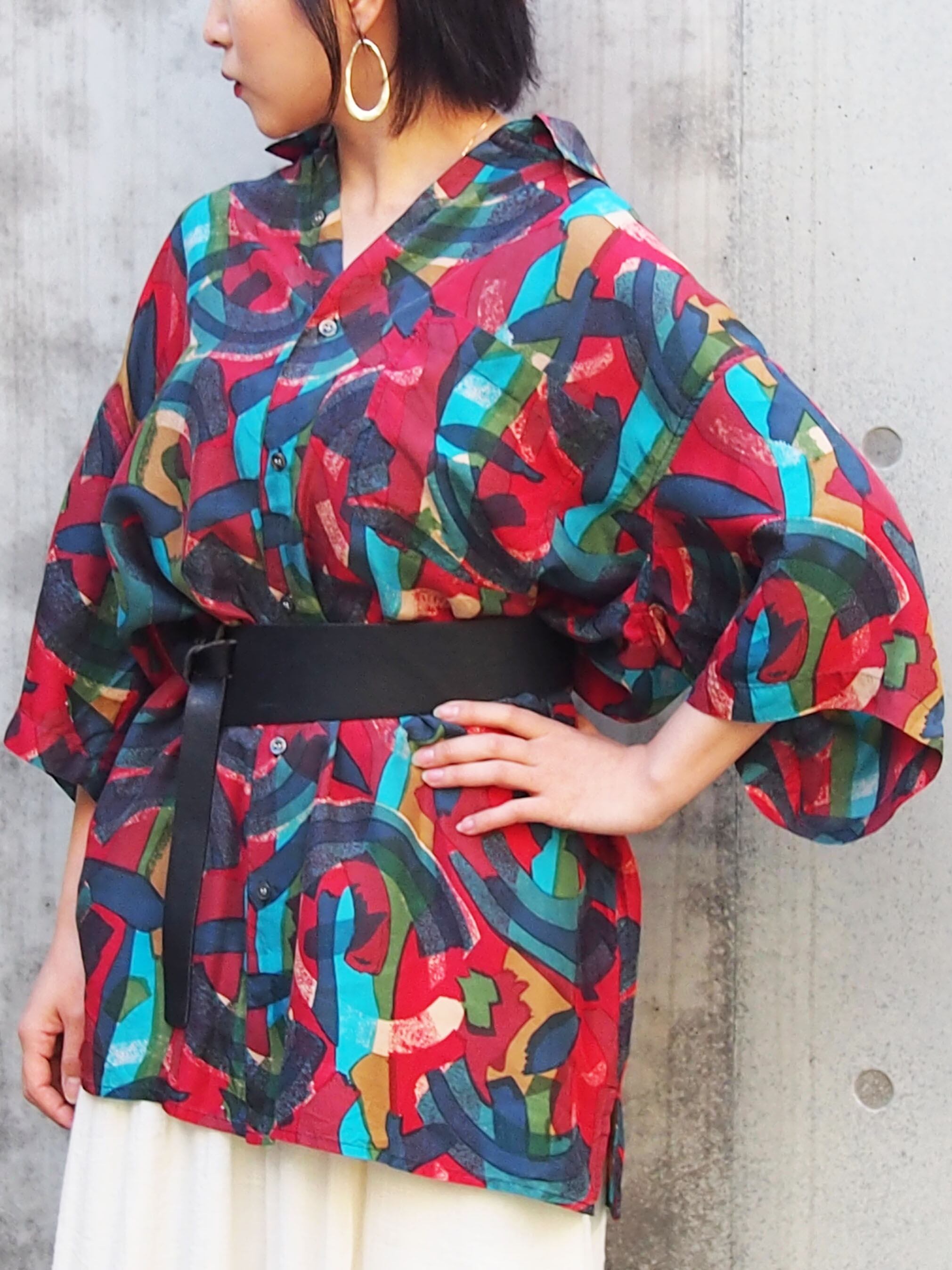 モダンミックスカラーが素敵なオーバーサイズシャツ。