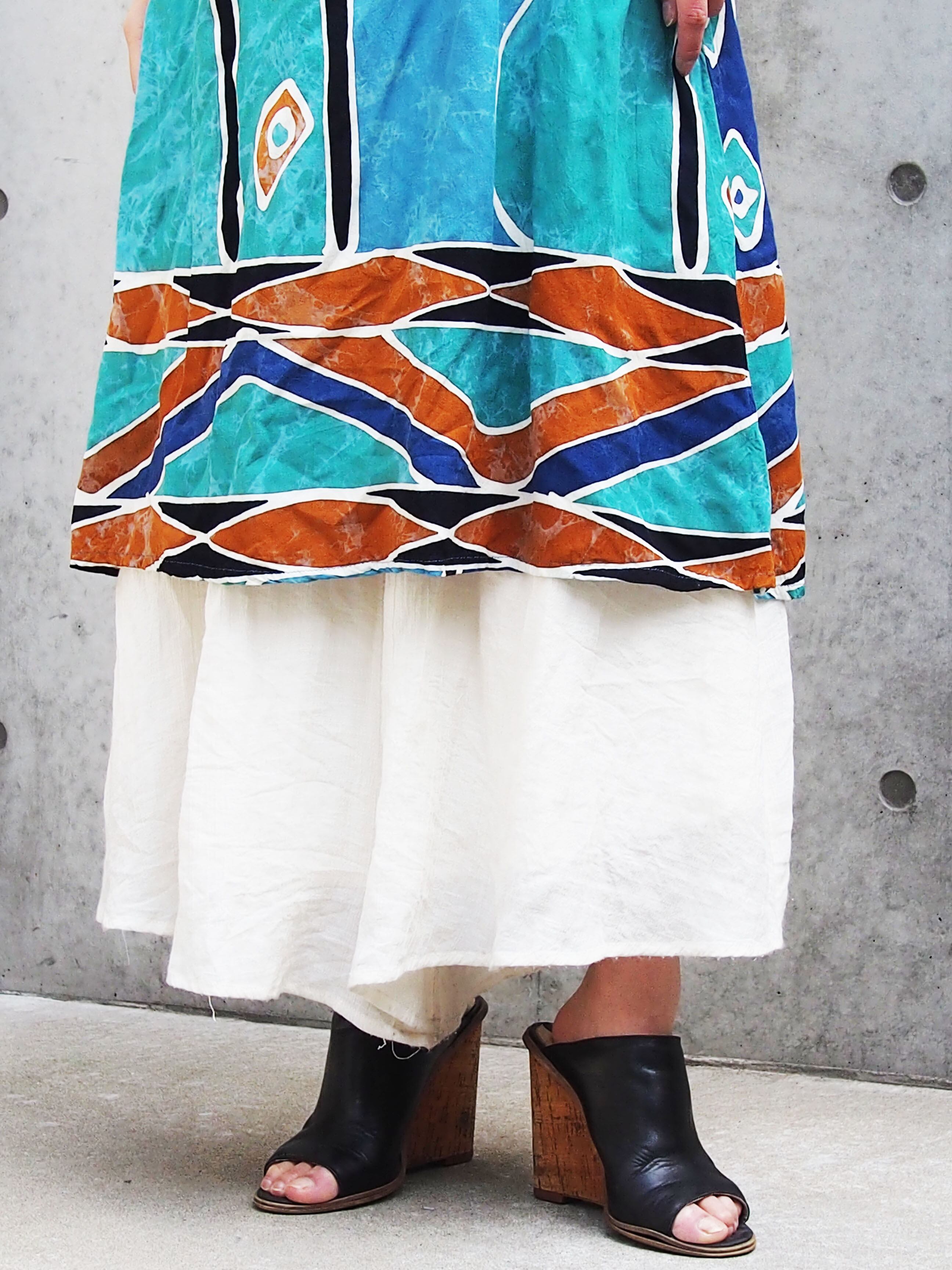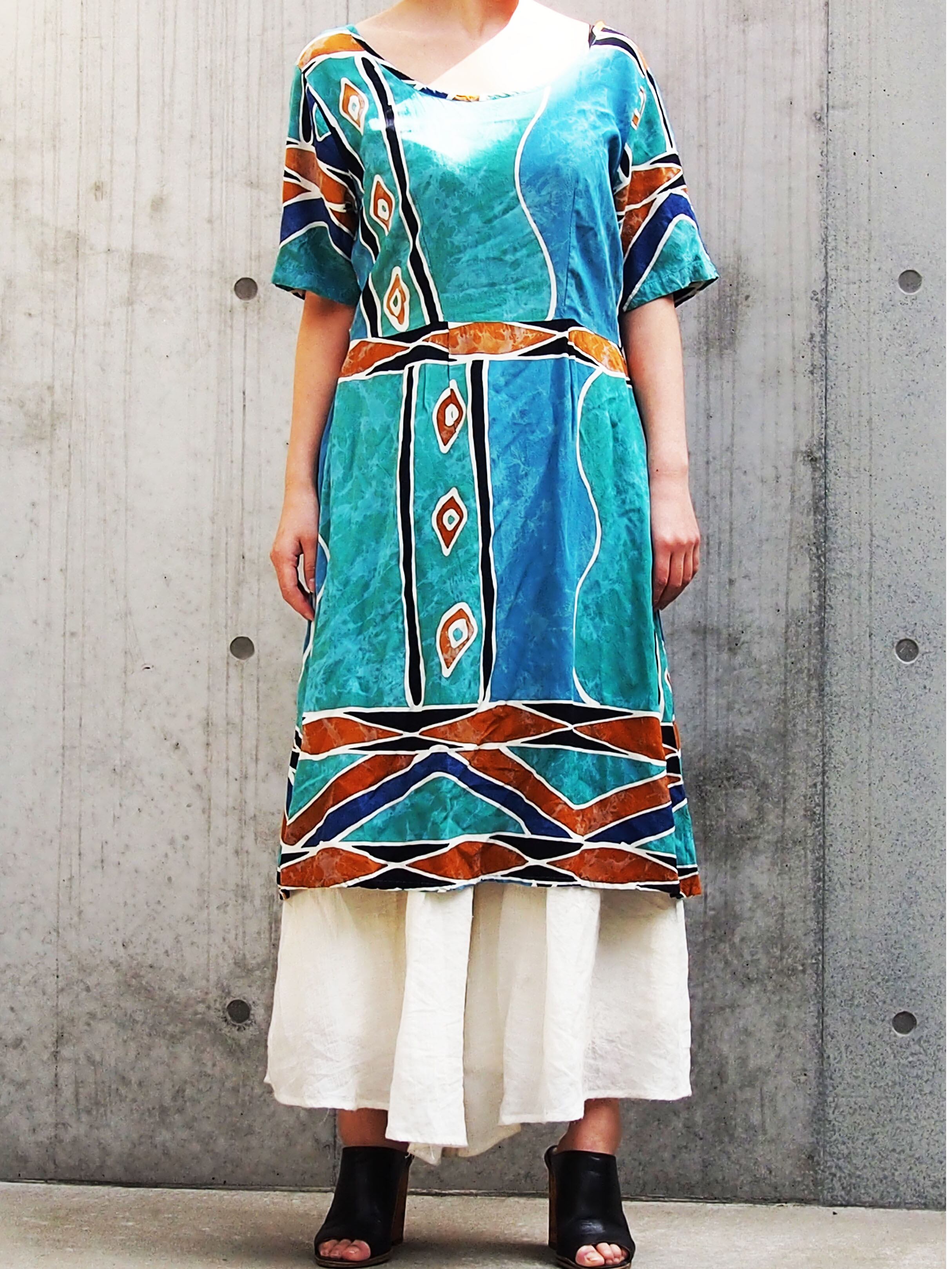 エスニックプリントが涼しげなチュニックワンピースです。