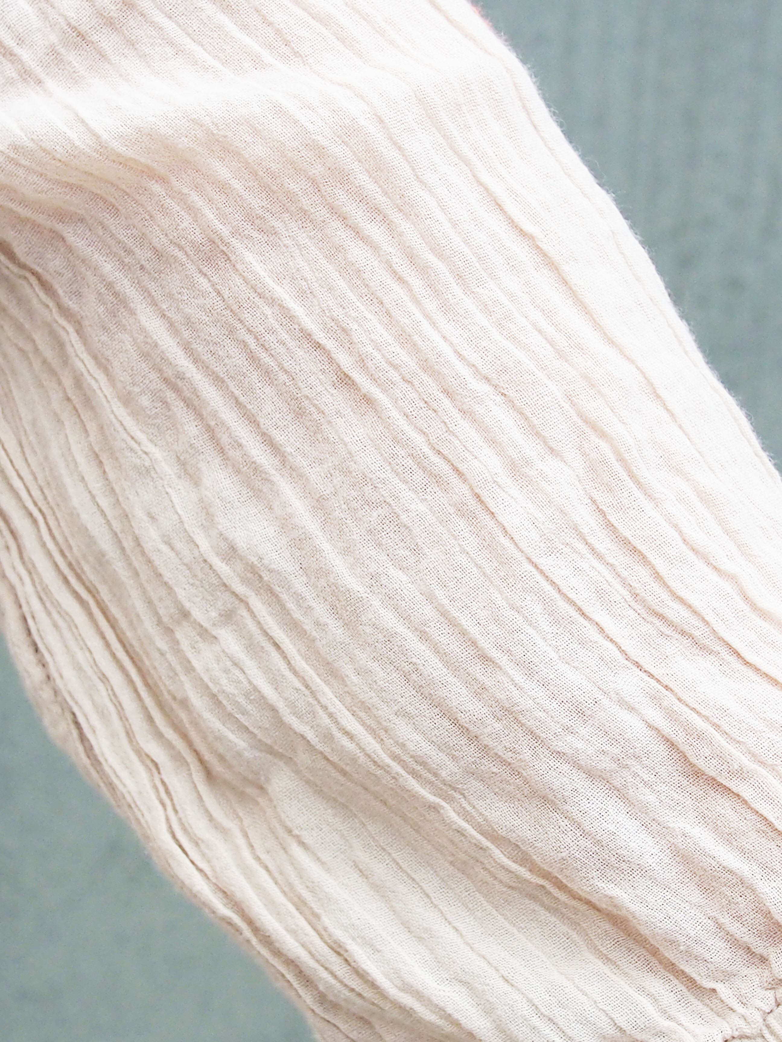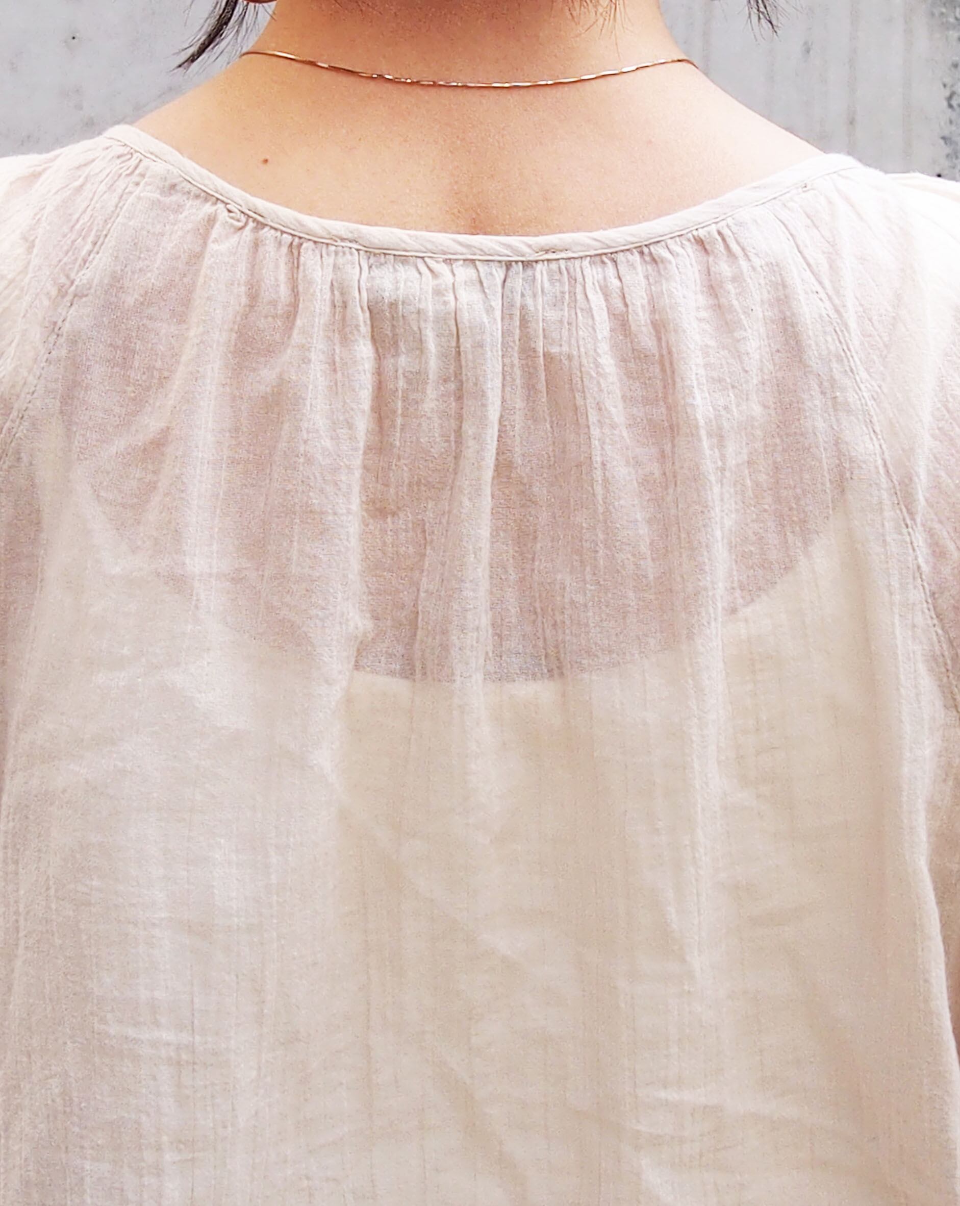 スモックシルエットがとても可愛く、多少シースルーになっている生地の透け感がフェミニンな雰囲気や女性らしい雰囲気を漂わせます。