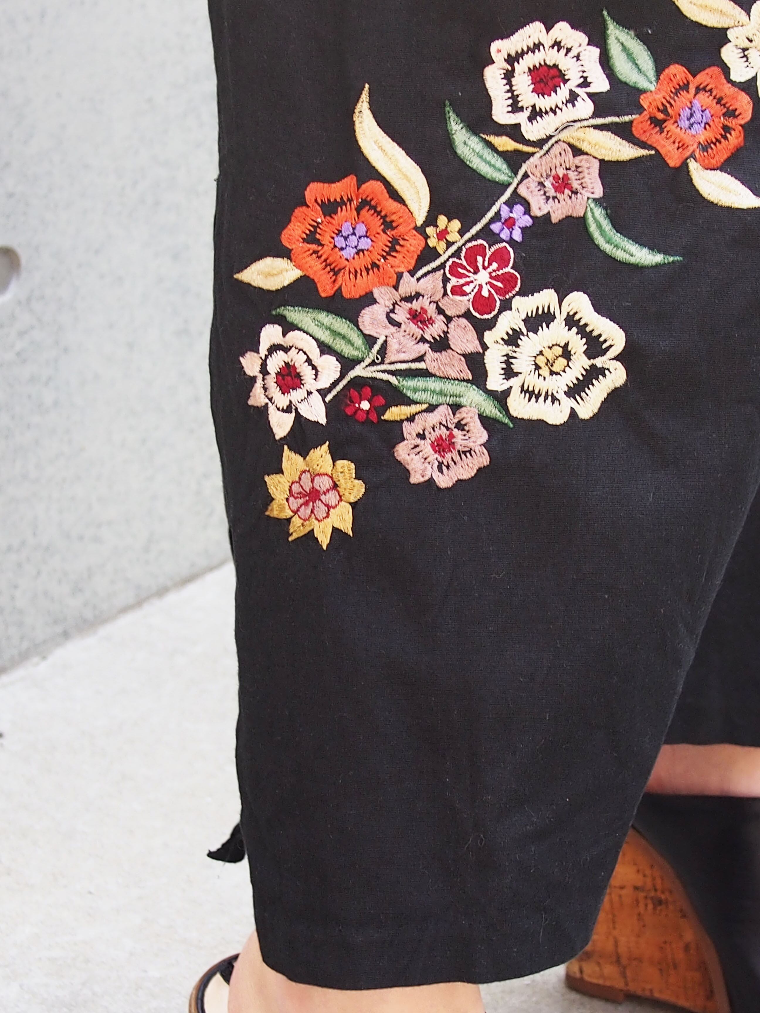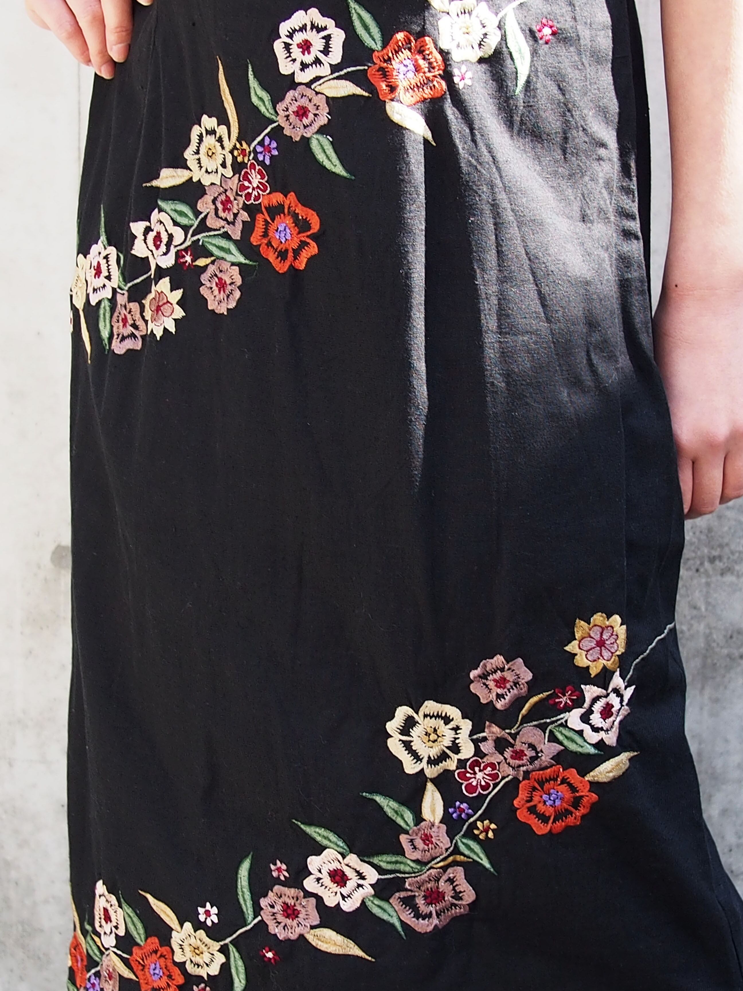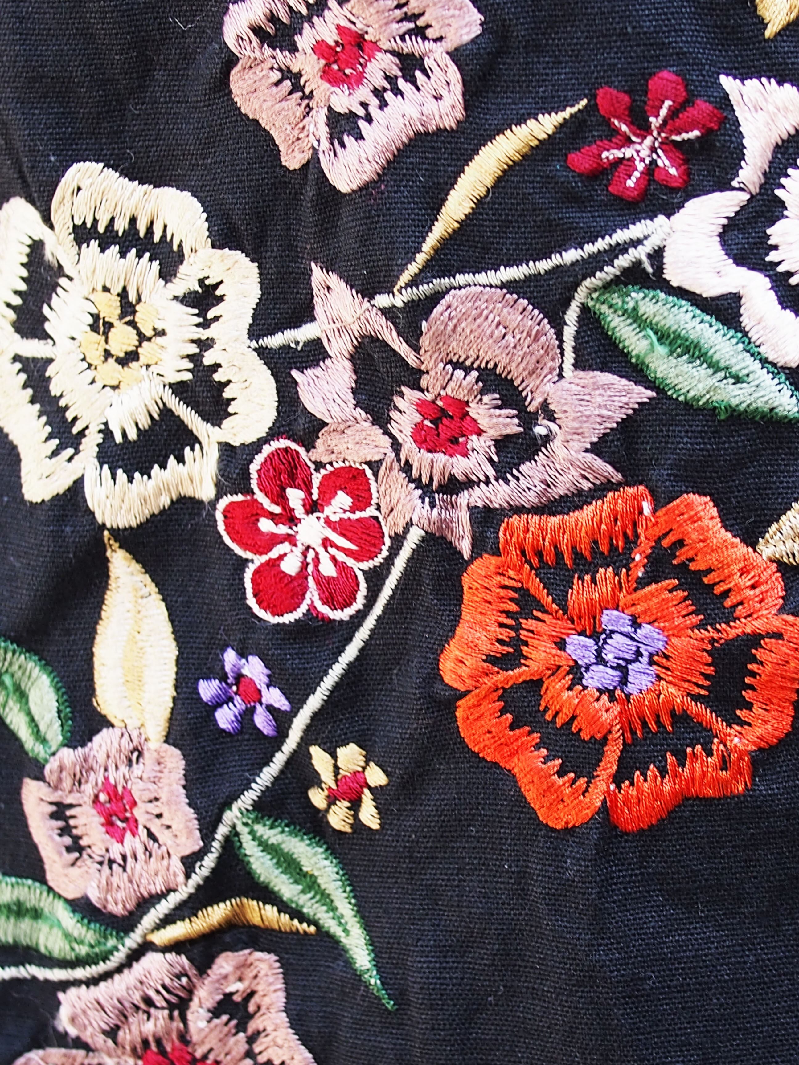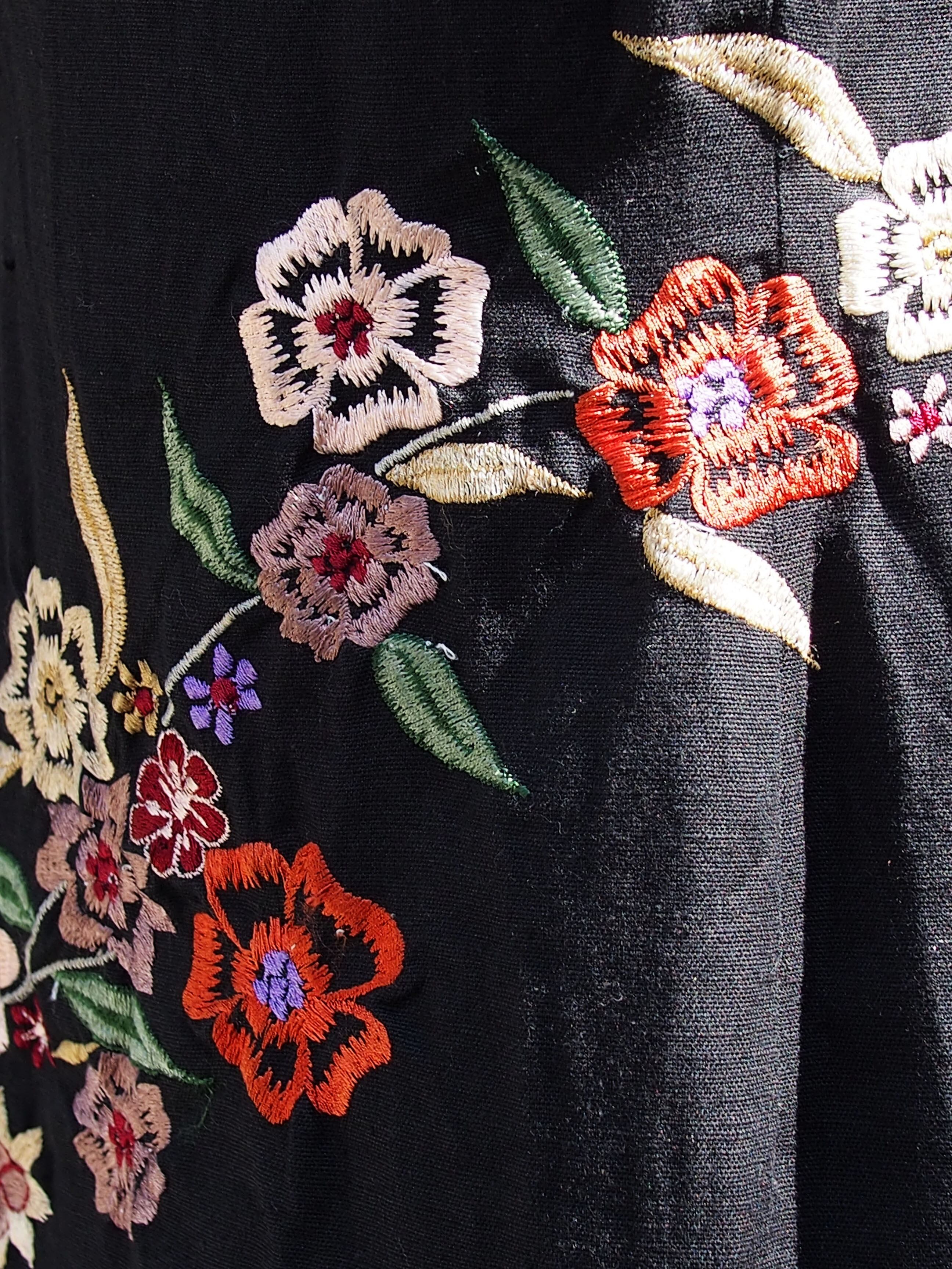 ブラックベースにミックスカラーのぎっしりとした刺繍が目を引き、雰囲気を漂わせとても素敵です。