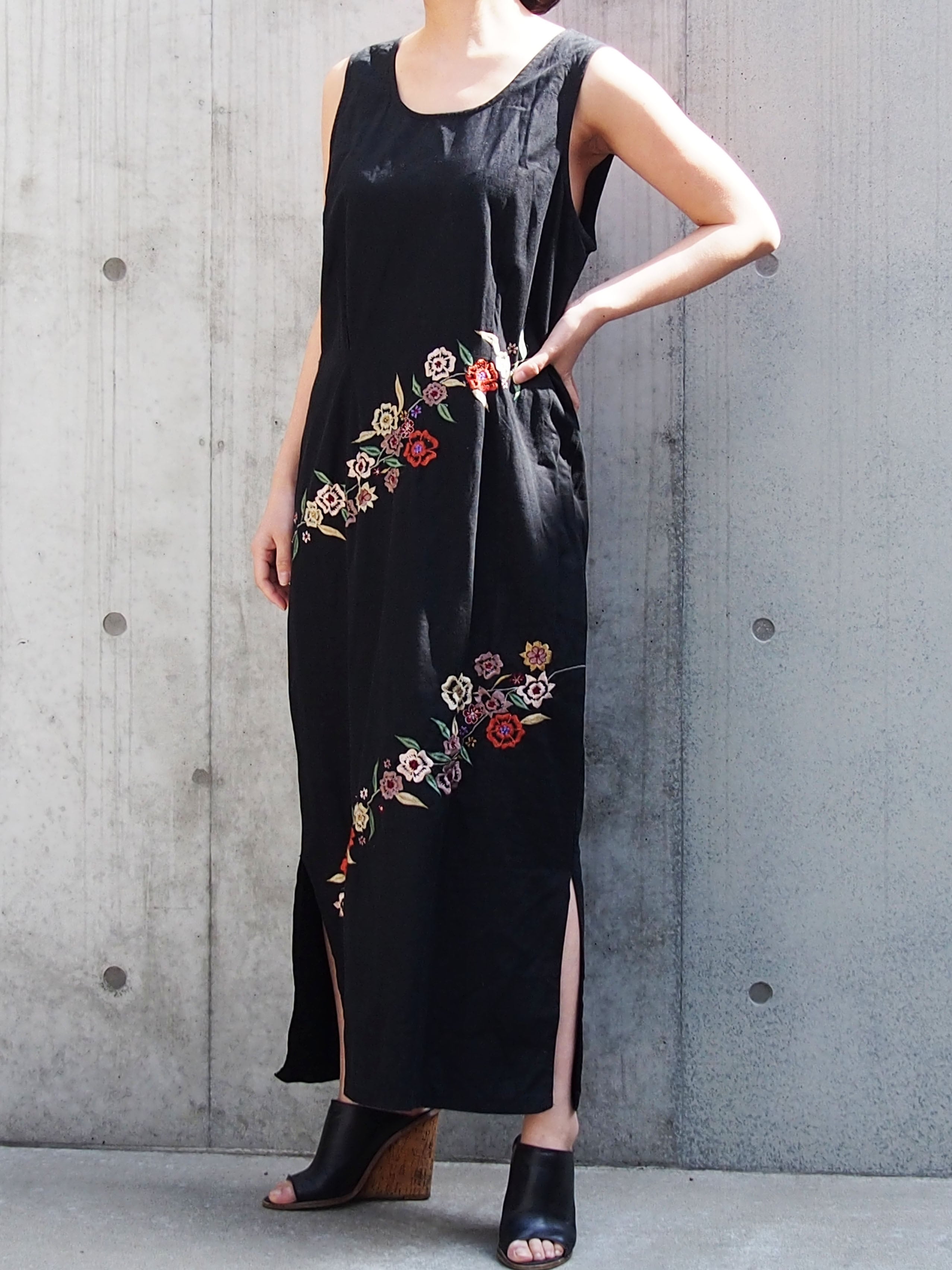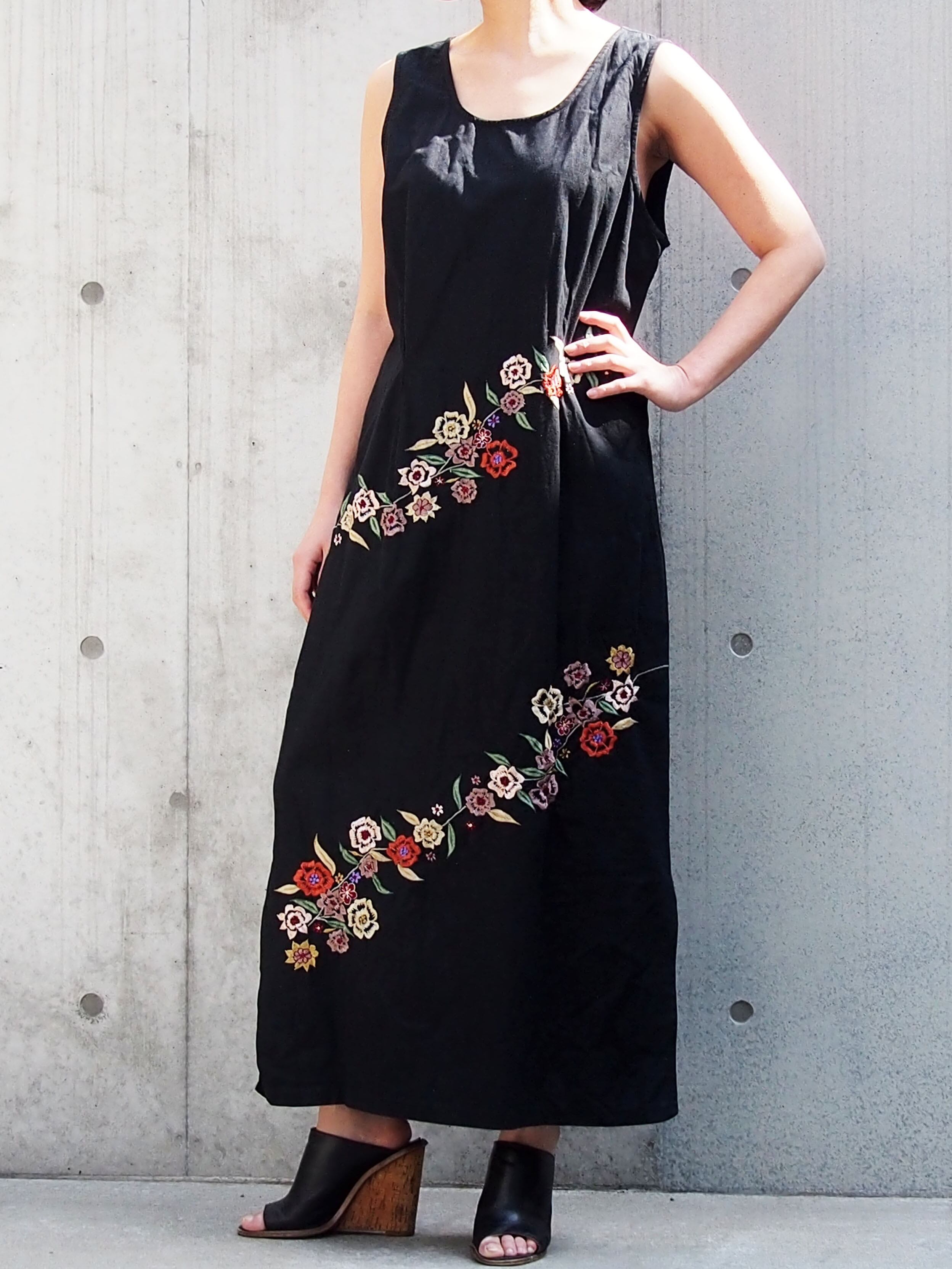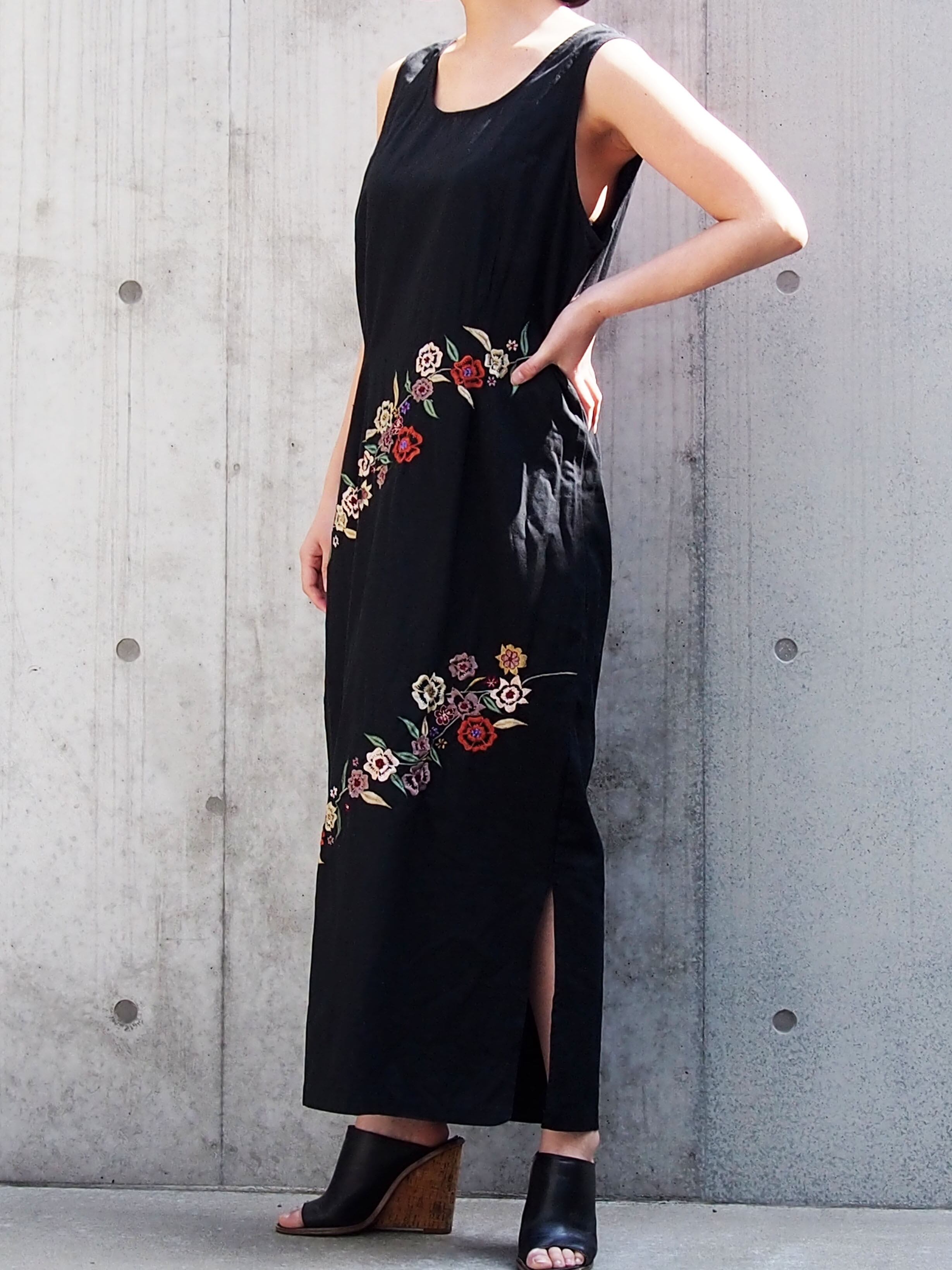 ブラックベースにミックスカラーのぎっしりとした刺繍が目を引き、雰囲気を漂わせとても素敵です。