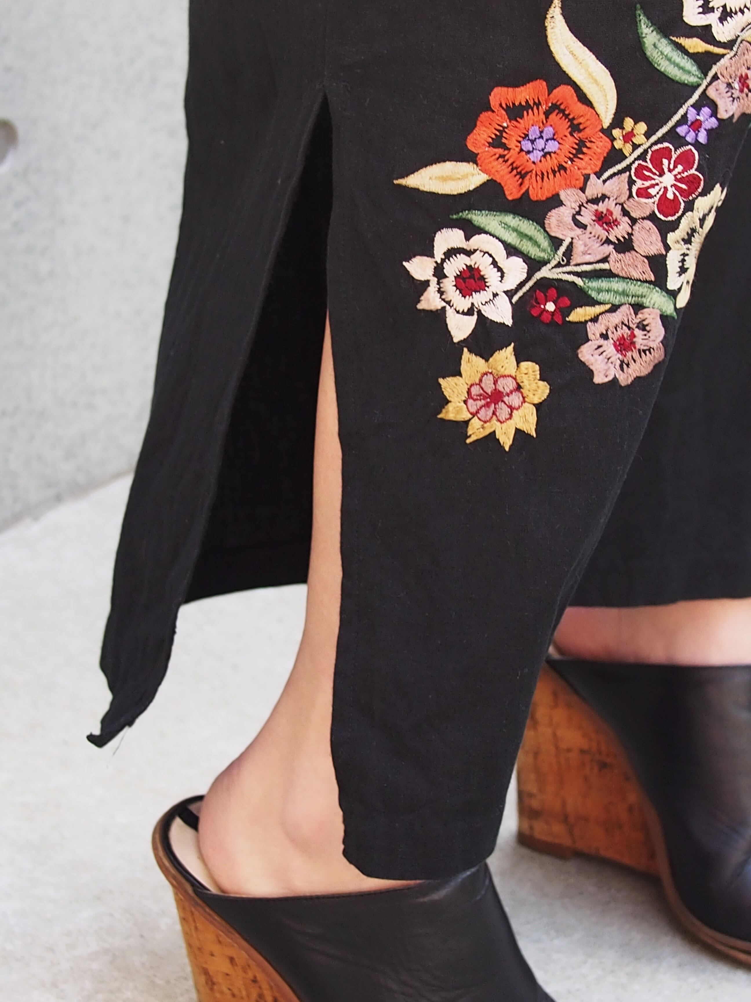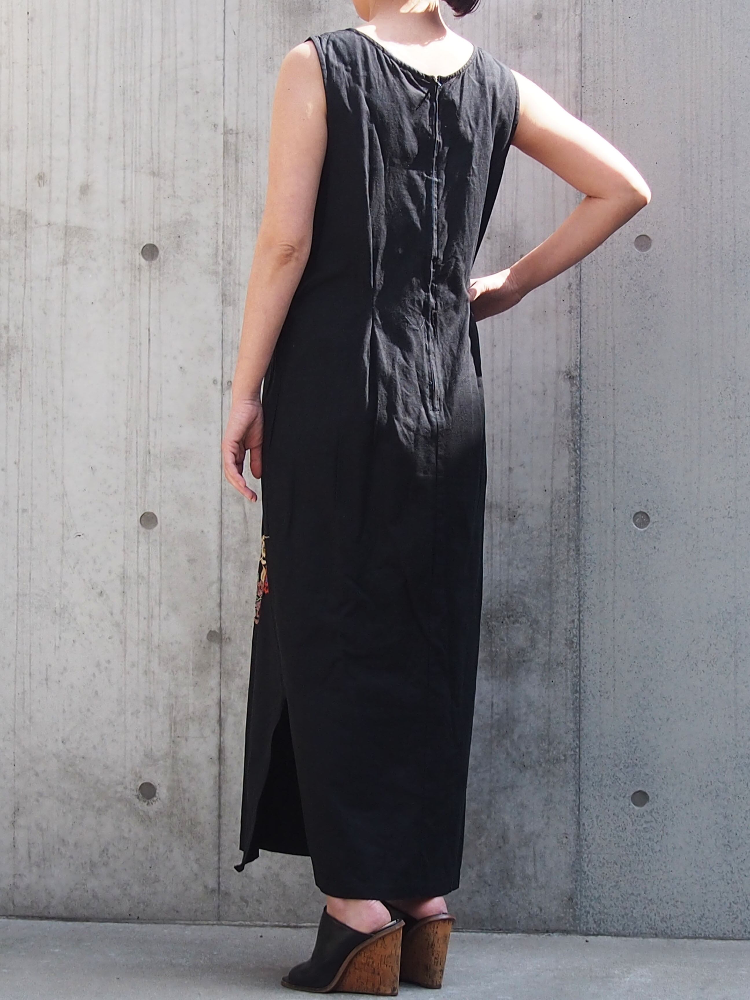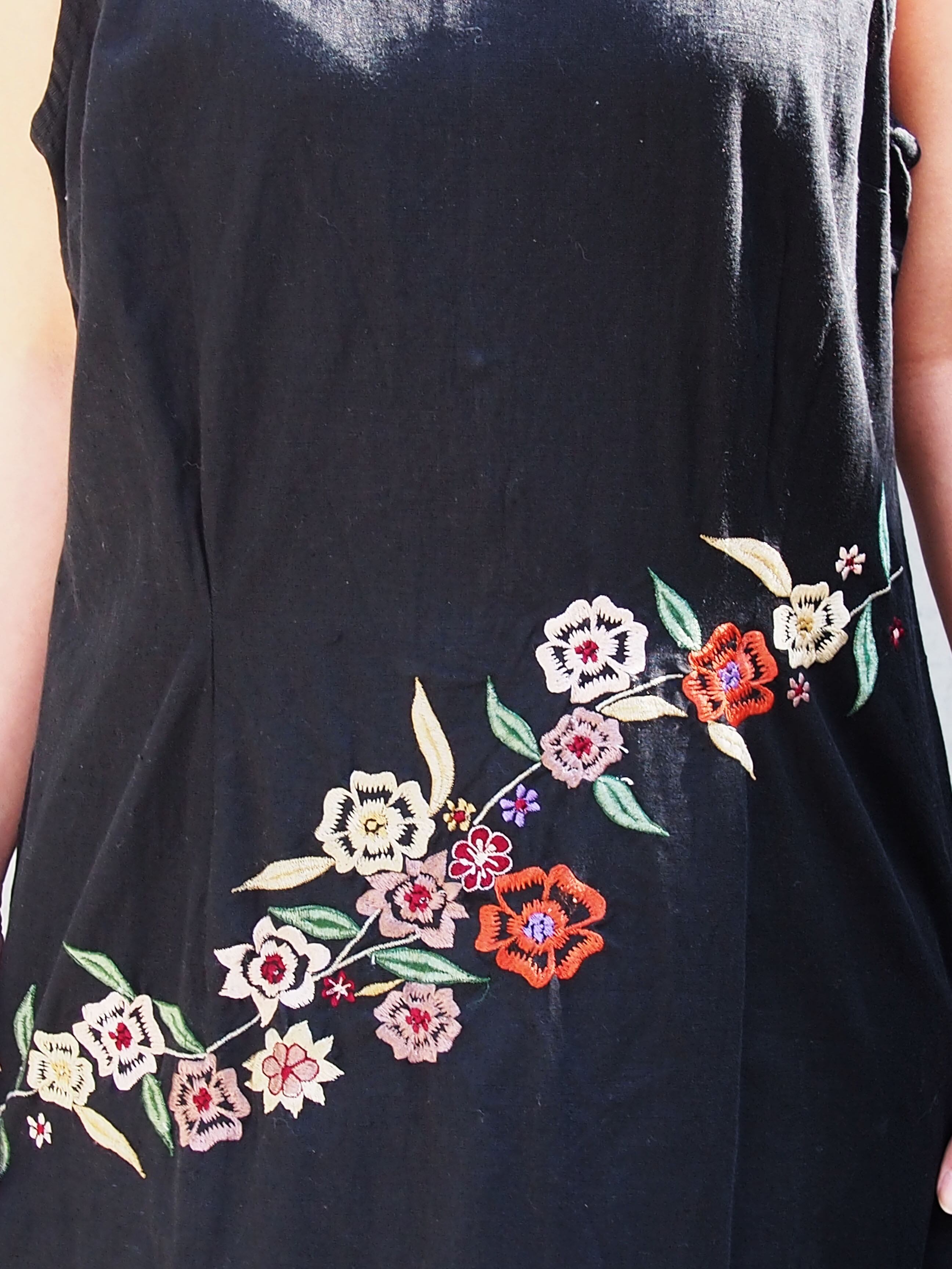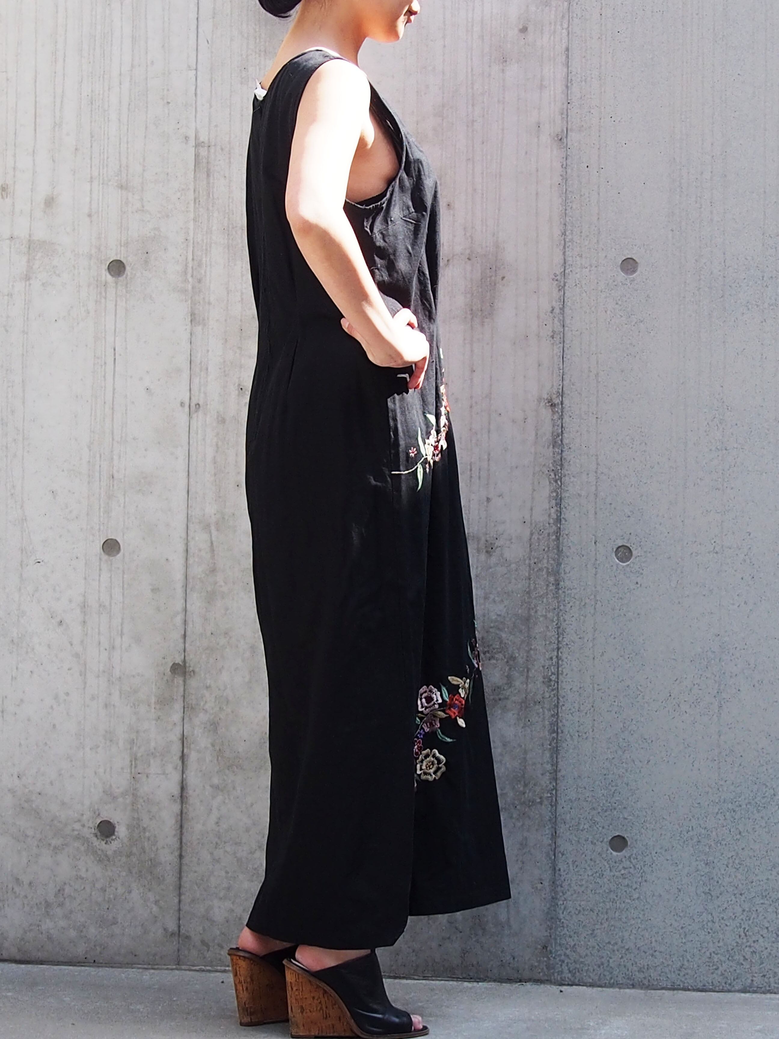 ブラックベースにミックスカラーのぎっしりとした刺繍が目を引き、雰囲気を漂わせとても素敵です。