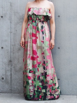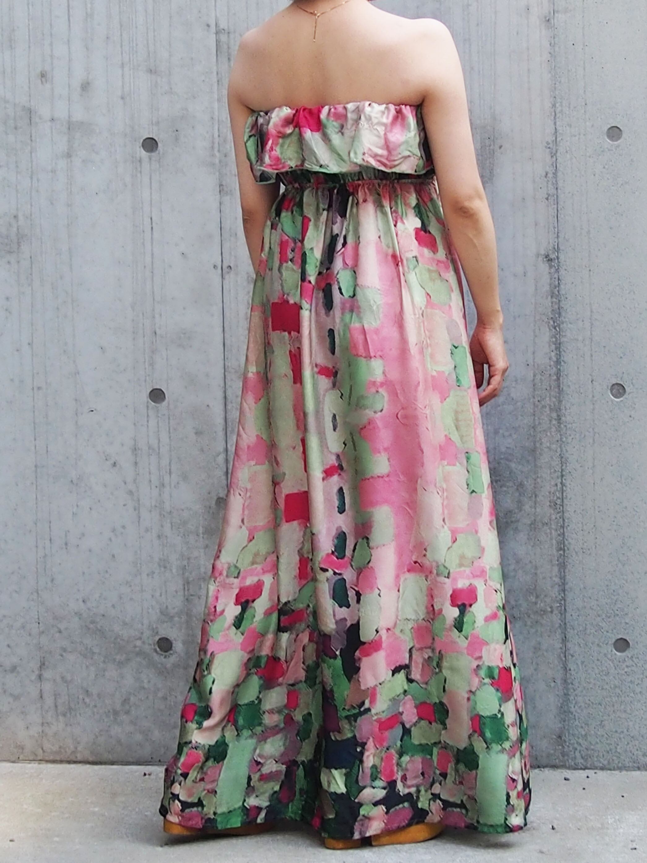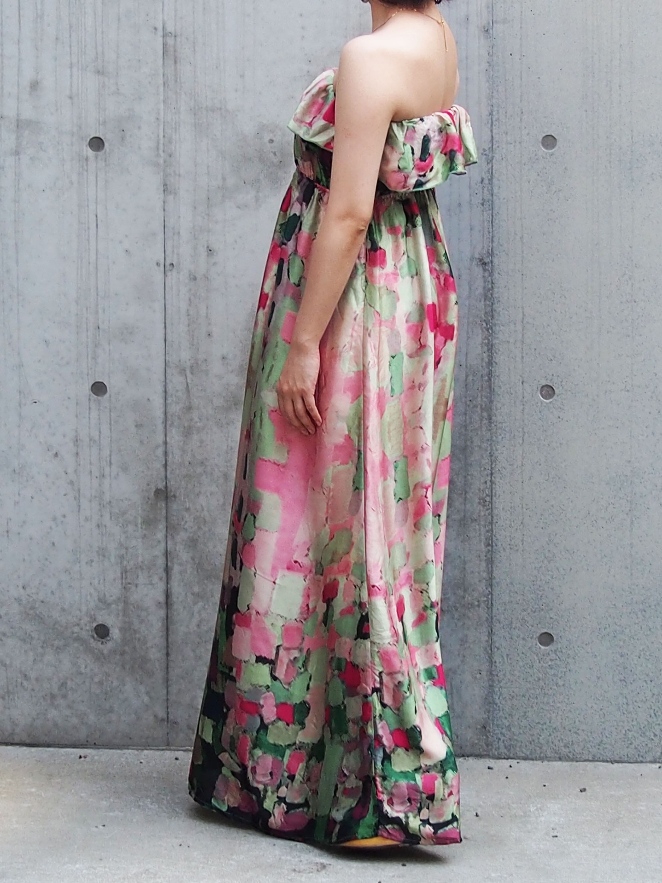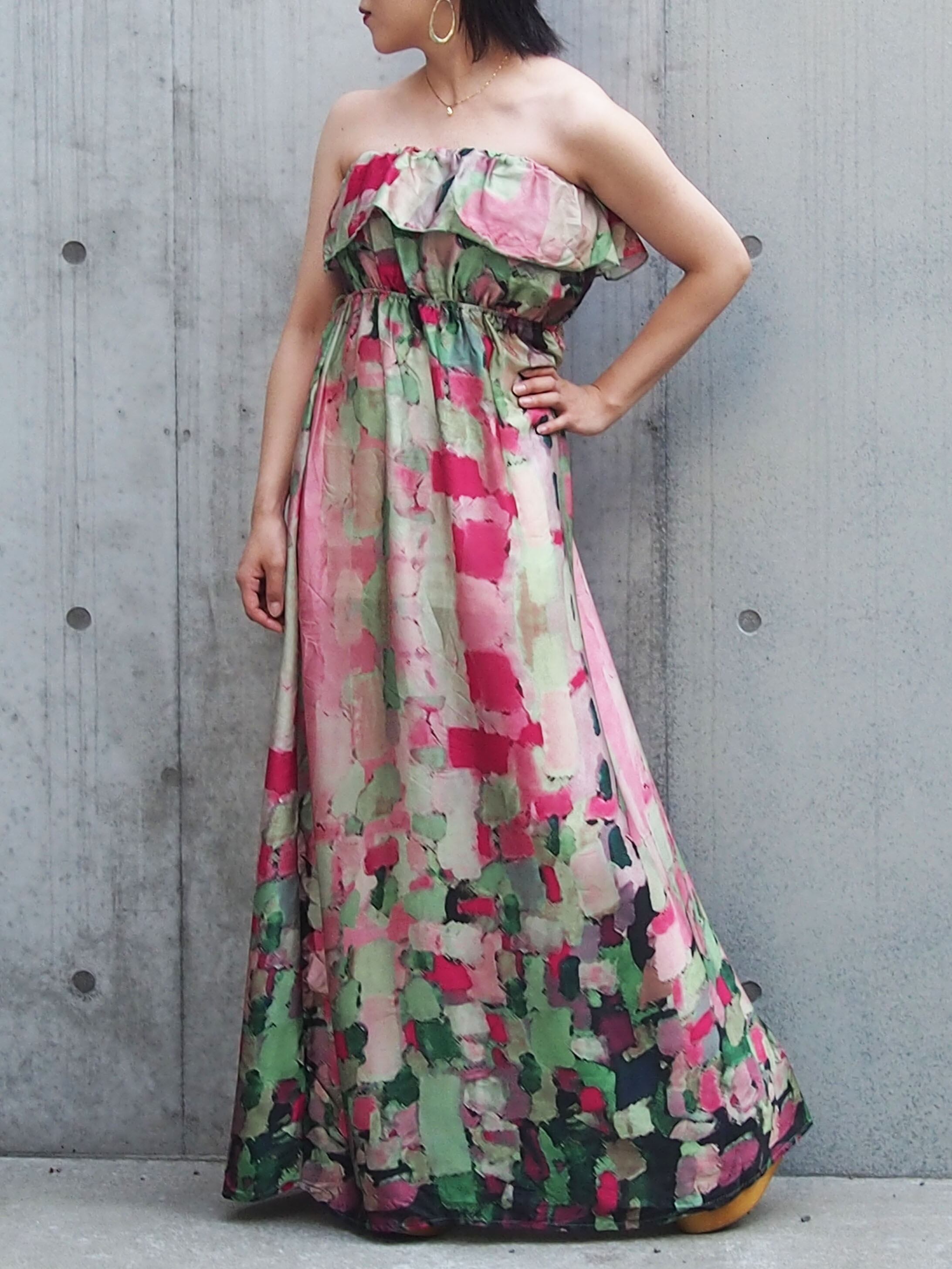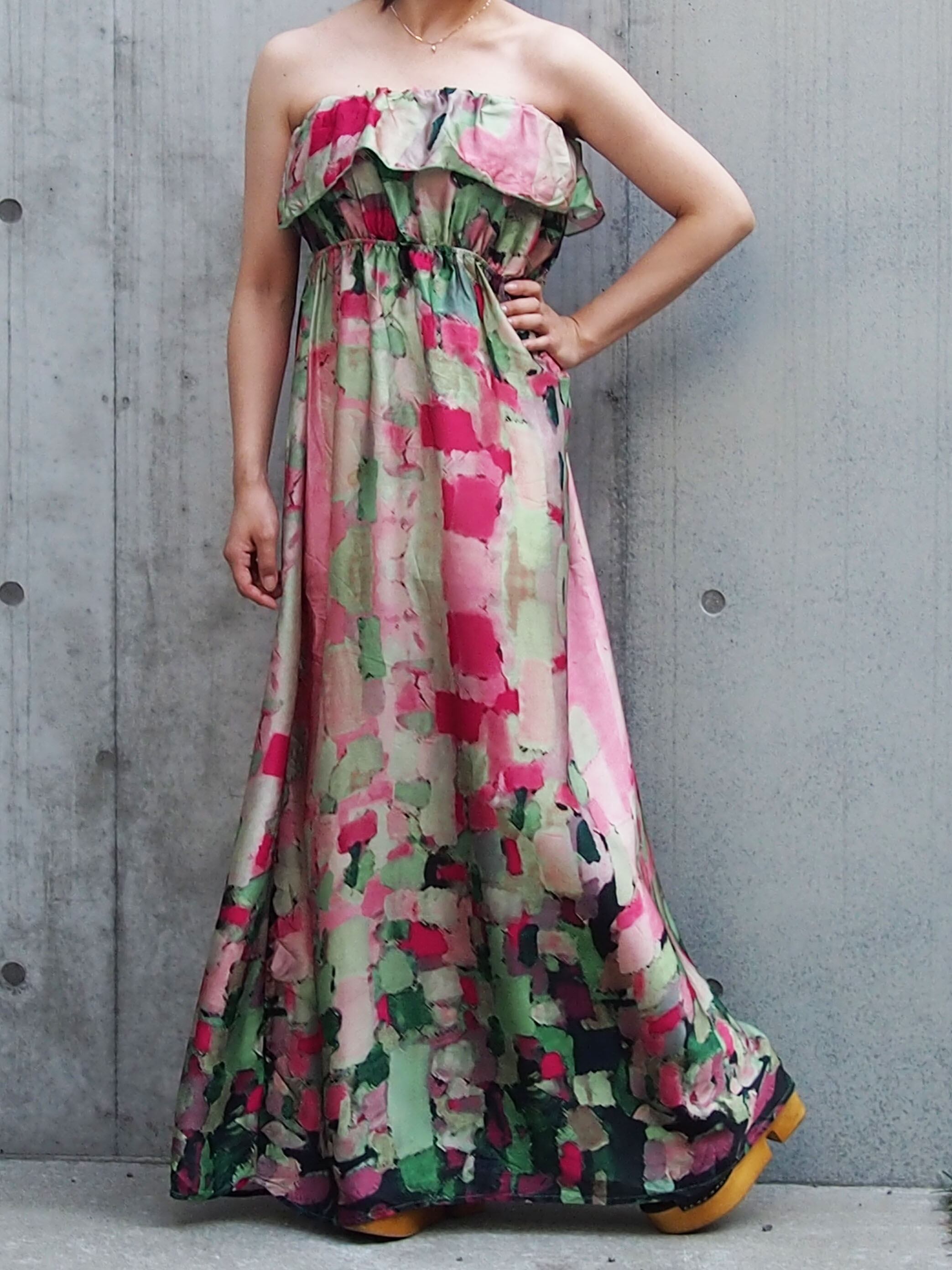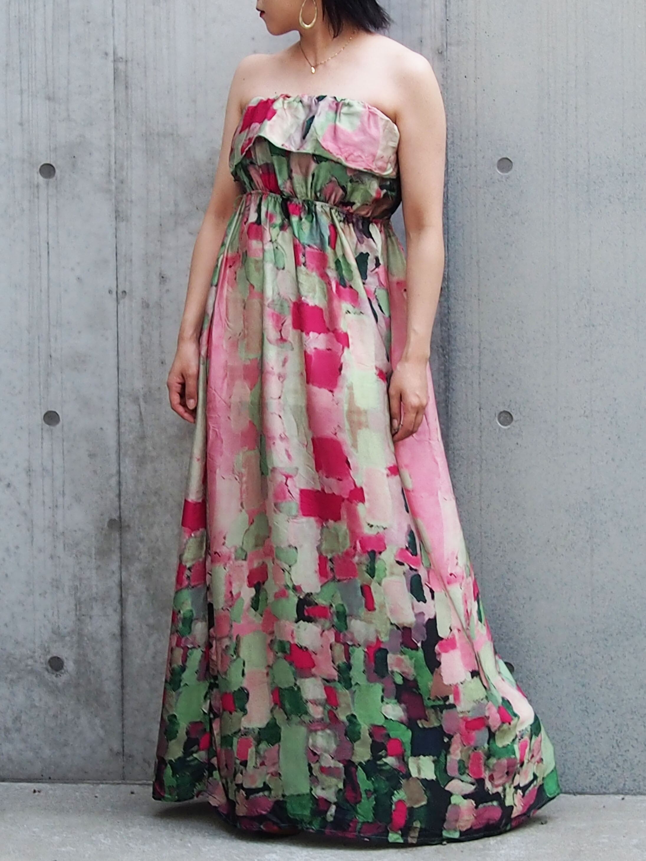 ベアタイプで胸元とウエストはゴム仕様で綺麗なシルエットで着ていただけます。