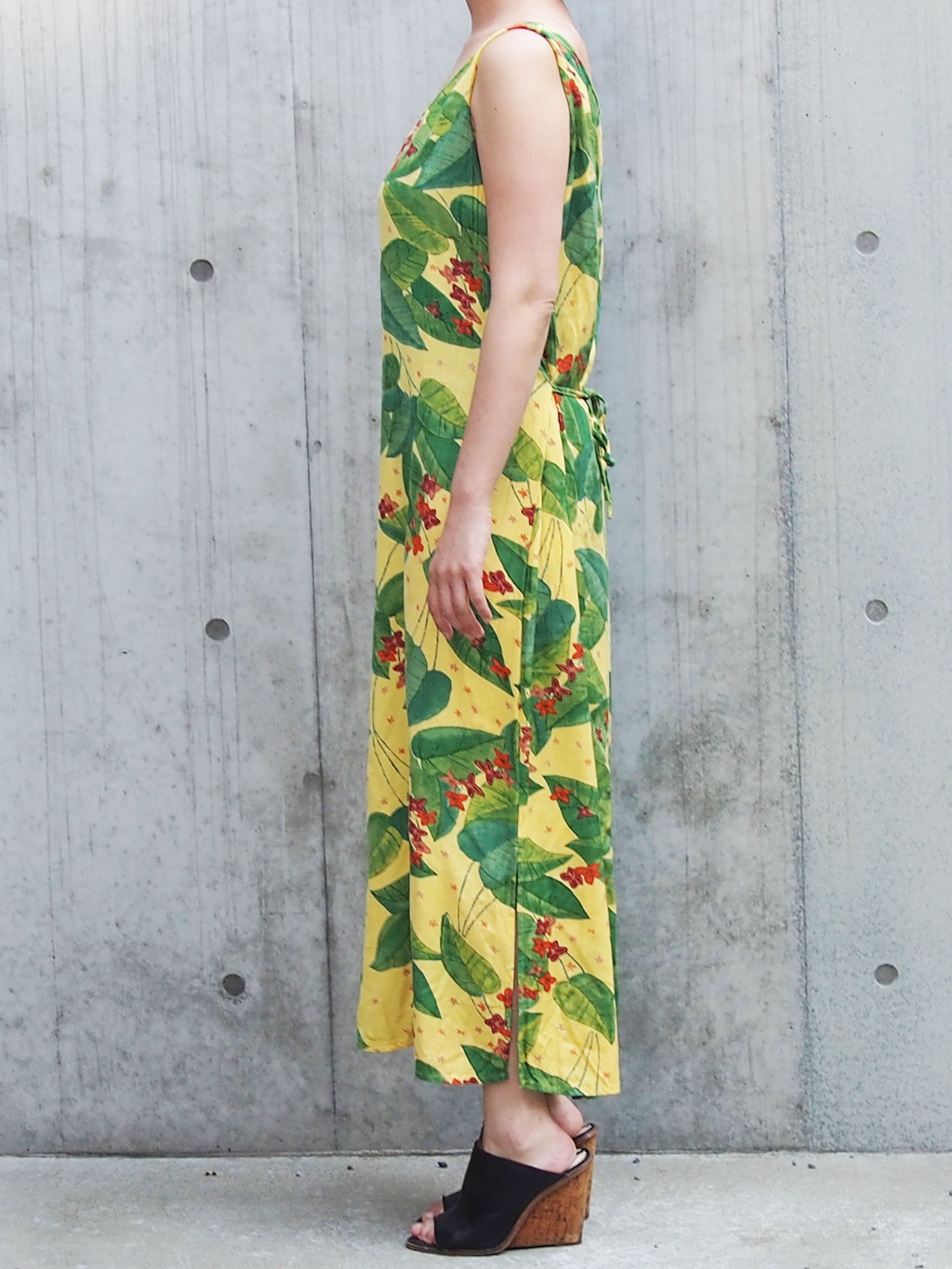両サイドのスリットもポイントになりウエスト絞り紐でウエストラインの調整可能です。