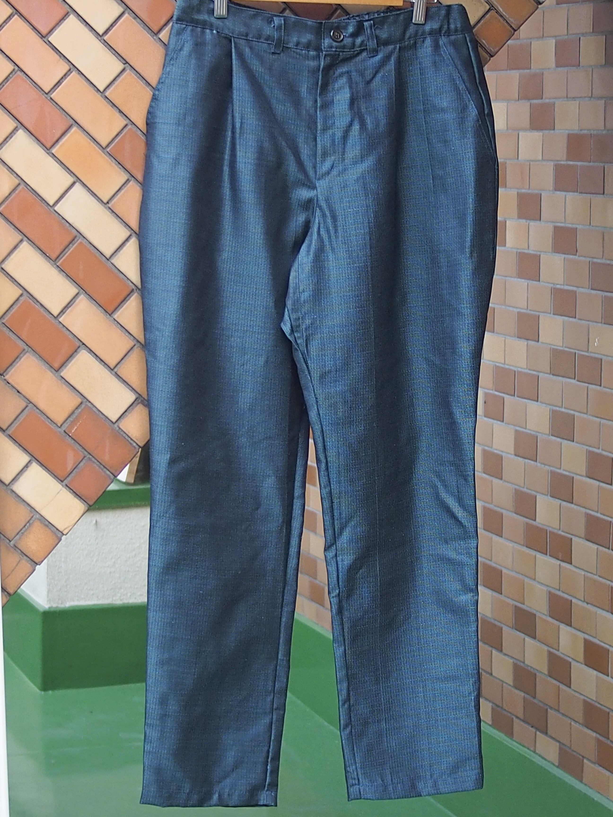 着物で制作したタックパンツ。