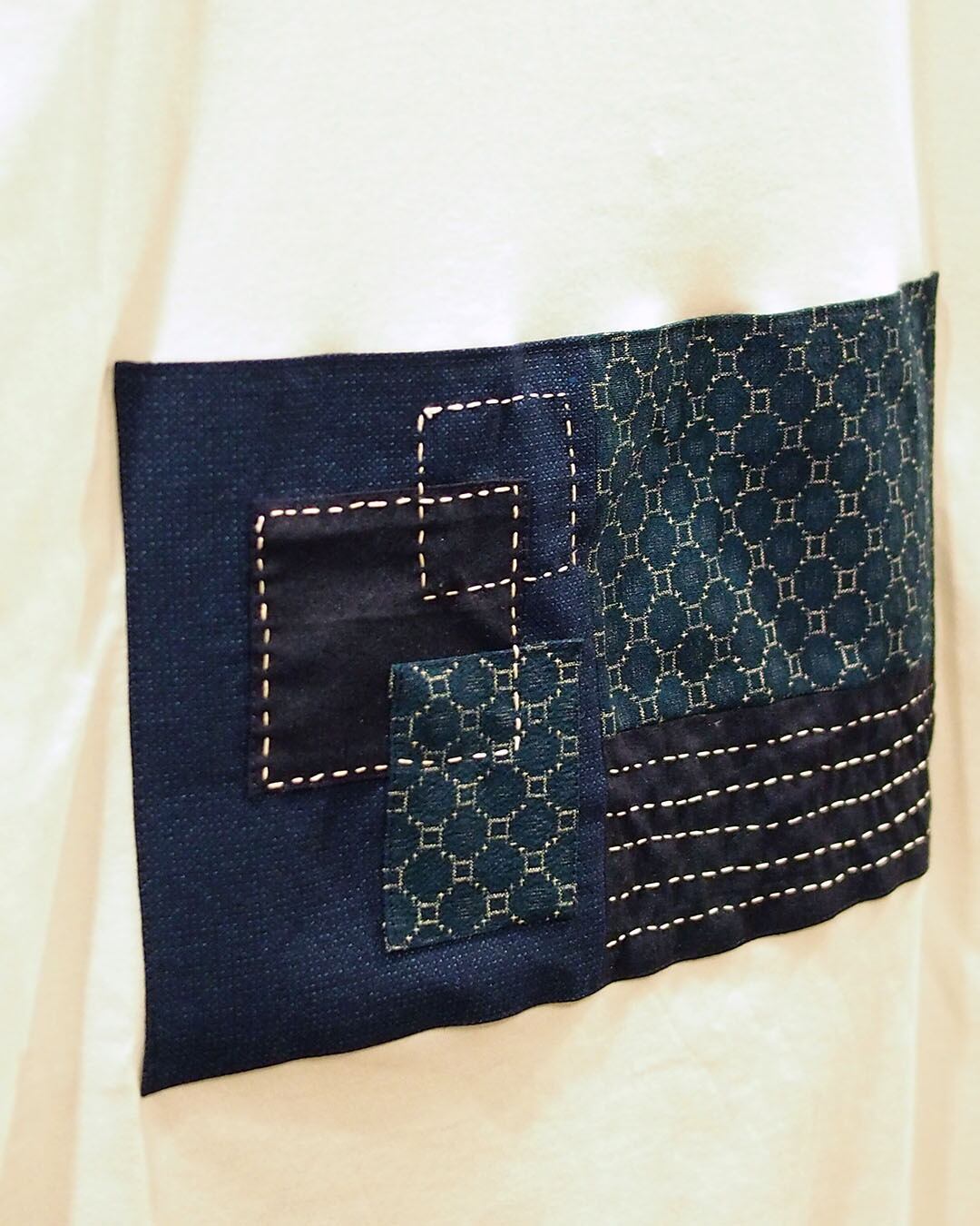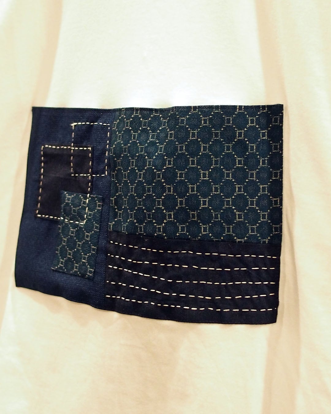 Kimono mix fabric T-shirt "から刺子ボックスフレームの登場。
