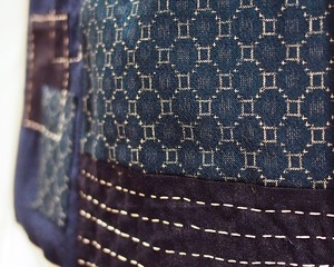 日本の伝統的な着物生地を贅沢に使用し、刺子デザインをアクセントに施し構成した